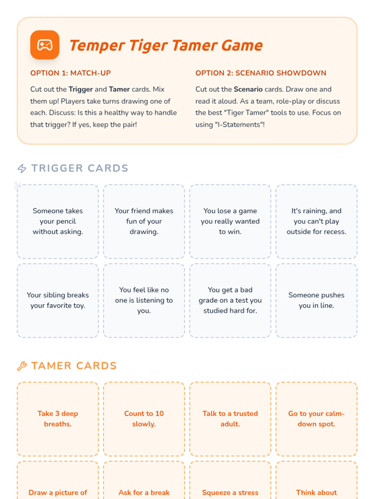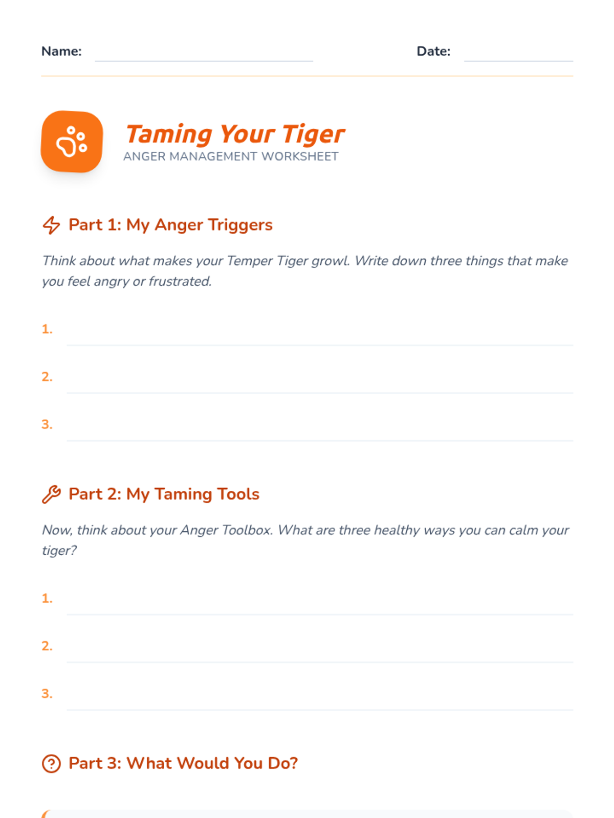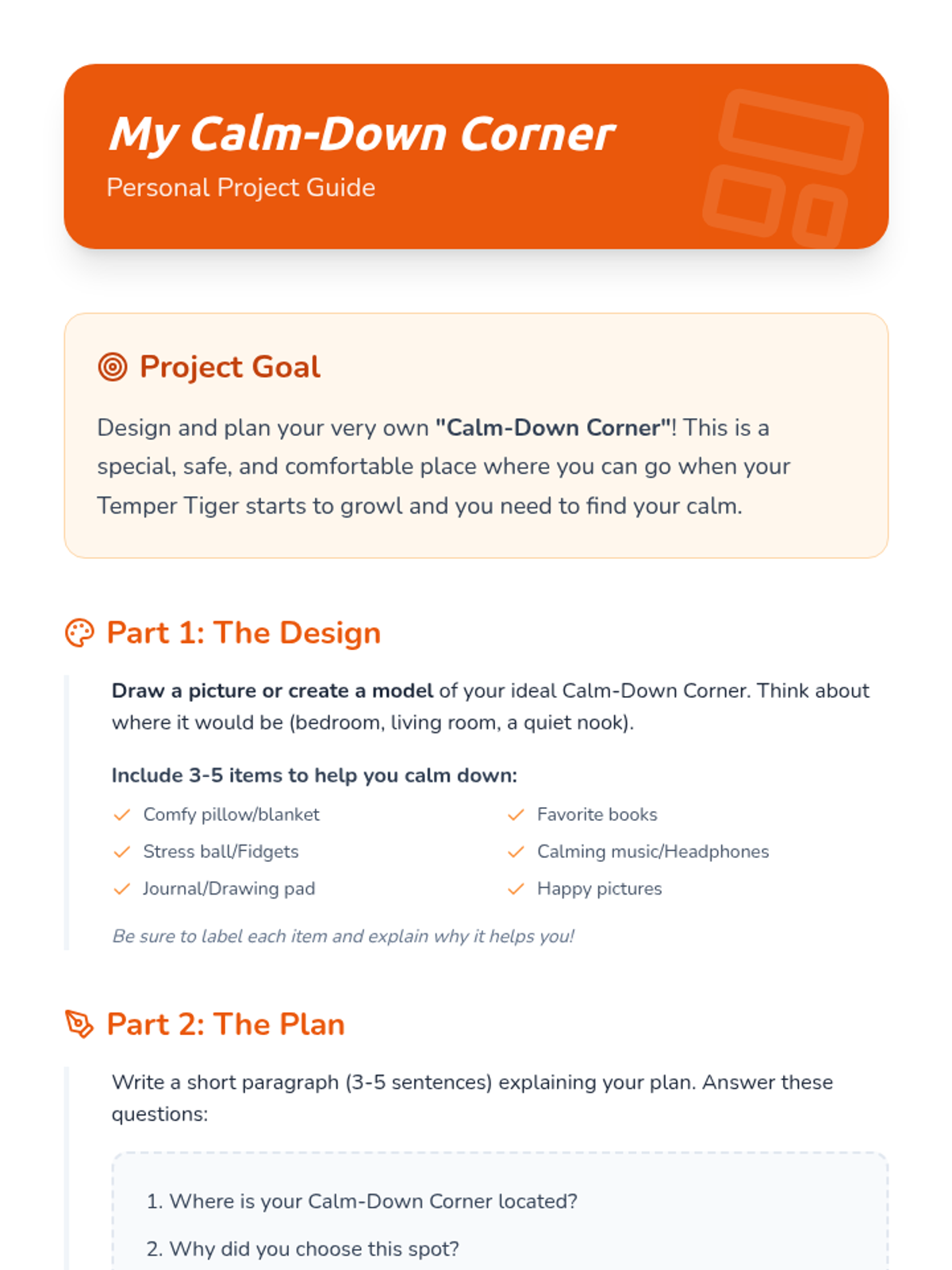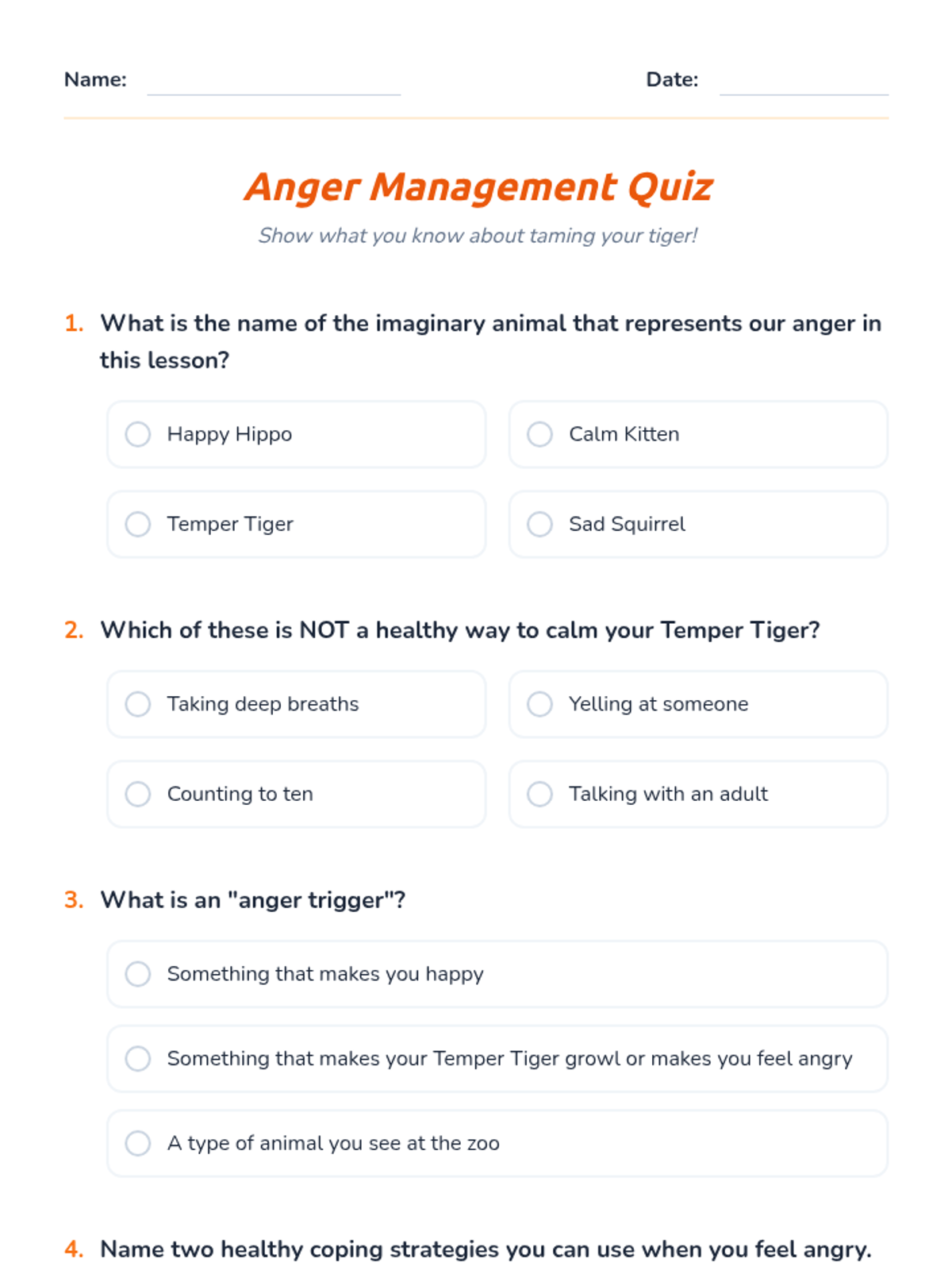 A 30-minute SEL lesson for 3rd and 4th graders focused on identifying anger triggers and building a 'toolbox' of healthy coping strategies using the 'Temper Tiger' metaphor.