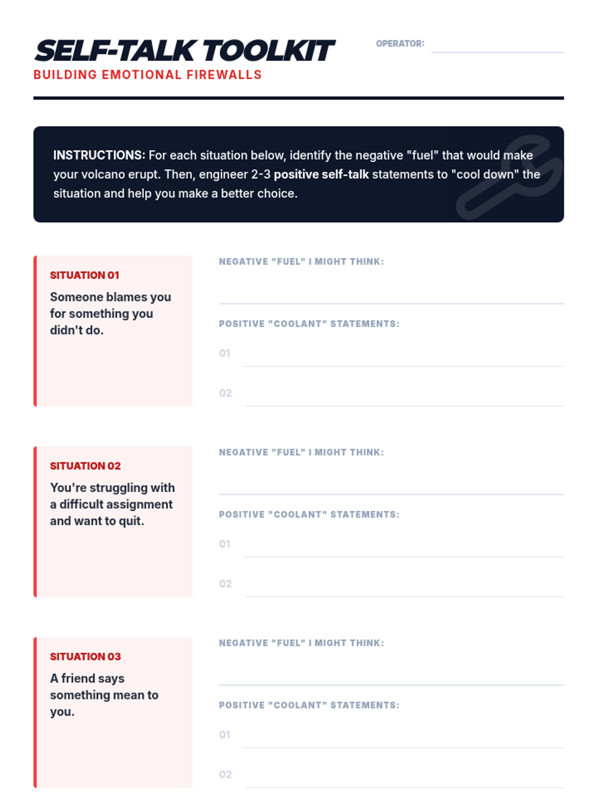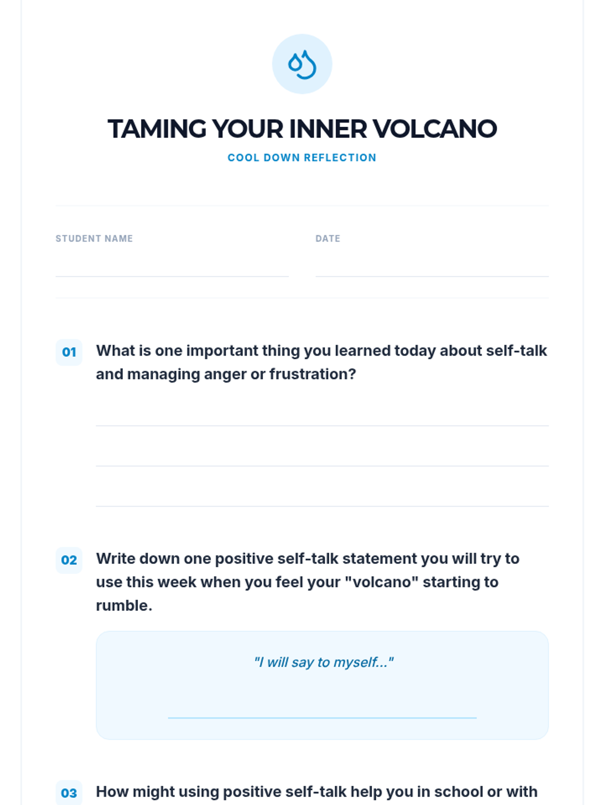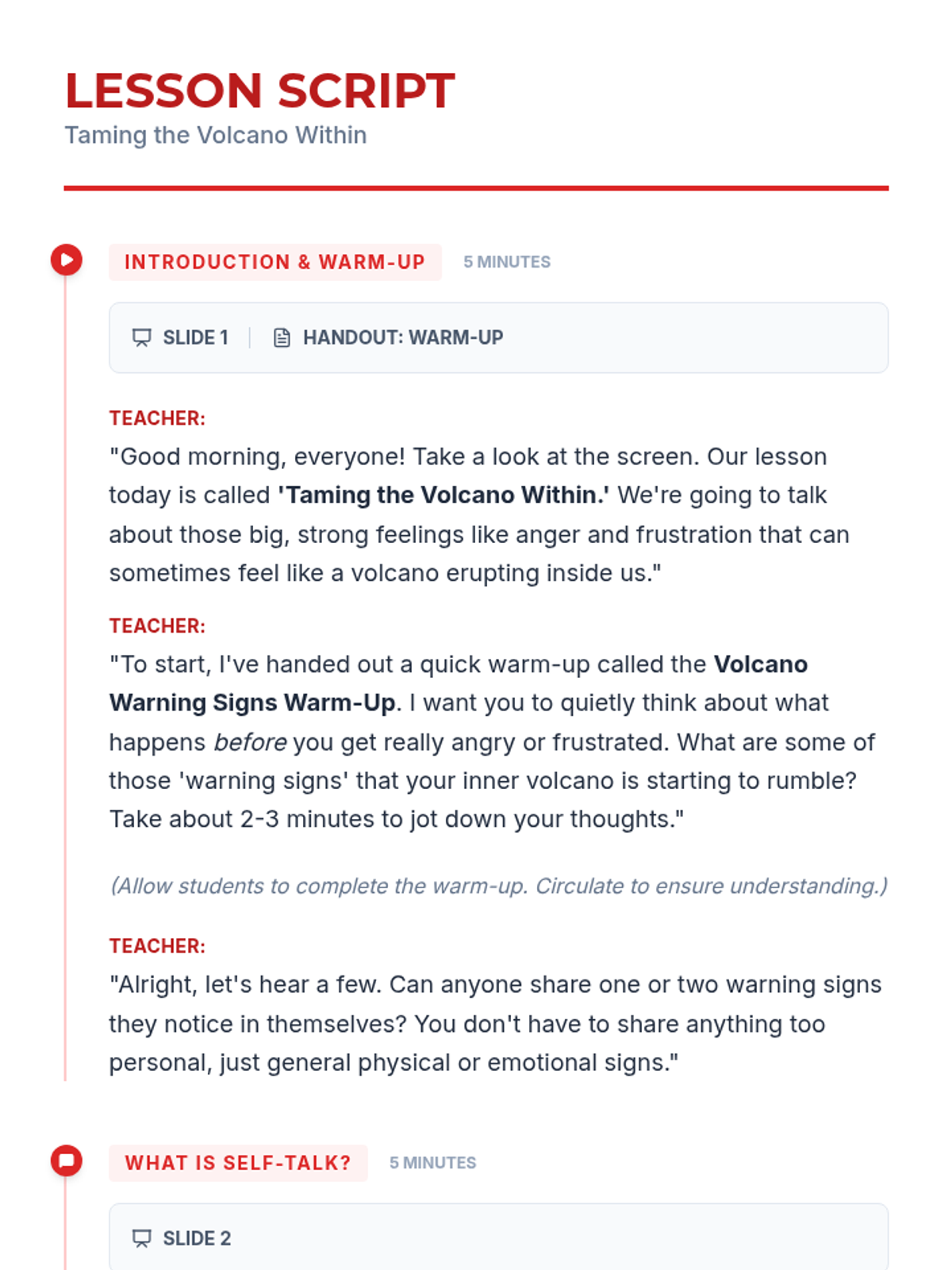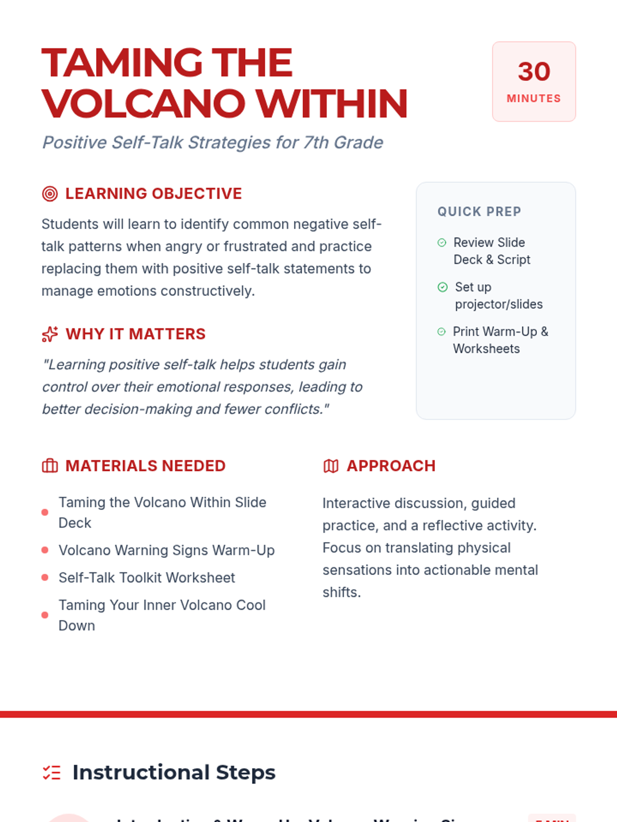 A 30-minute social-emotional learning lesson for 7th graders focused on identifying anger triggers and using positive self-talk as a de-escalation tool.