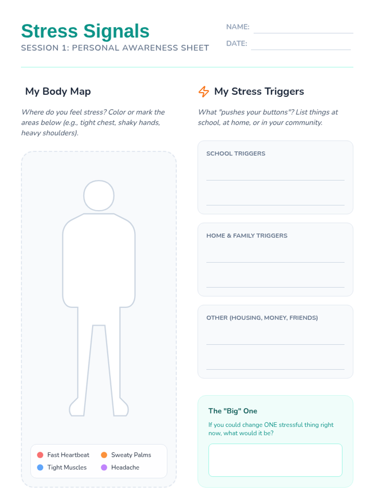 Students will learn to identify the physical and emotional signs of stress and recognize their personal triggers.
