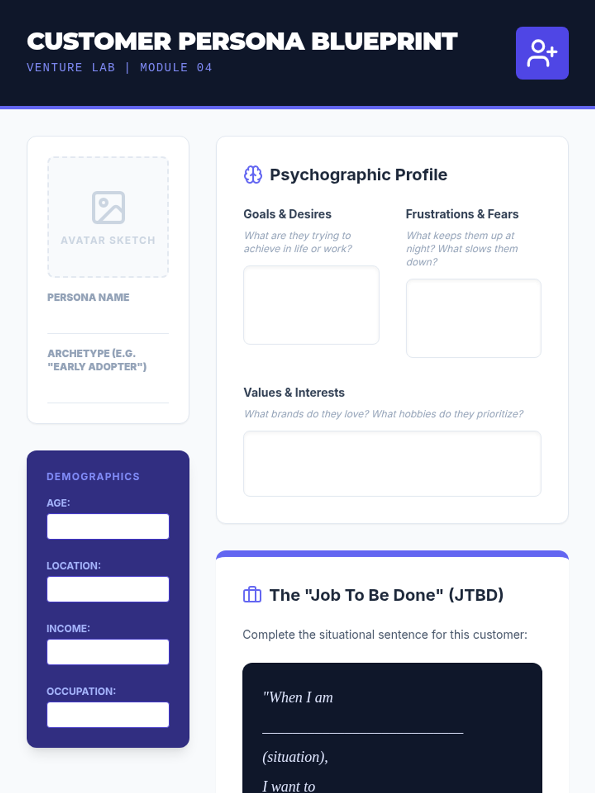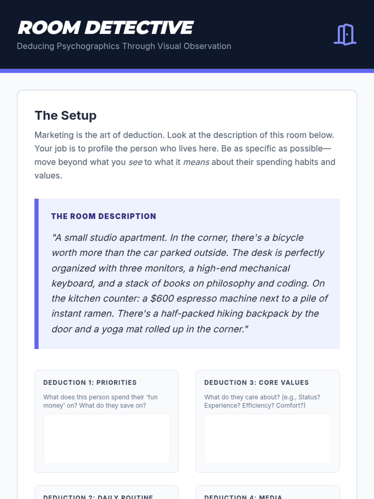 Students transition from numbers to psychology, building detailed customer personas using demographic and psychographic data.