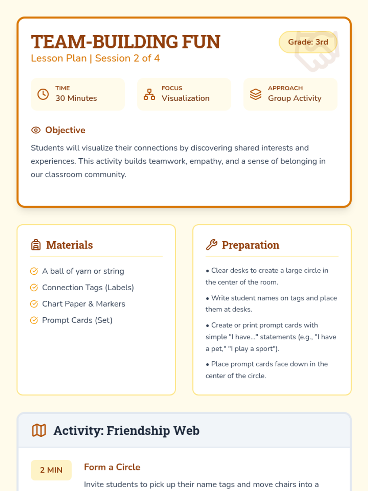 A lesson for grades 3-4 on the "Link" strategy for building on ideas and identifying team strengths.