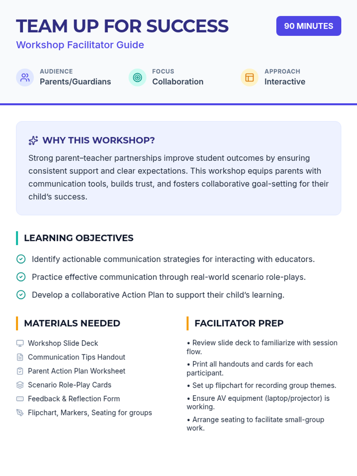 In this 90-minute workshop, parents will learn effective strategies for partnering with teachers to support their child’s learning. This interactive session emphasizes open communication, mutual respect, and collaborative goal-setting to strengthen the home-school connection.