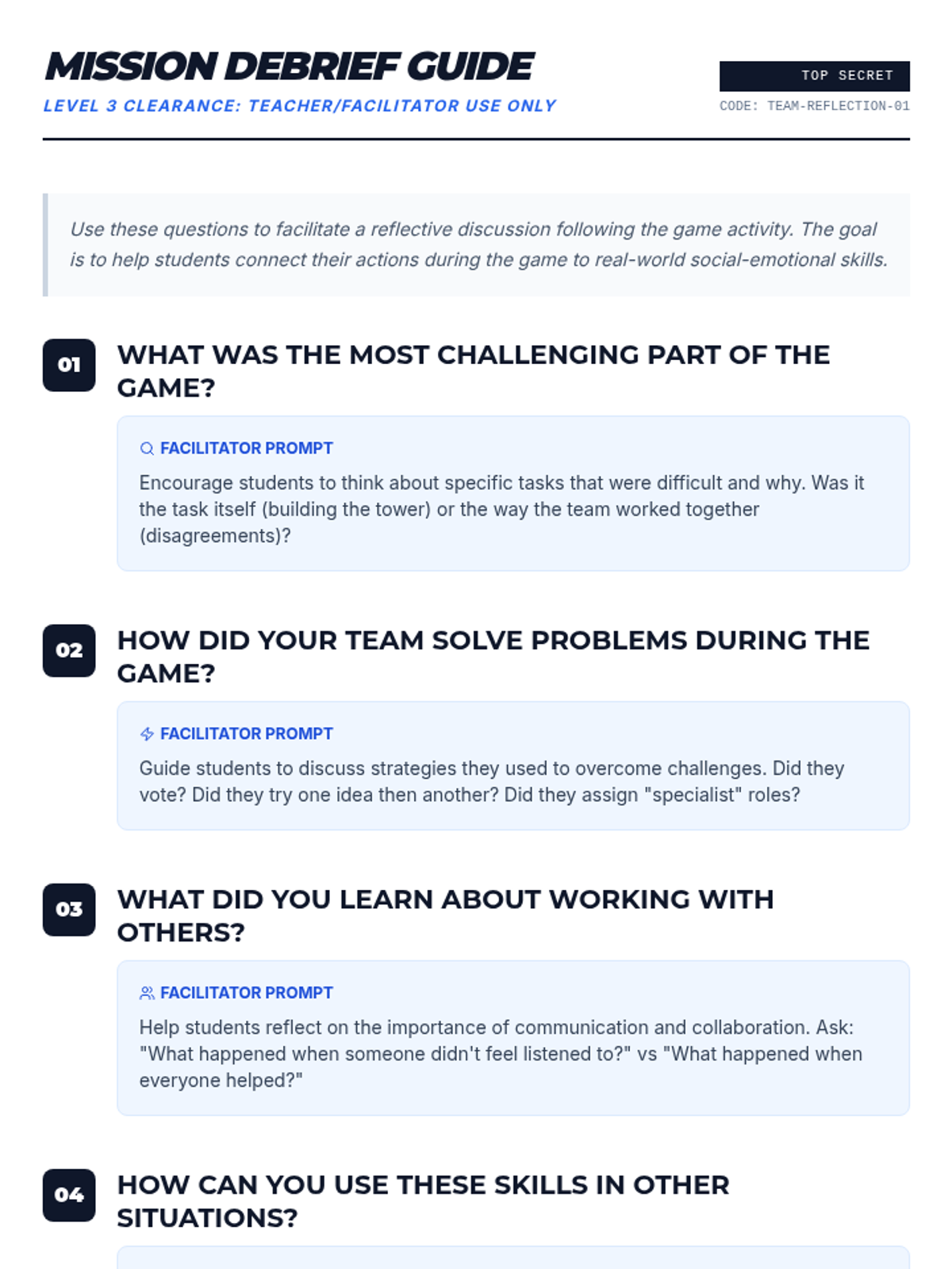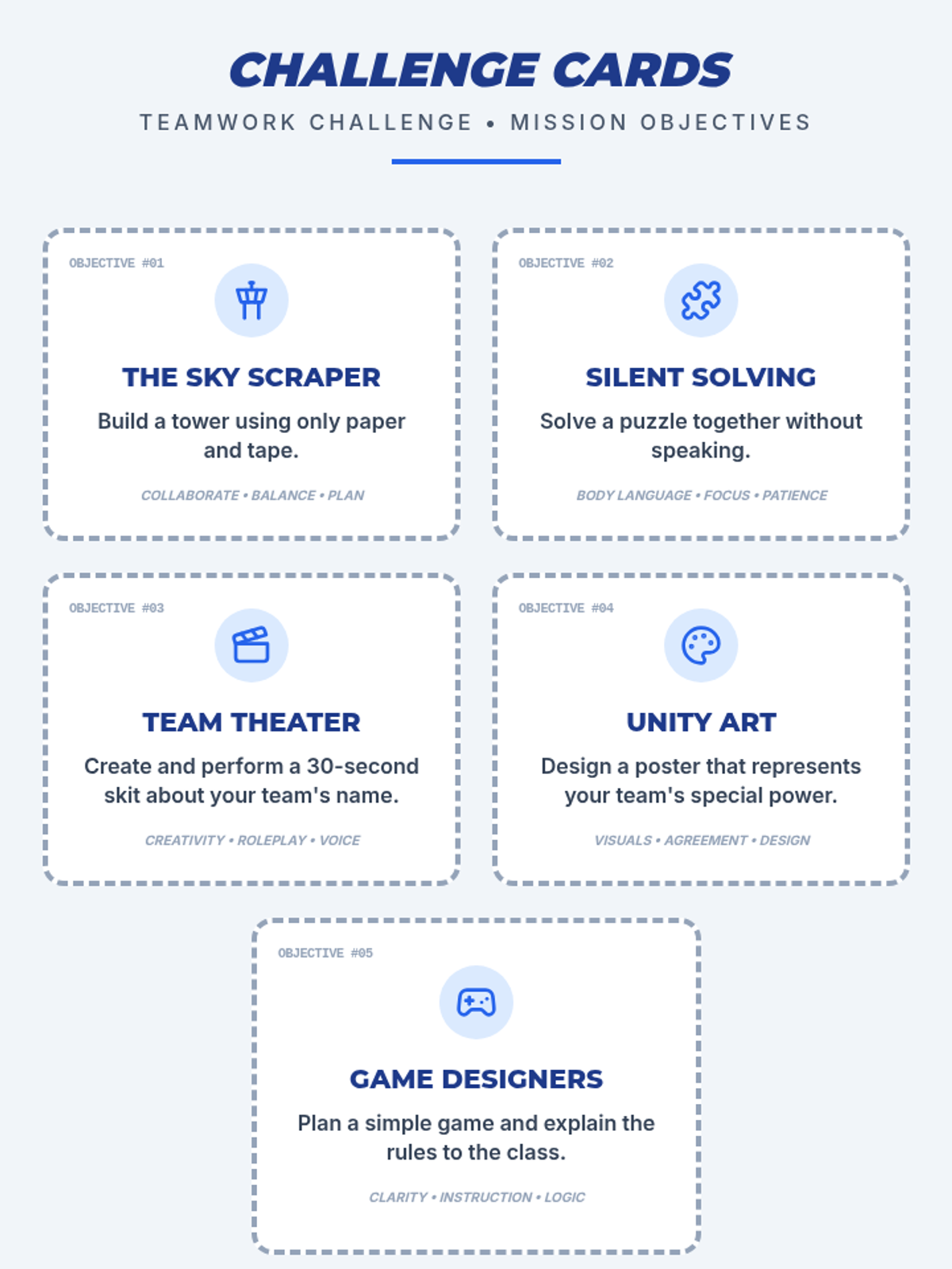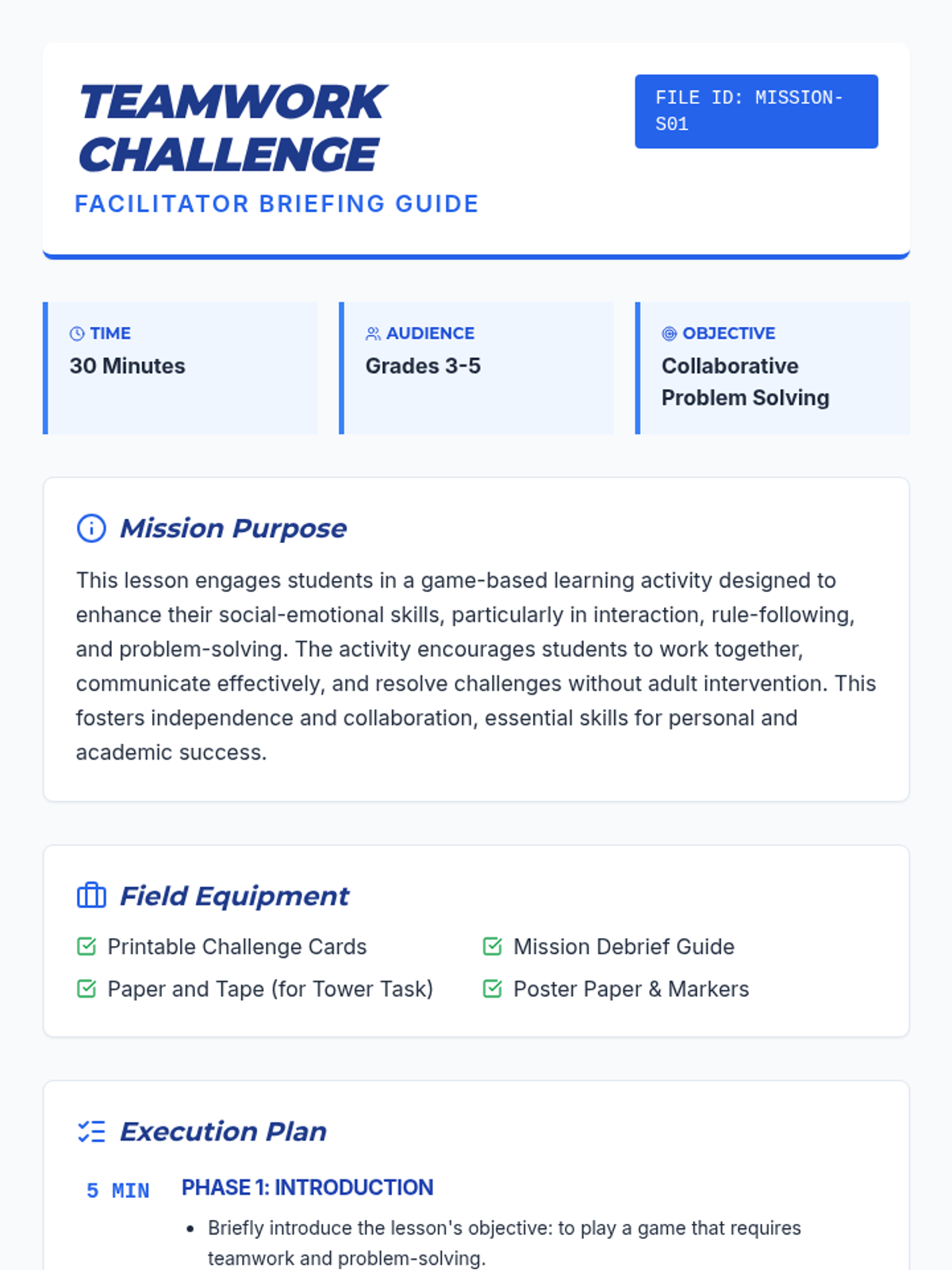 A game-based social-emotional learning lesson where students tackle collaborative challenges to build problem-solving and communication skills.