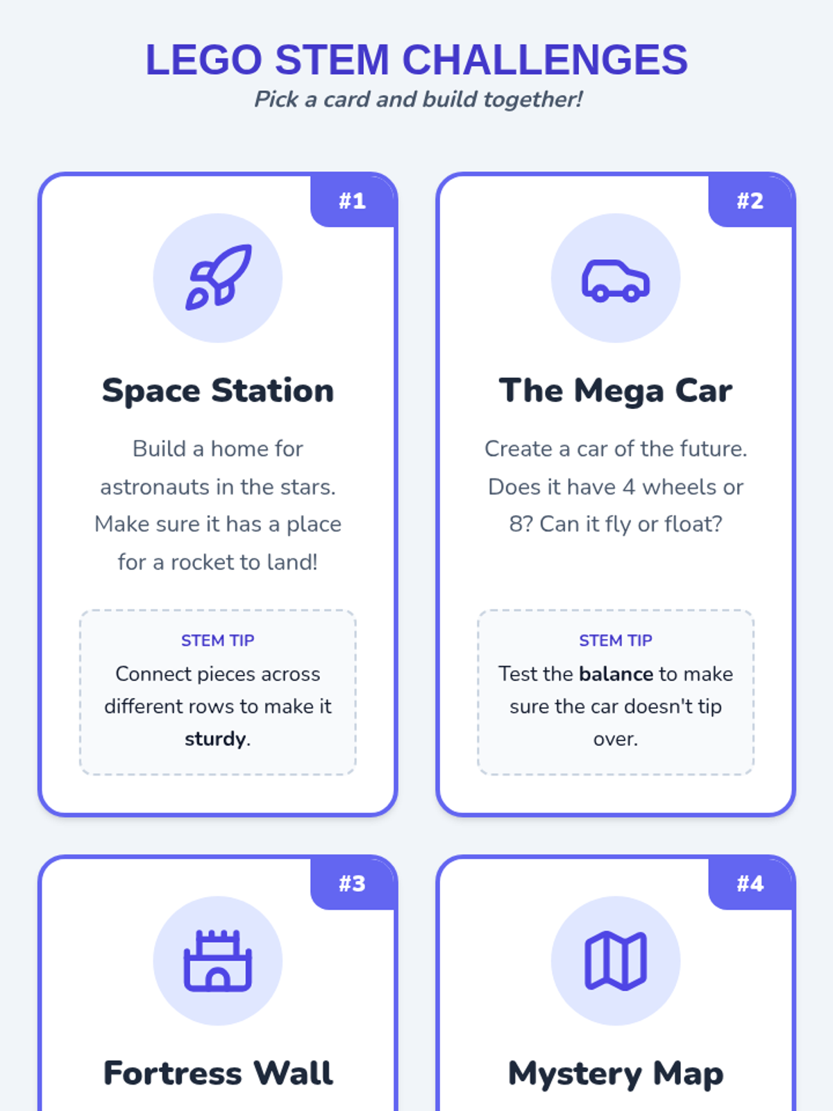 A 120-minute station-based lesson designed for adults with IDD to practice communication, problem-solving, and cooperation through hands-on building and recreation challenges.