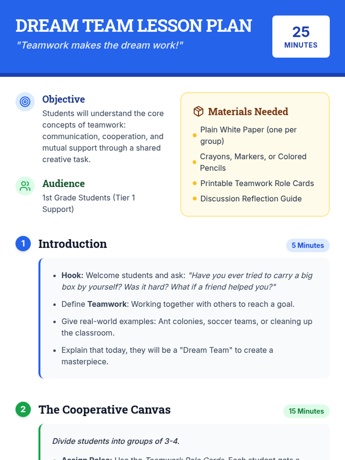 Students engage in cooperative drawing activities to understand the importance of teamwork, communication, and mutual support in 1st Grade.