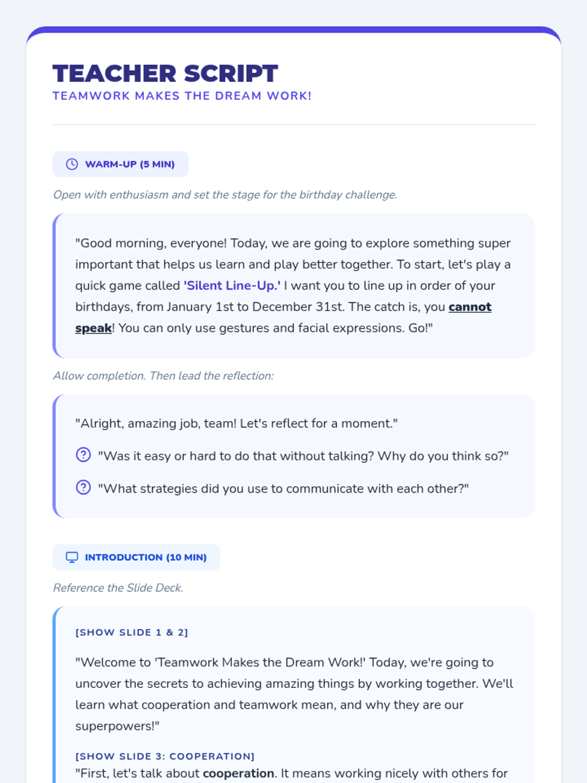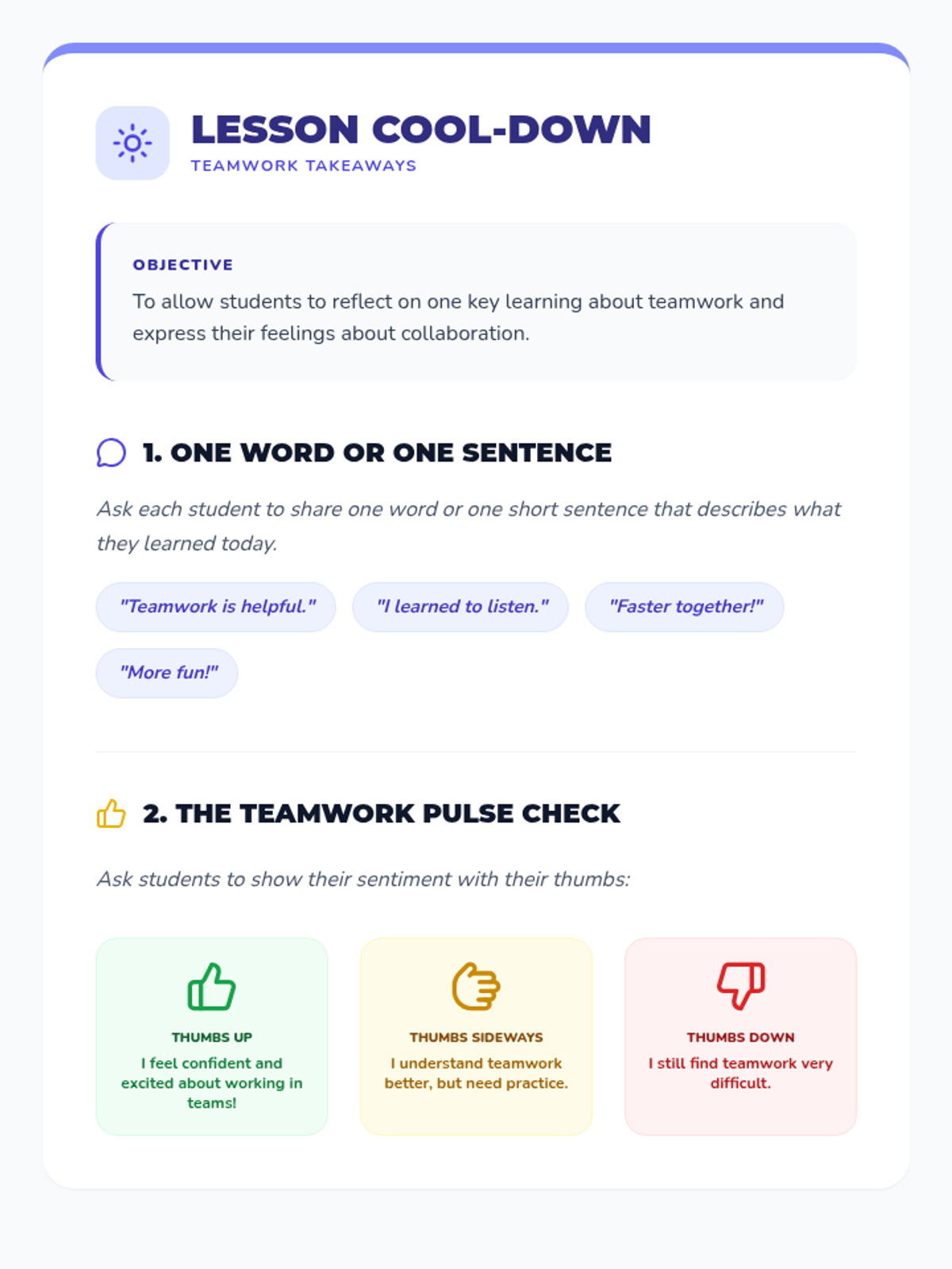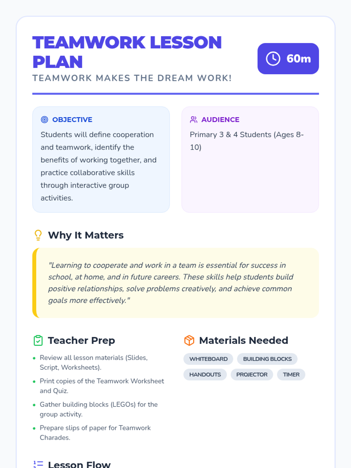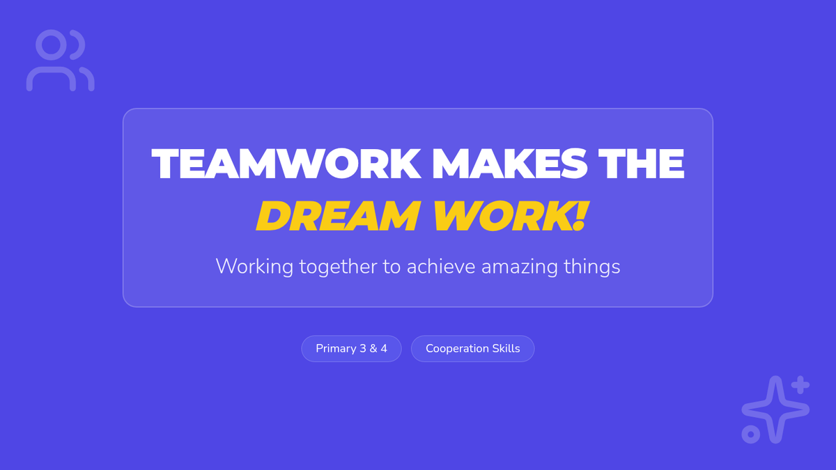 A 60-minute interactive lesson for Primary 3 & 4 students to learn and practice the vital skills of cooperation and teamwork through activities, stories, and games.