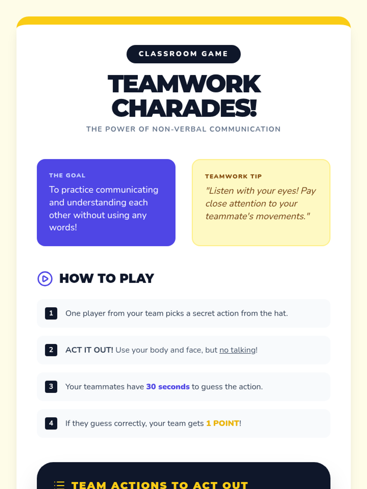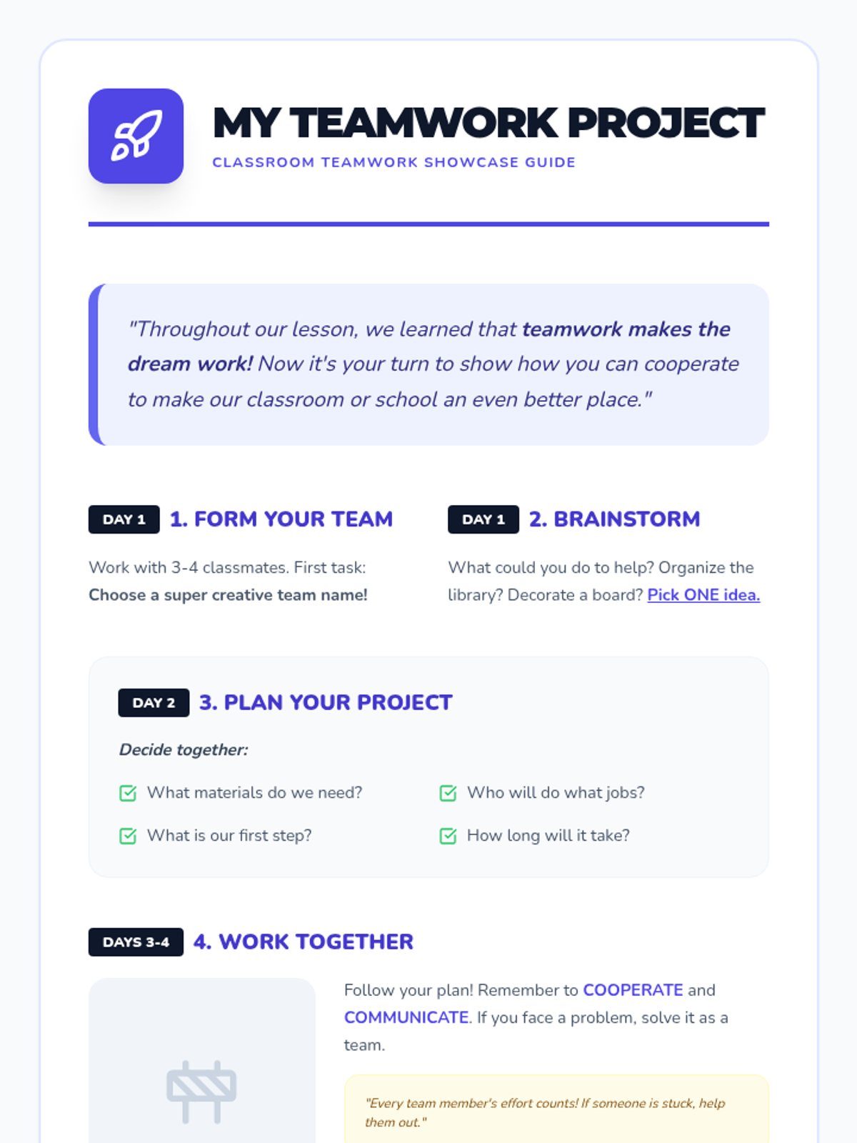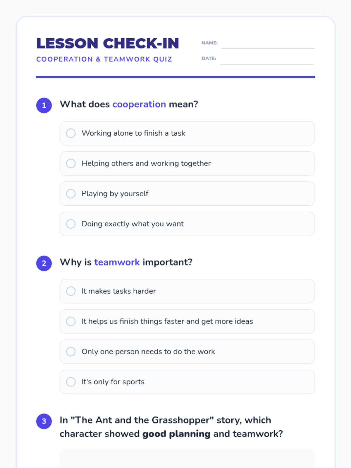 A 60-minute interactive lesson for Primary 3 & 4 students to learn and practice the vital skills of cooperation and teamwork through activities, stories, and games.