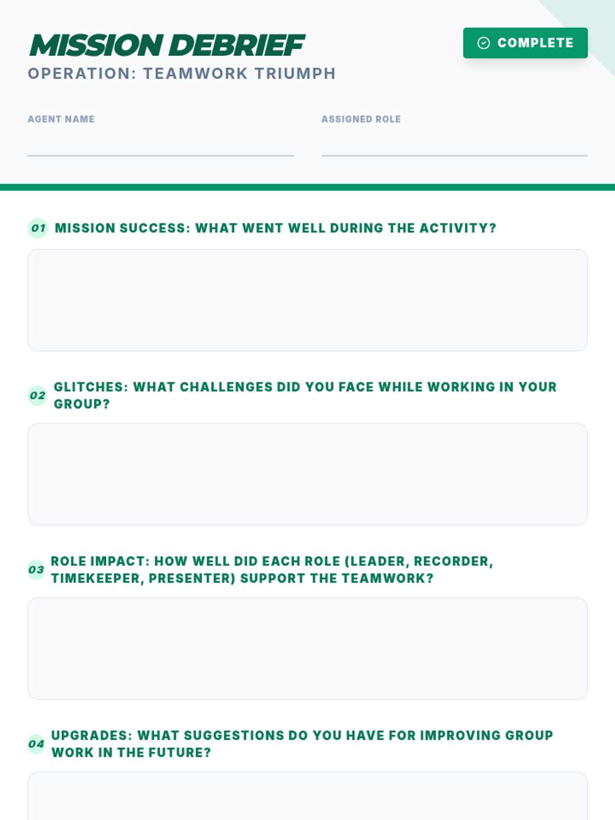 A high-stakes secret agent escape room designed for middle school students, featuring complex logic grids, binary decryption, spatial reasoning, and data analysis. Operatives must work through three rigorous phases of testing to earn their field status.