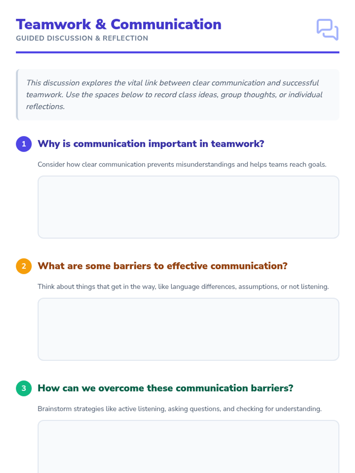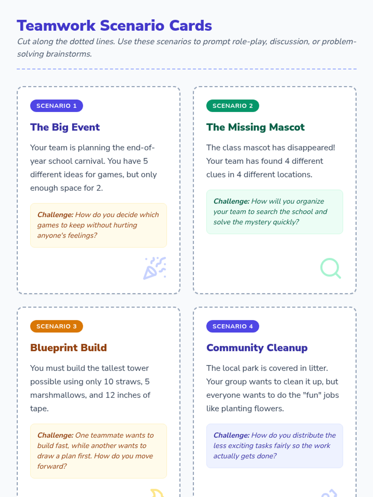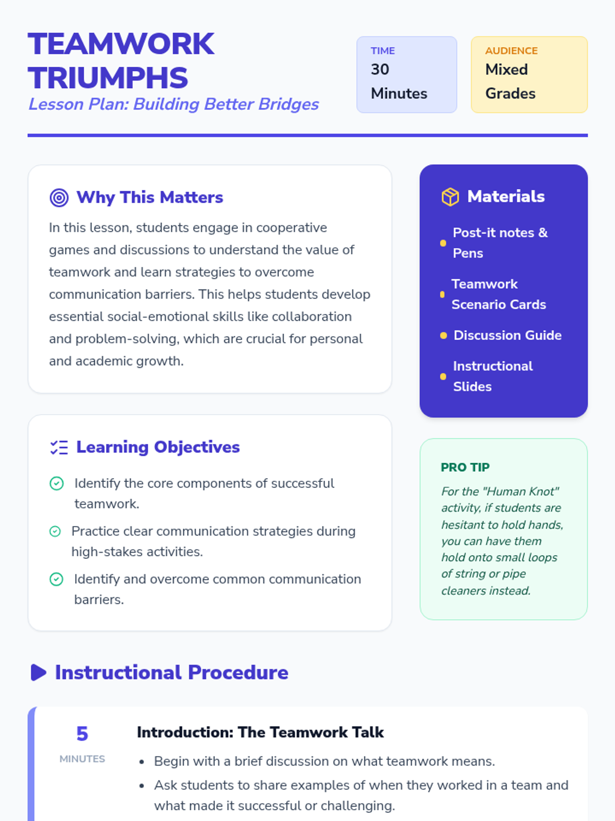 Students engage in cooperative games and discussions to understand teamwork value and communication strategies. This lesson builds essential social-emotional skills through active participation and reflection.