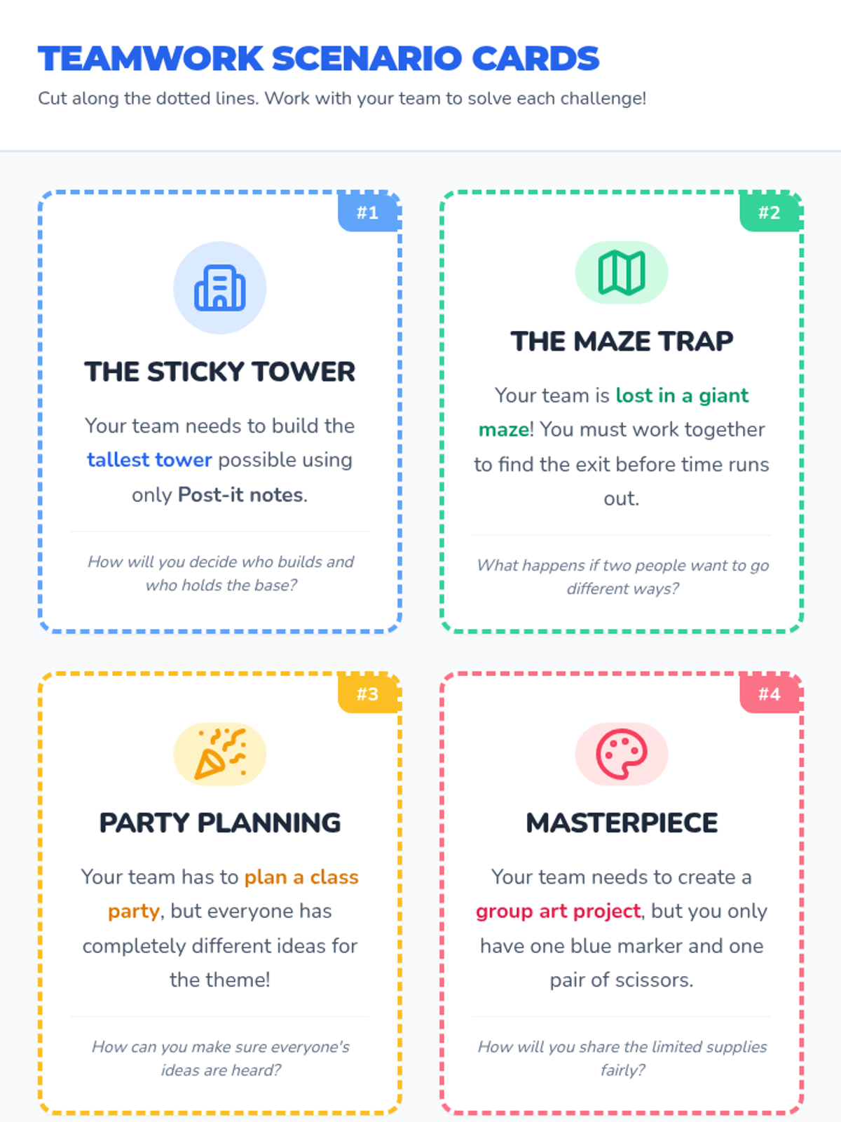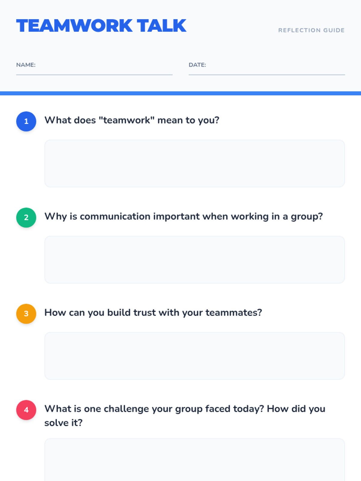 Students engage in group activities and games designed to teach the importance of teamwork and collaboration, focusing on communication, trust, and cooperation.