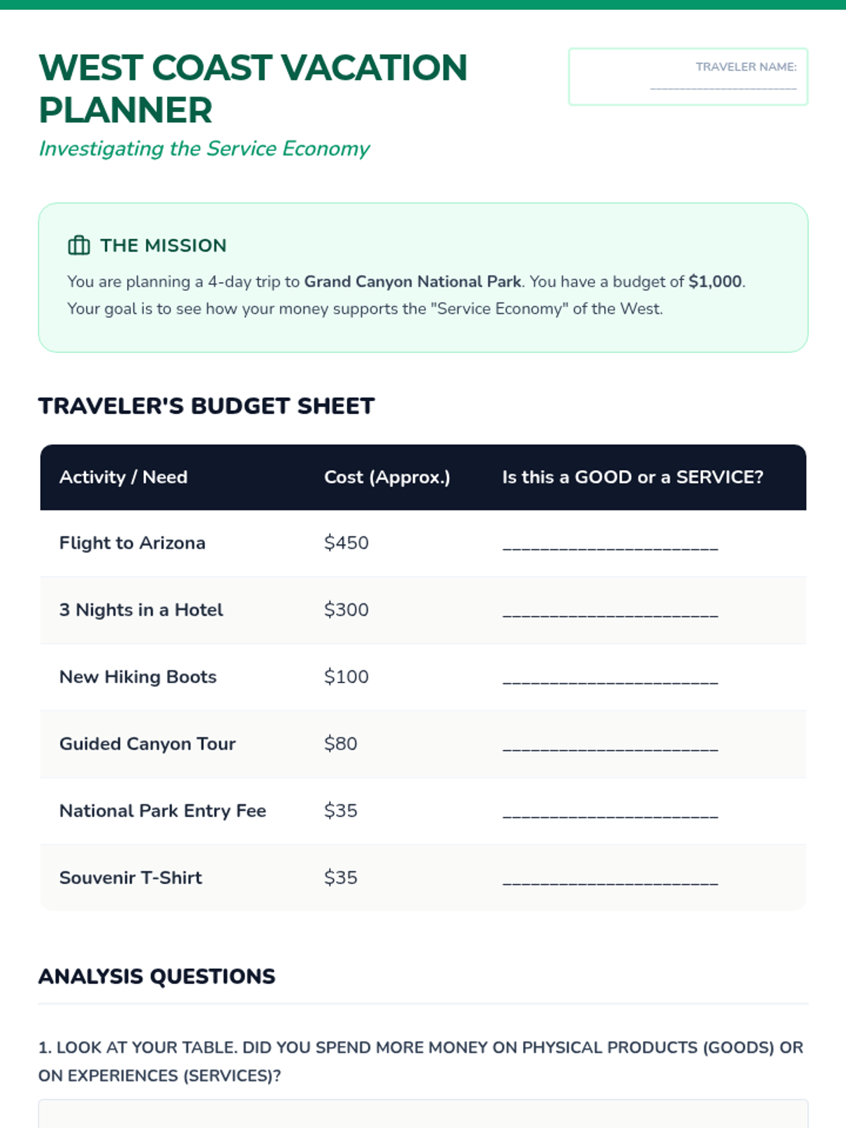 An exploration of the West's service-based economy, focusing on the technology industry and tourism. Students analyze the economic impact of Silicon Valley and National Parks.