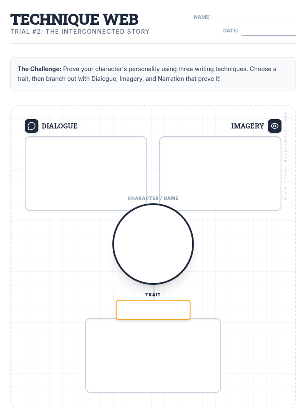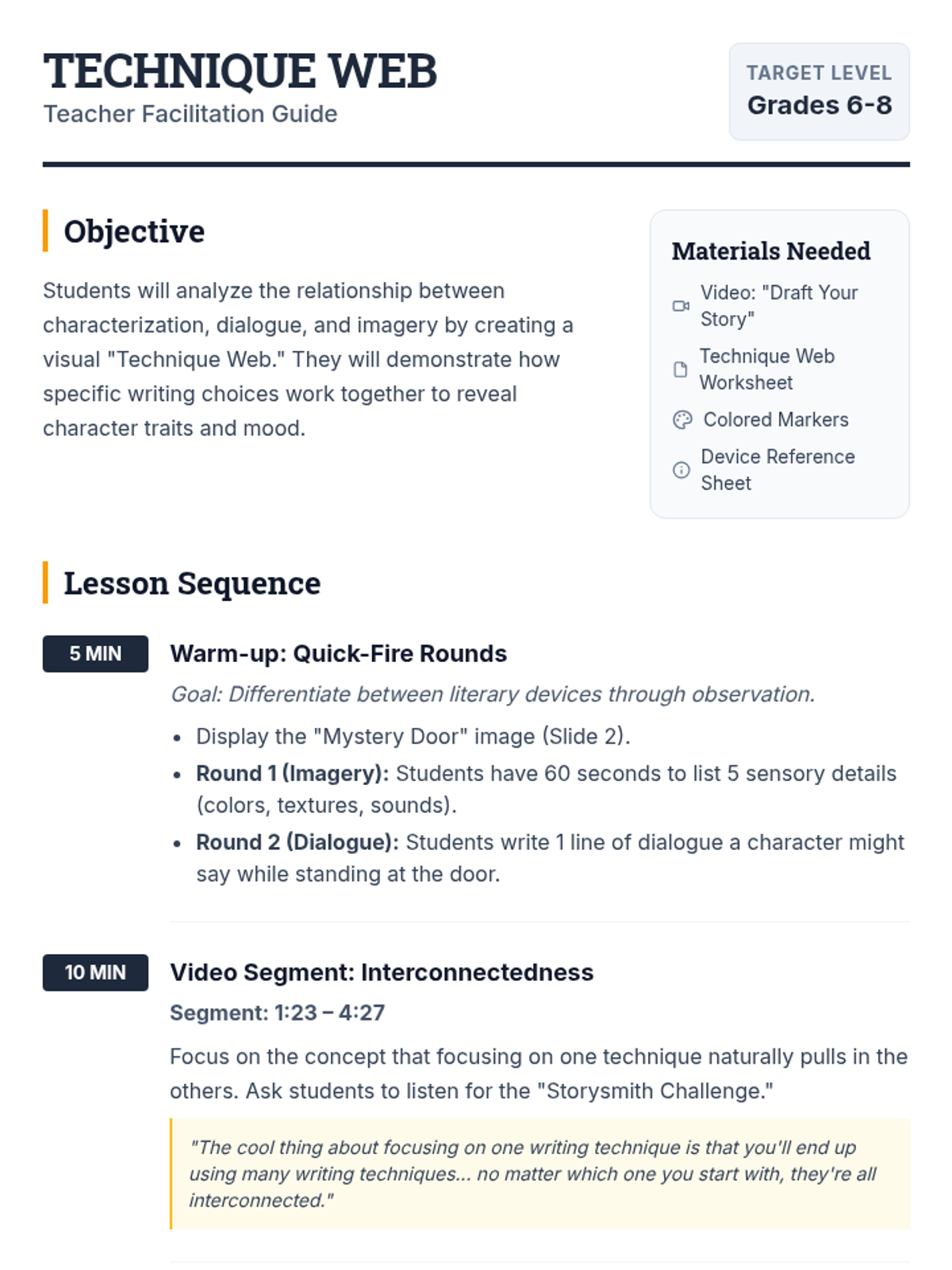 Students analyze the interconnectedness of literary devices—characterization, dialogue, and imagery—through a visual mapping activity inspired by the 'Storysmith' drafting process.