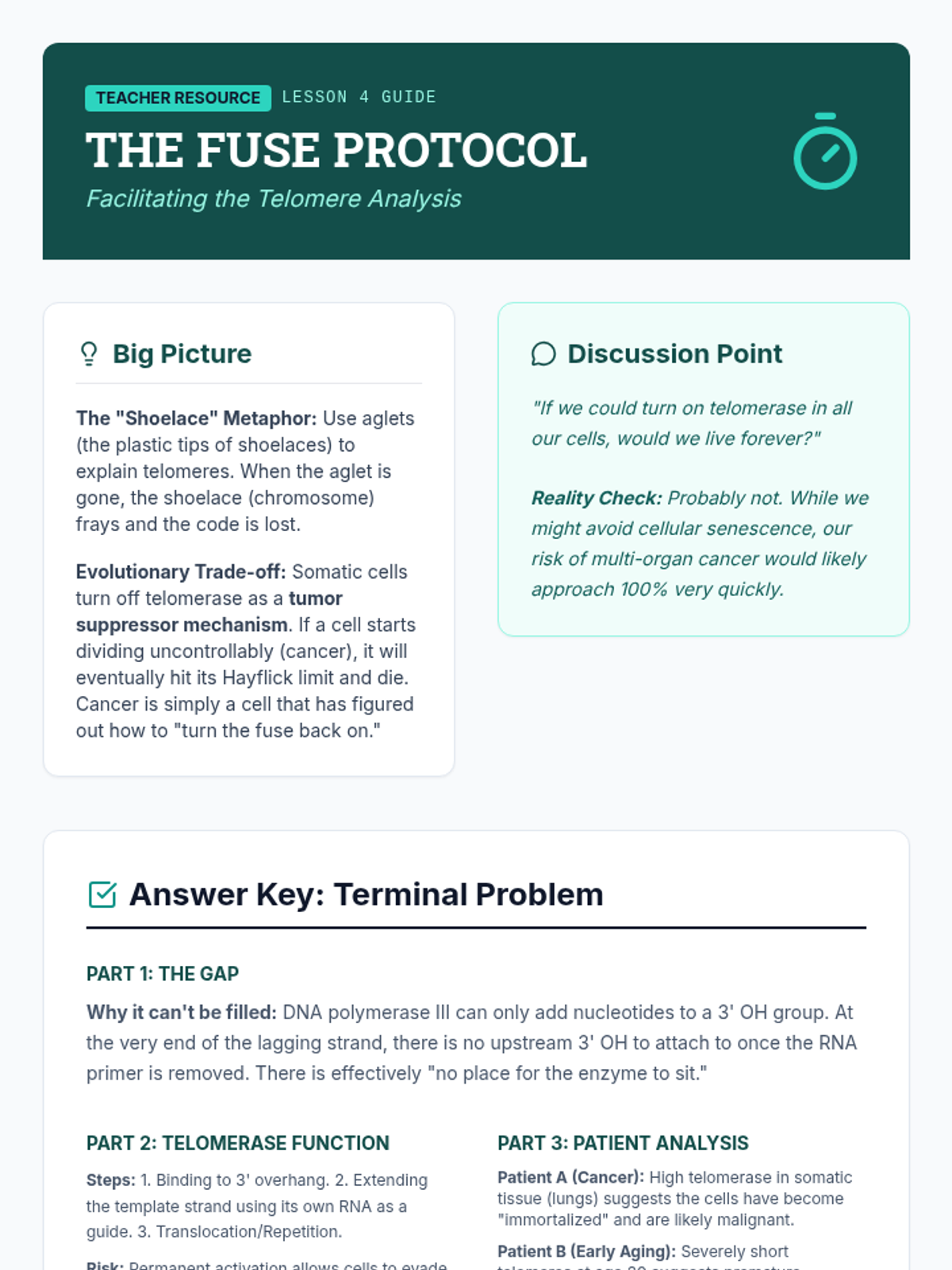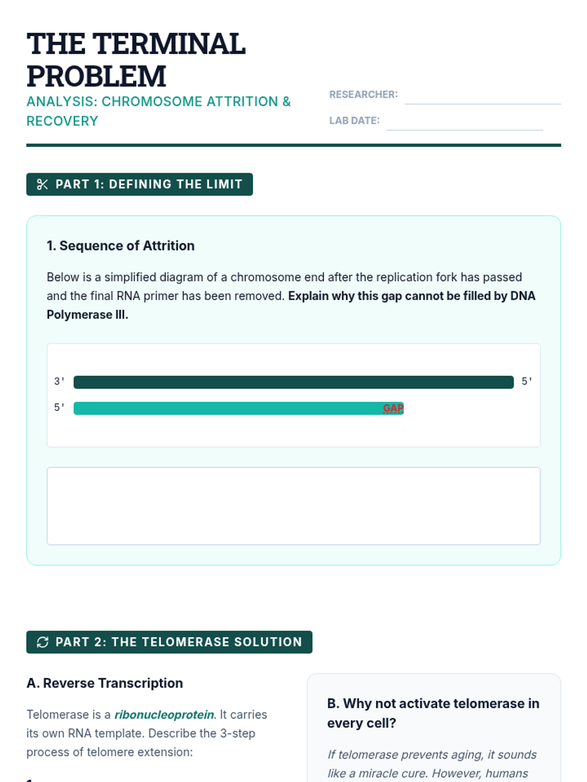 Exploration of telomeres and telomerase, addressing the challenges of linear chromosome replication and its link to cellular aging.