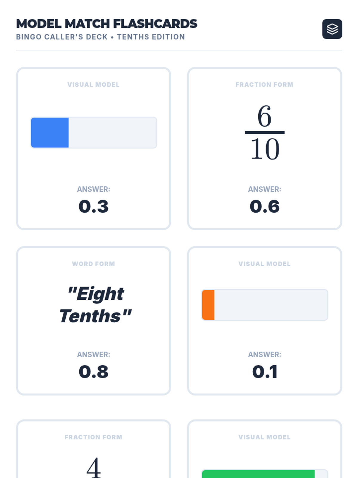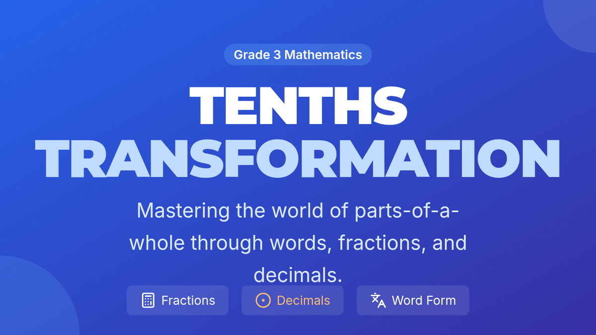 Students will learn to convert between word form, fraction form, and decimal notation for tenths using visual models and a number line, culminating in a Decimal Bingo game.