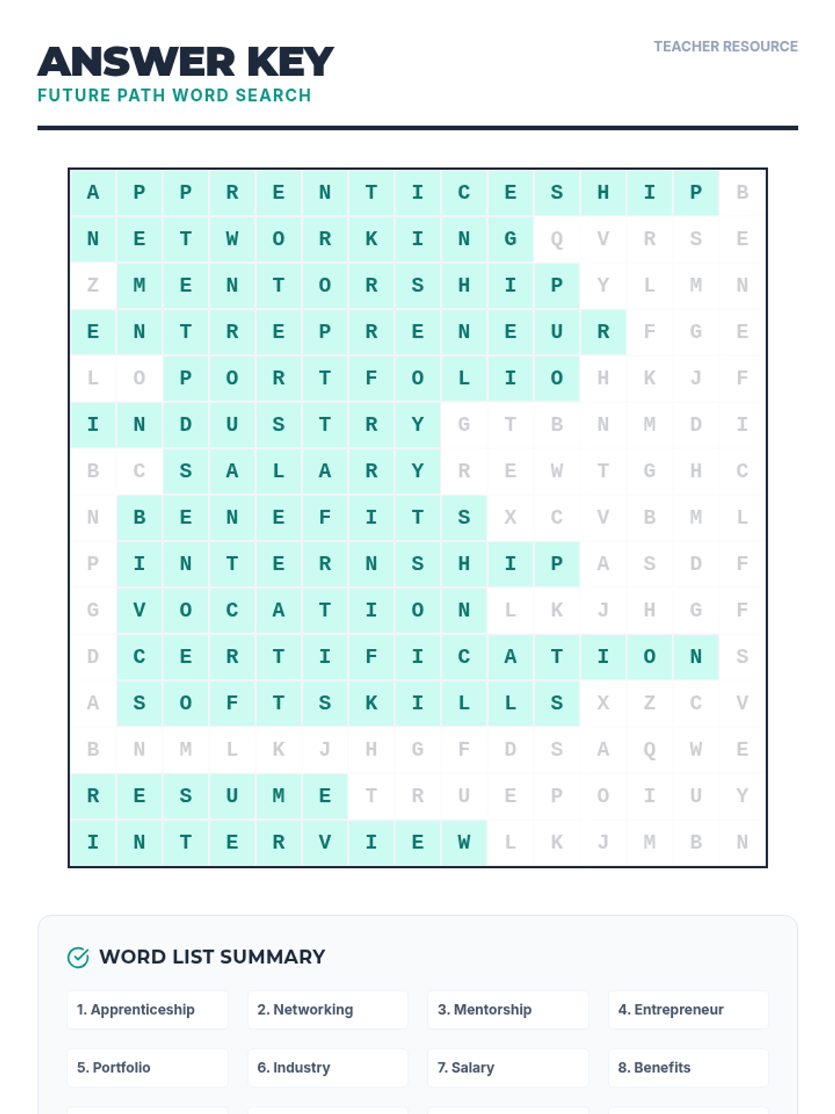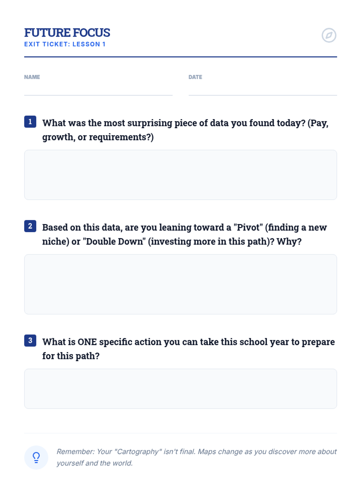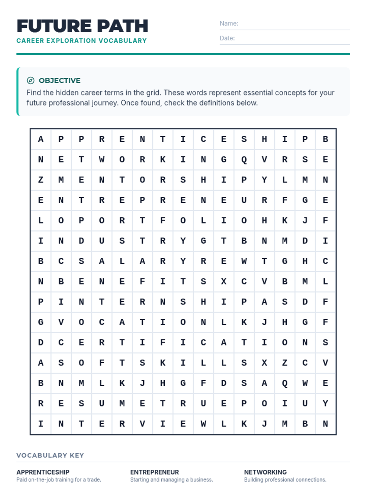 A lesson focused on exploring career pathways, professional terminology, and the skills needed for the modern workforce. Students will identify key concepts related to career planning and preparation.
