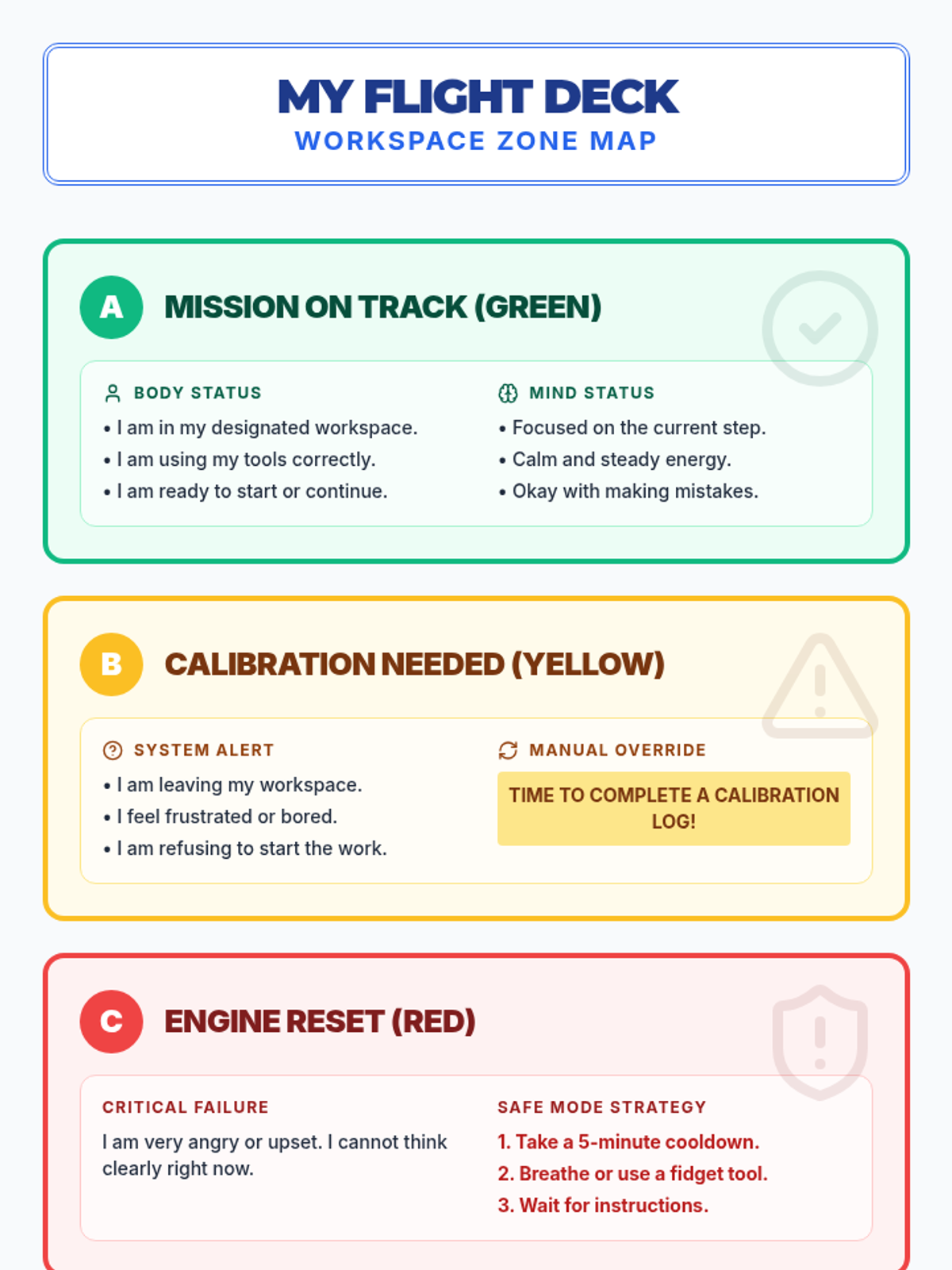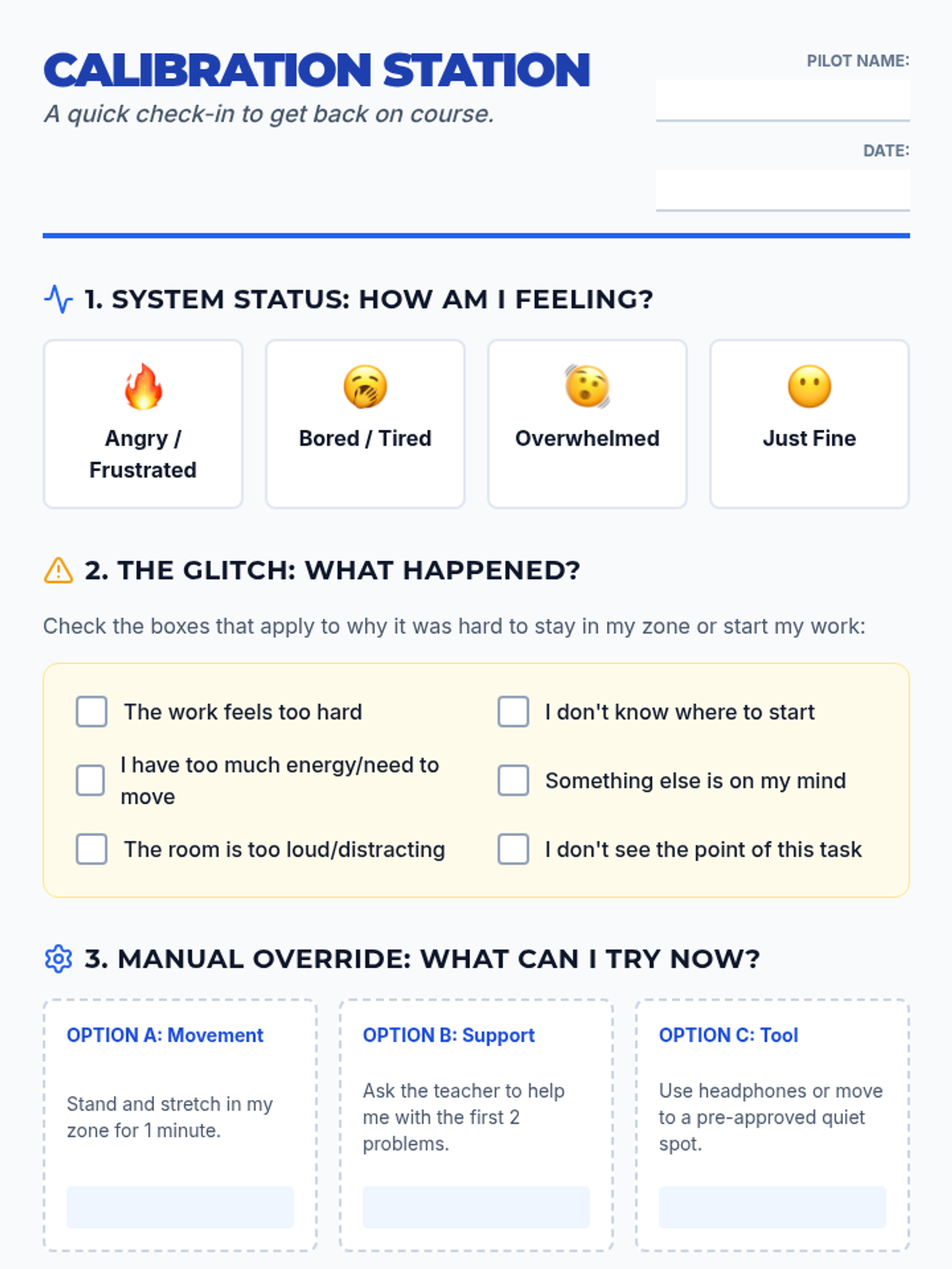 A daily check-in system designed to help students identify their energy levels, emotional states, and regulation needs. Includes a student log and a teacher implementation guide.