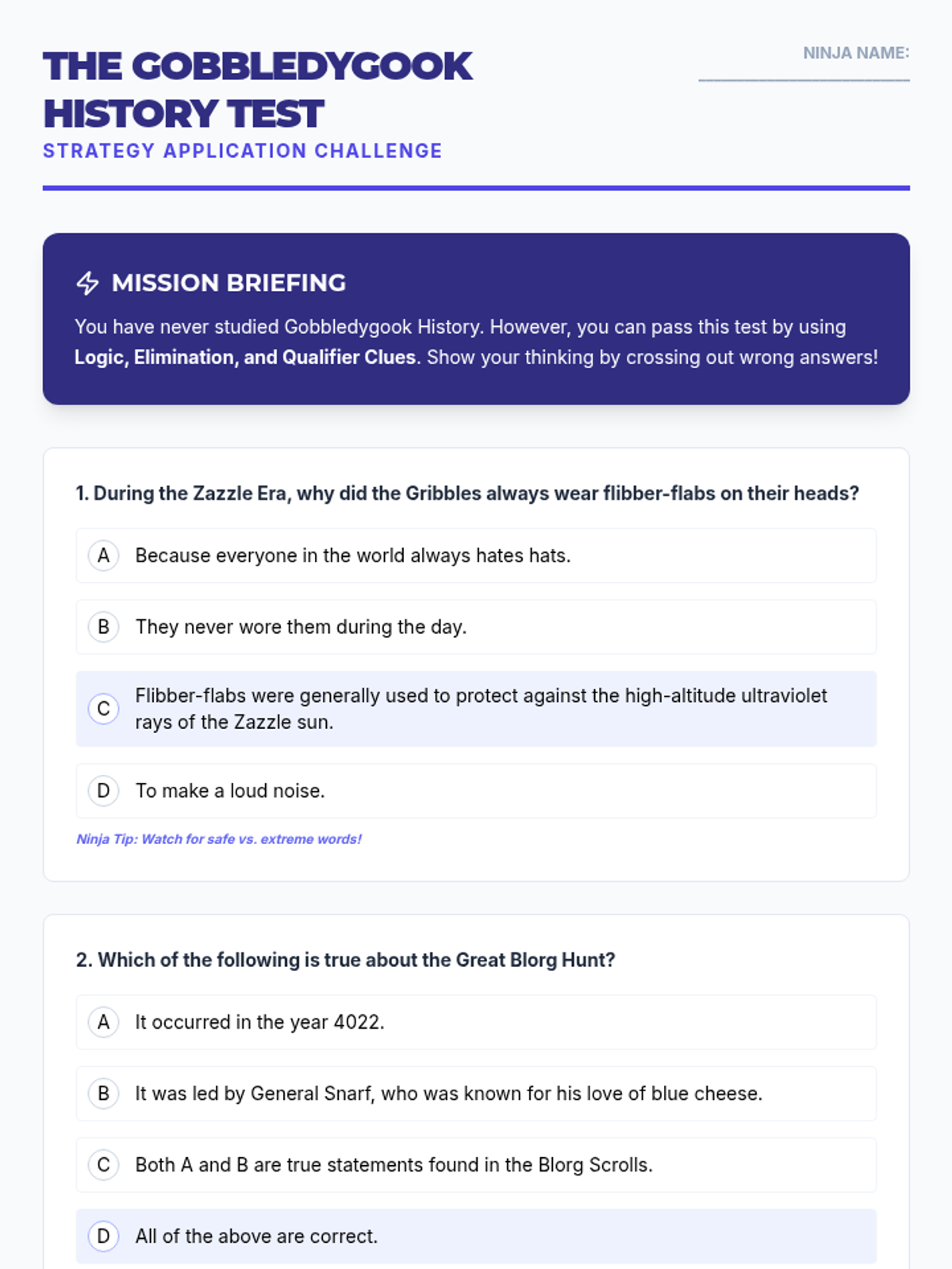 Focusing on the logic of tests, students learn to navigate multiple-choice questions using elimination, identifying qualifiers, and predictive answering.