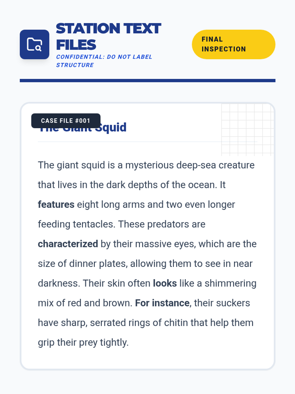 A high-stakes grammar escape room where students act as secret agents to solve mysteries using their knowledge of parts of speech and subject-verb agreement.