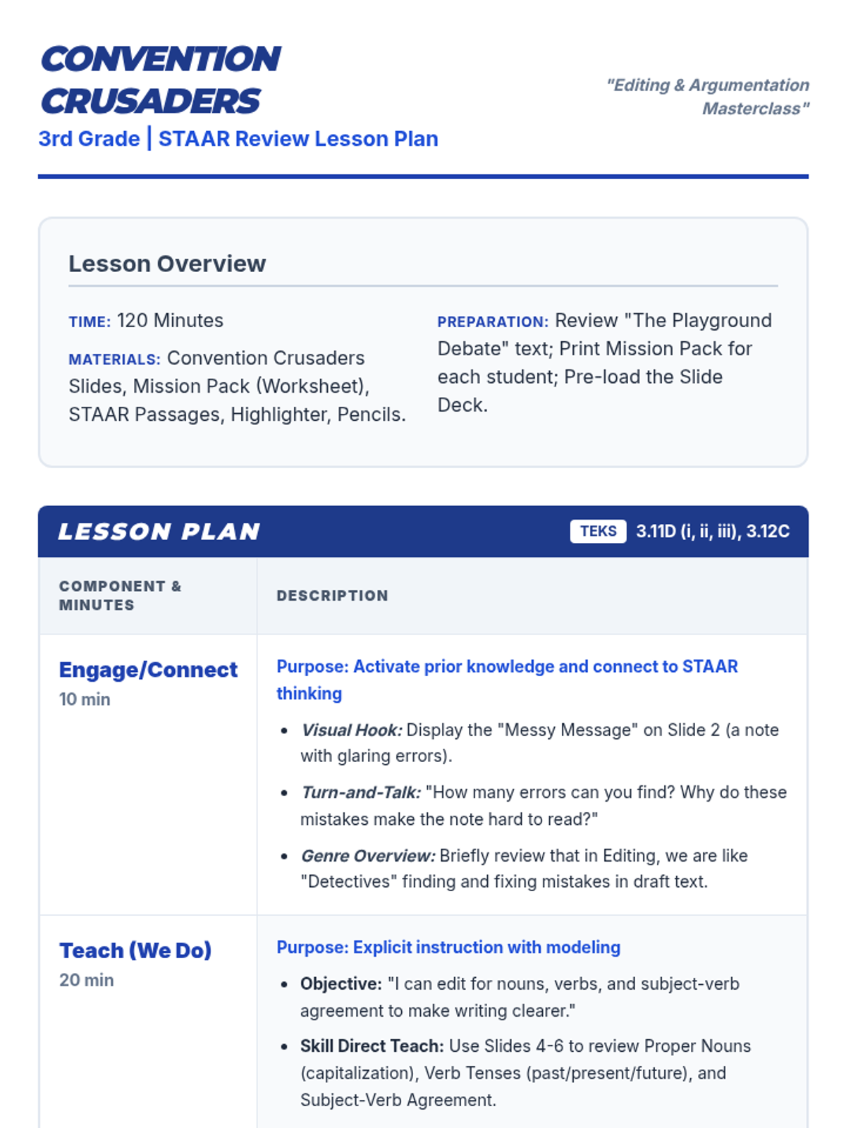 A 20-minute mini-lesson introducing five key non-fiction text structures: description, chronology, comparison, cause/effect, and problem/solution. This lesson uses Revolutionary War examples to help students identify how authors organize information.