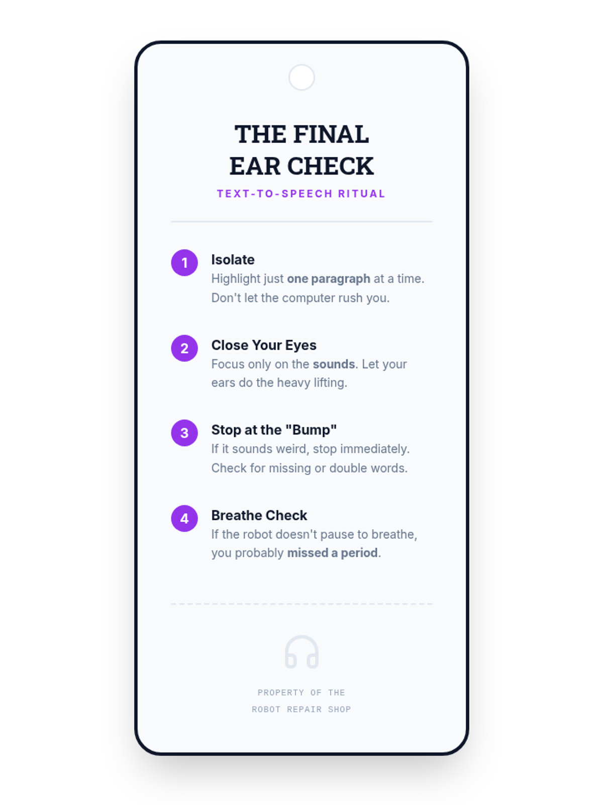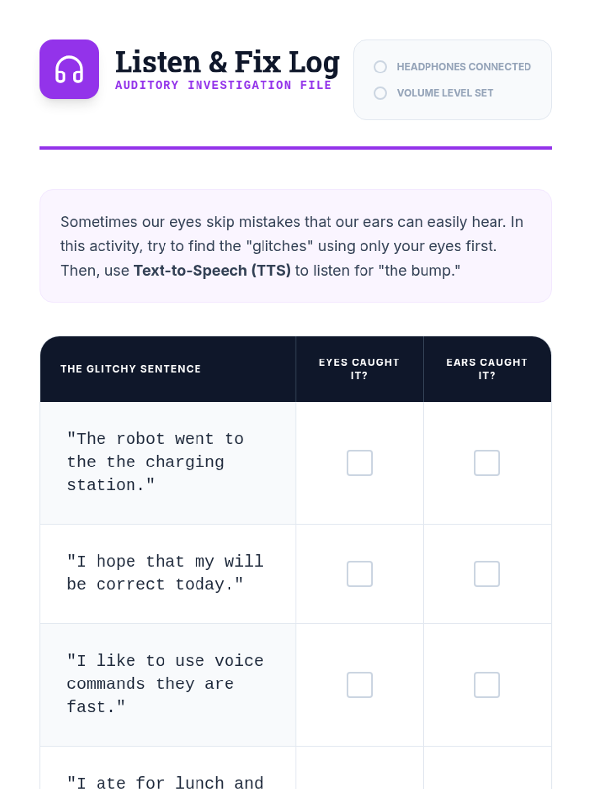 Students integrate text-to-speech (TTS) tools to hear their dictated work read aloud. This auditory check helps identify missing words, awkward phrasing, and punctuation errors that the eye might miss.