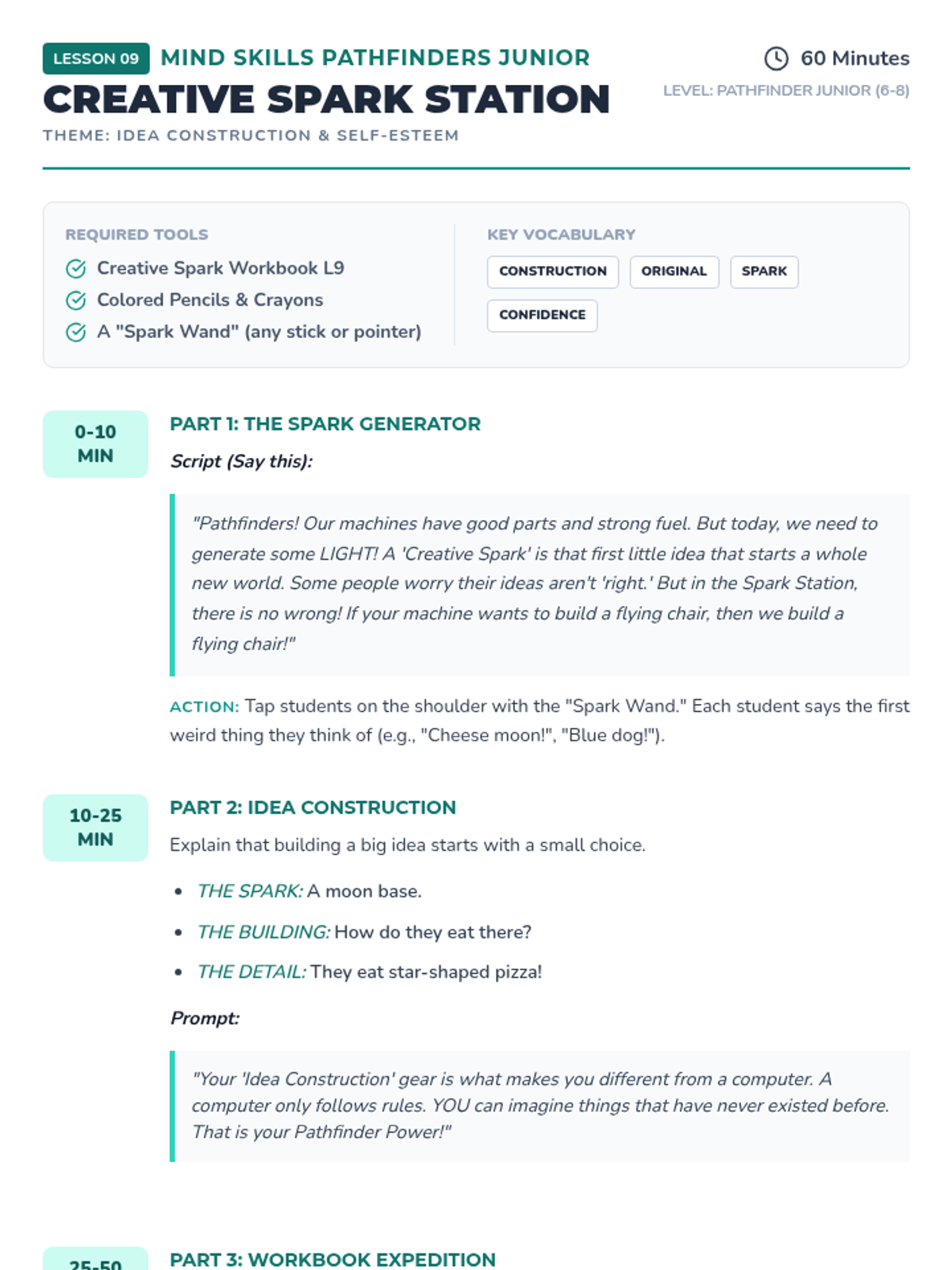 Encourages idea construction and creative writing, showing students how to fuel their mind machines with imagination to create original stories.