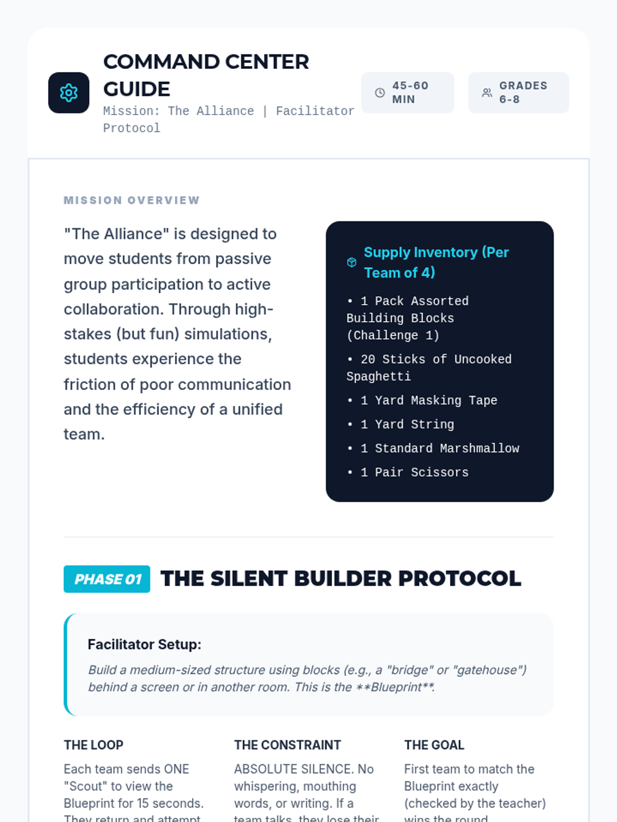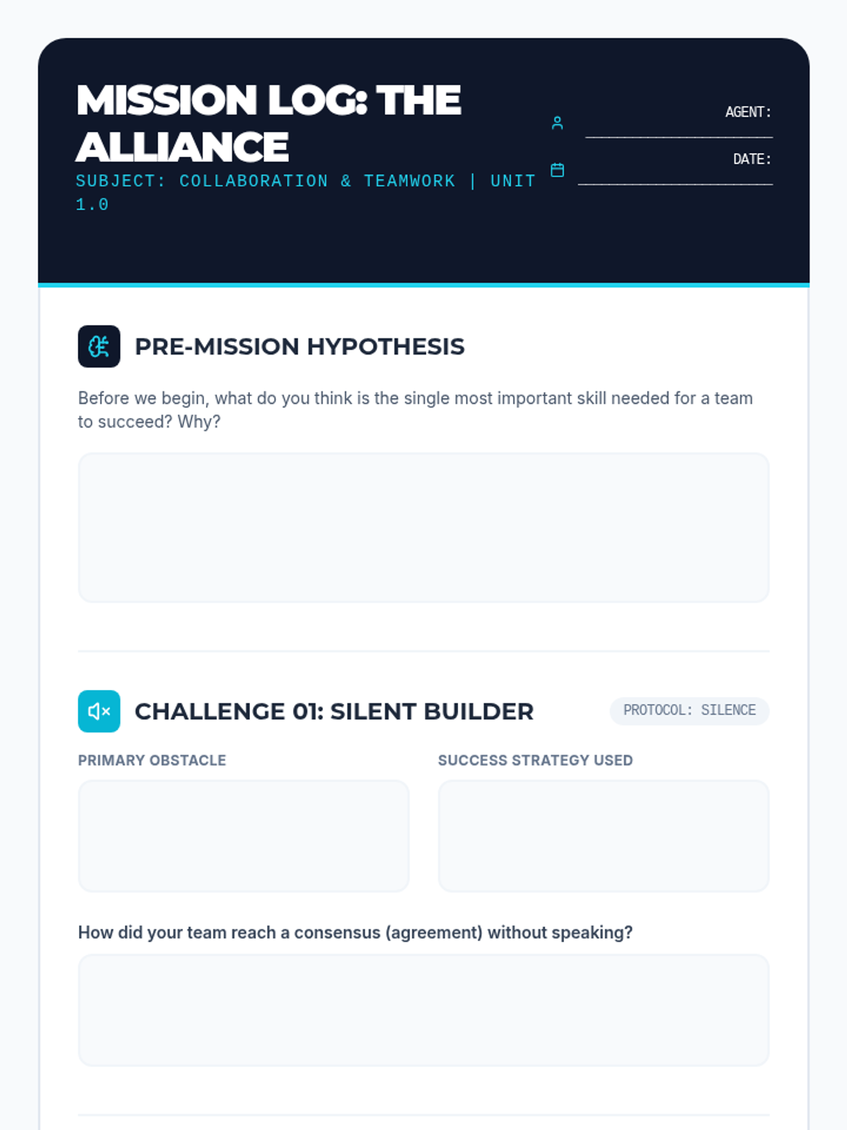 A dynamic lesson focused on developing essential teamwork and collaboration skills through interactive group challenges and structured reflection for middle school students.