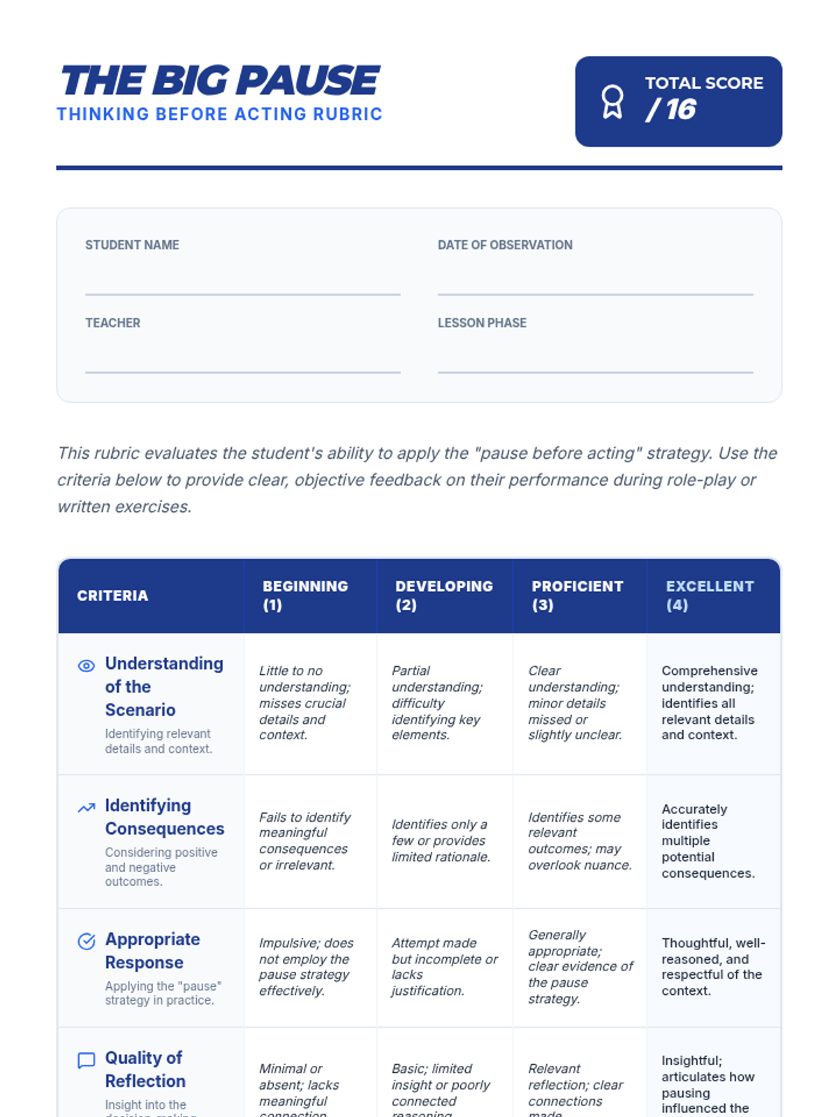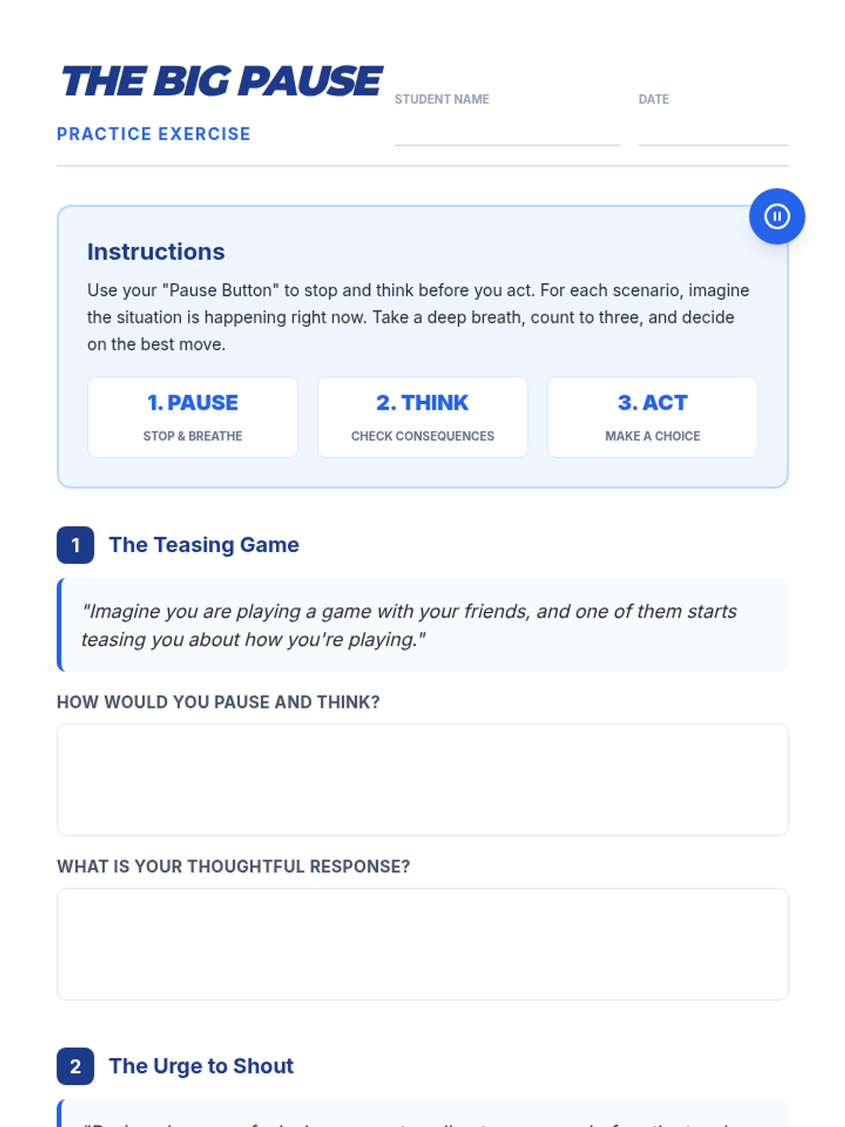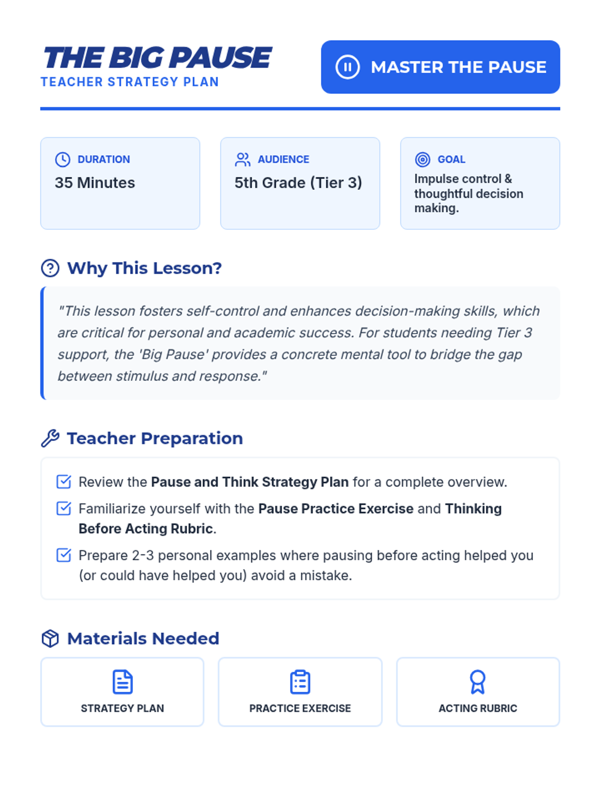 This individualized lesson teaches 5th-grade students the power of pausing before acting, helping them develop the habit of thinking through impulses to make better decisions.