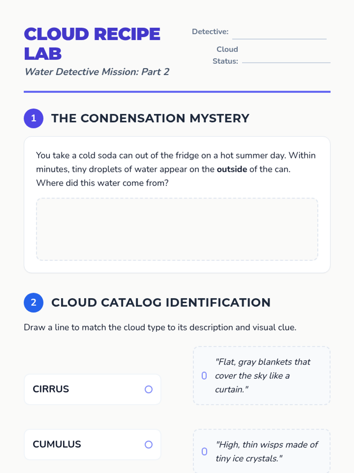 In this lesson, students dive into the water cycle while mastering RI.3.1 by asking and answering 'How' and 'Why' questions. They will explore the continuous journey of water through reading and evidence-based inquiry.