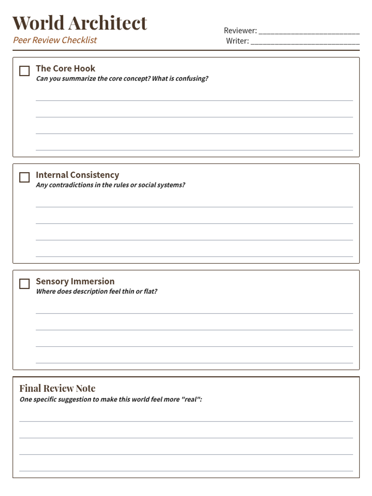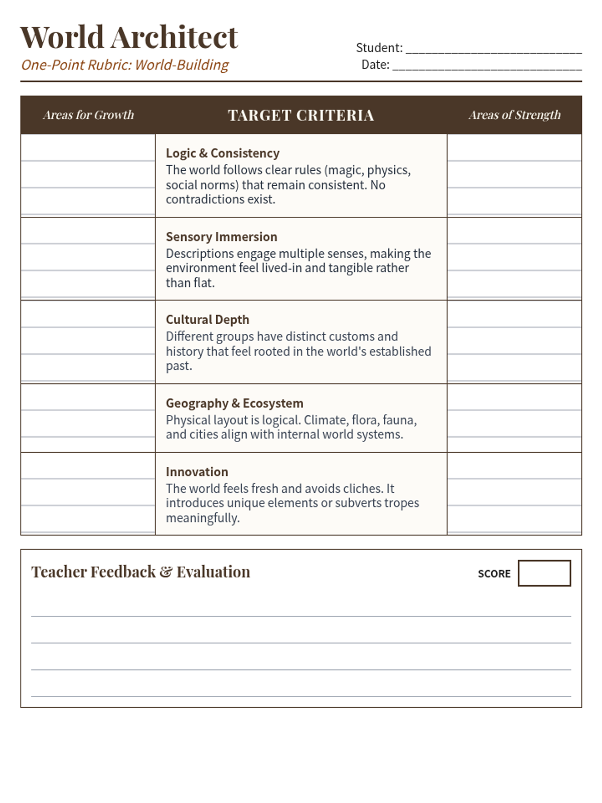 Focuses on the construction of immersive fictional settings, cultures, and systems. Students develop internal logic and sensory-rich details for their unique worlds.