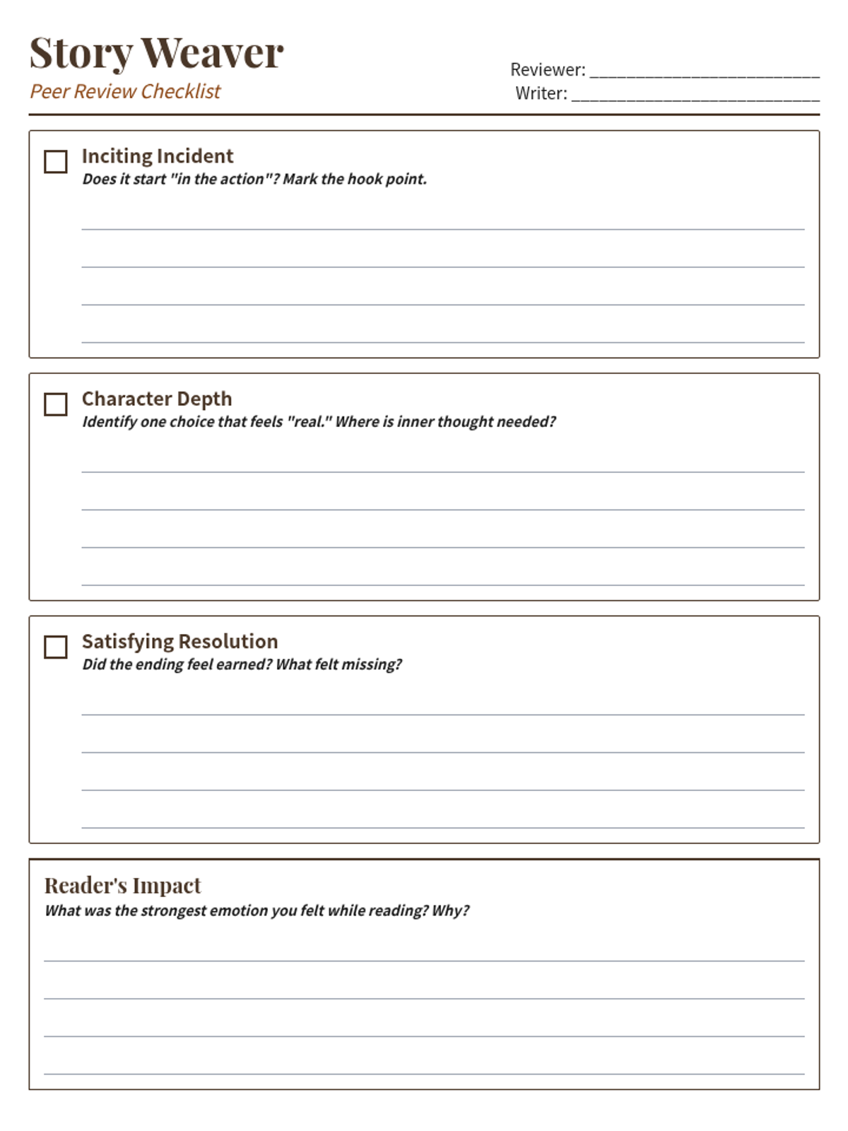 Explores the elements of short fiction, including character development, plot structure, and narrative voice. Students craft complete stories with clear arcs and themes.