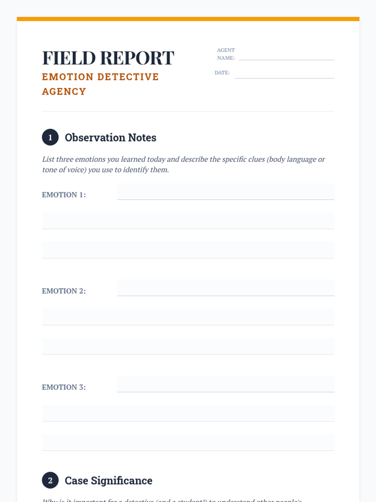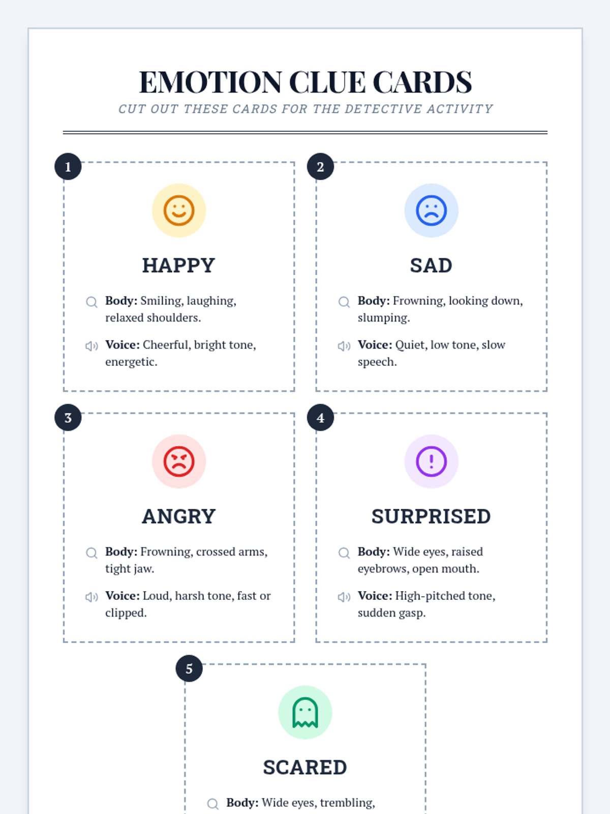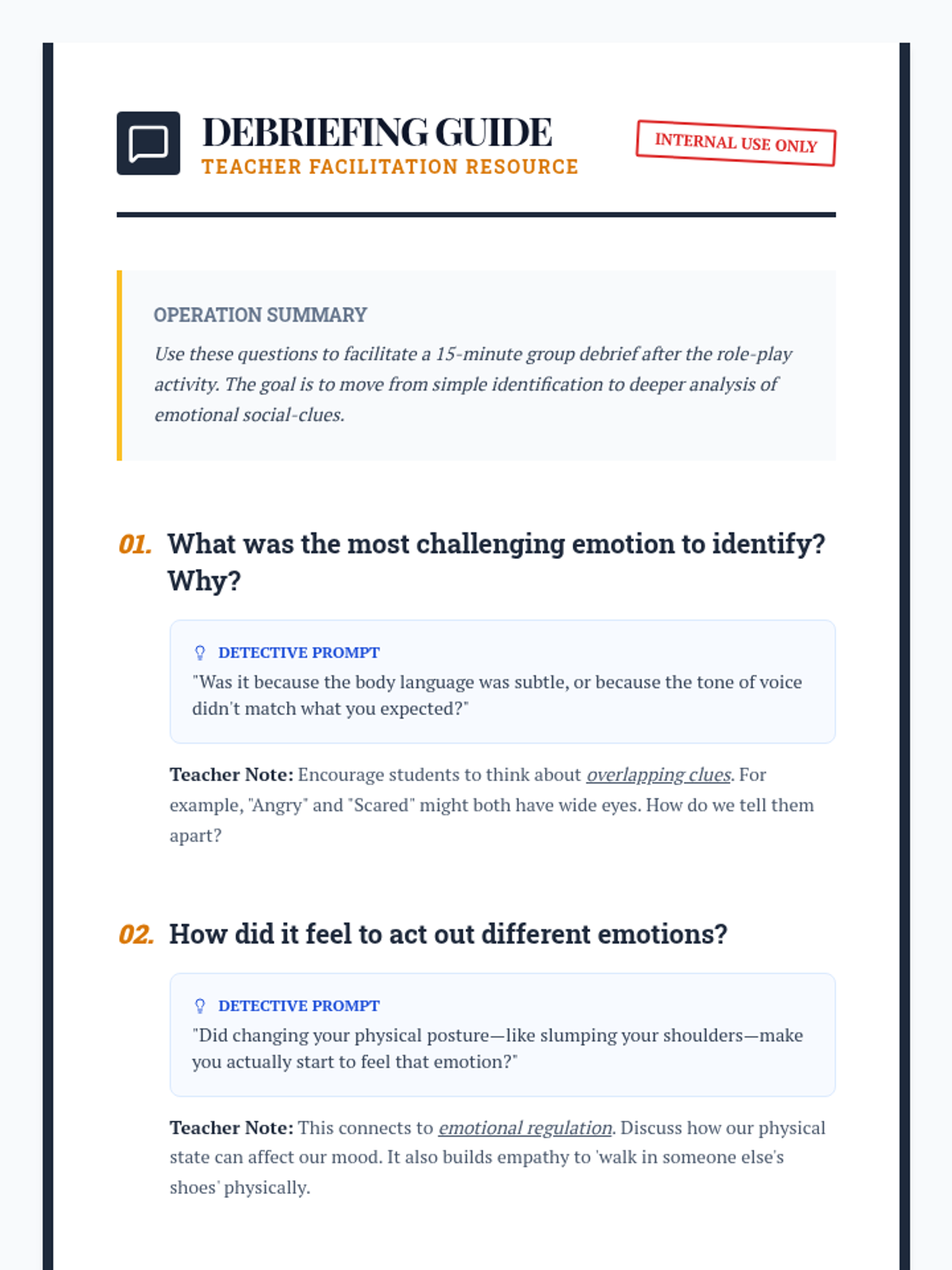 A lesson where 4th-grade students become 'Emotion Detectives' to identify emotions using body language and tone of voice clues. Students will practice empathy and social-emotional skills through role-play and reflective activities.