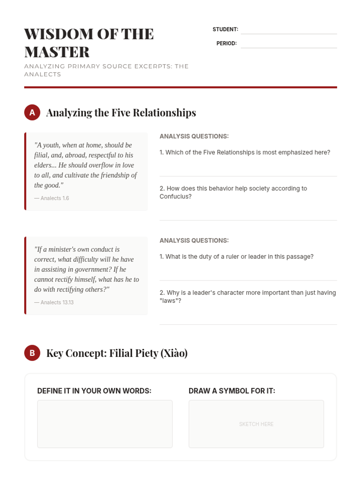 An exploration of Confucianism in Han China, focusing on how the Five Relationships and Filial Piety created a stable society based on ethical family structures.