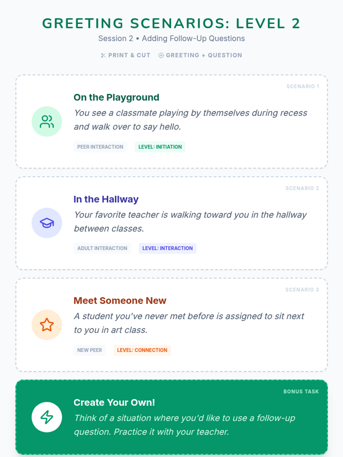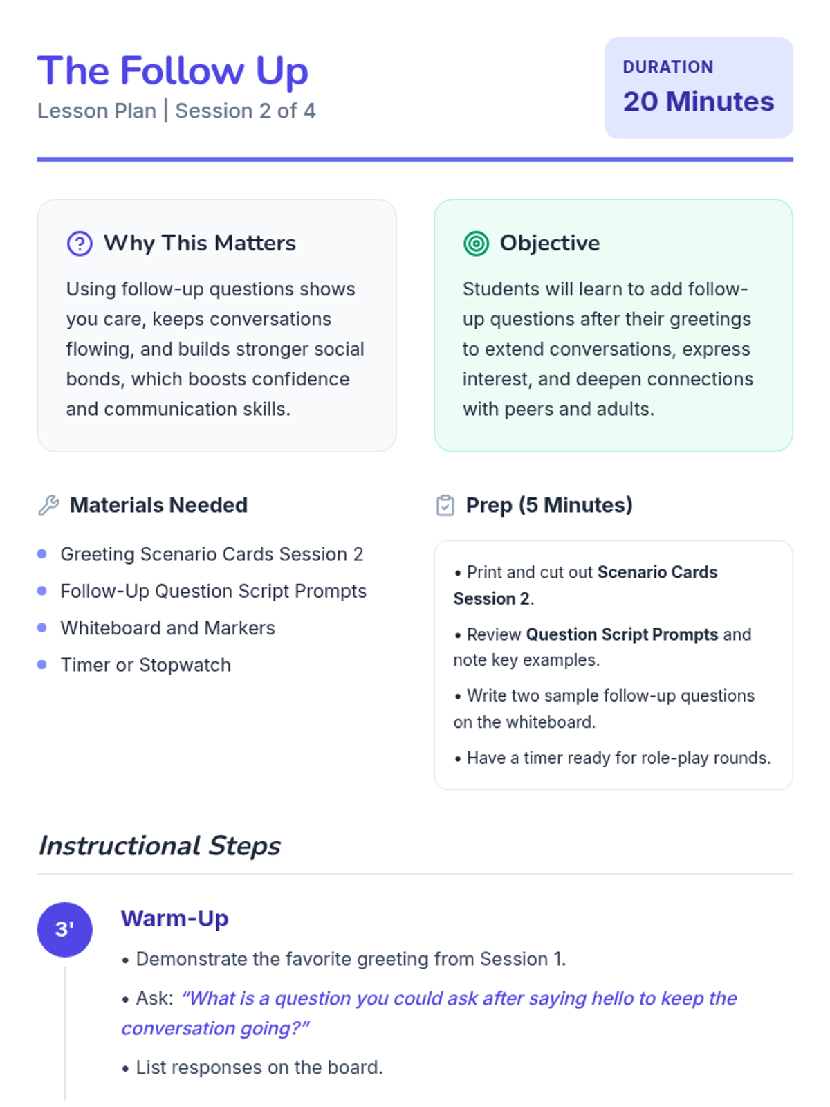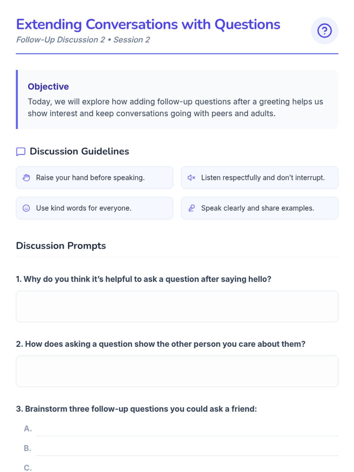 Moving beyond the initial greeting by adding follow-up questions to show interest and extend conversations.