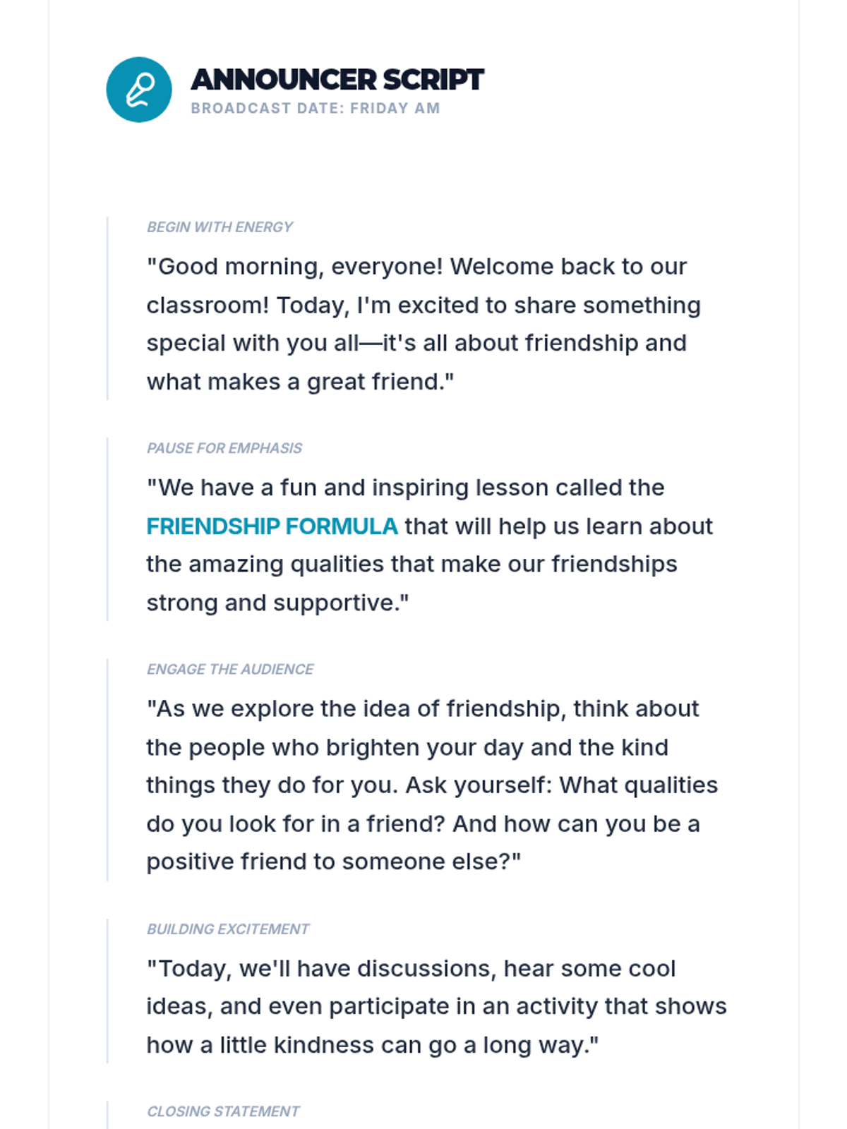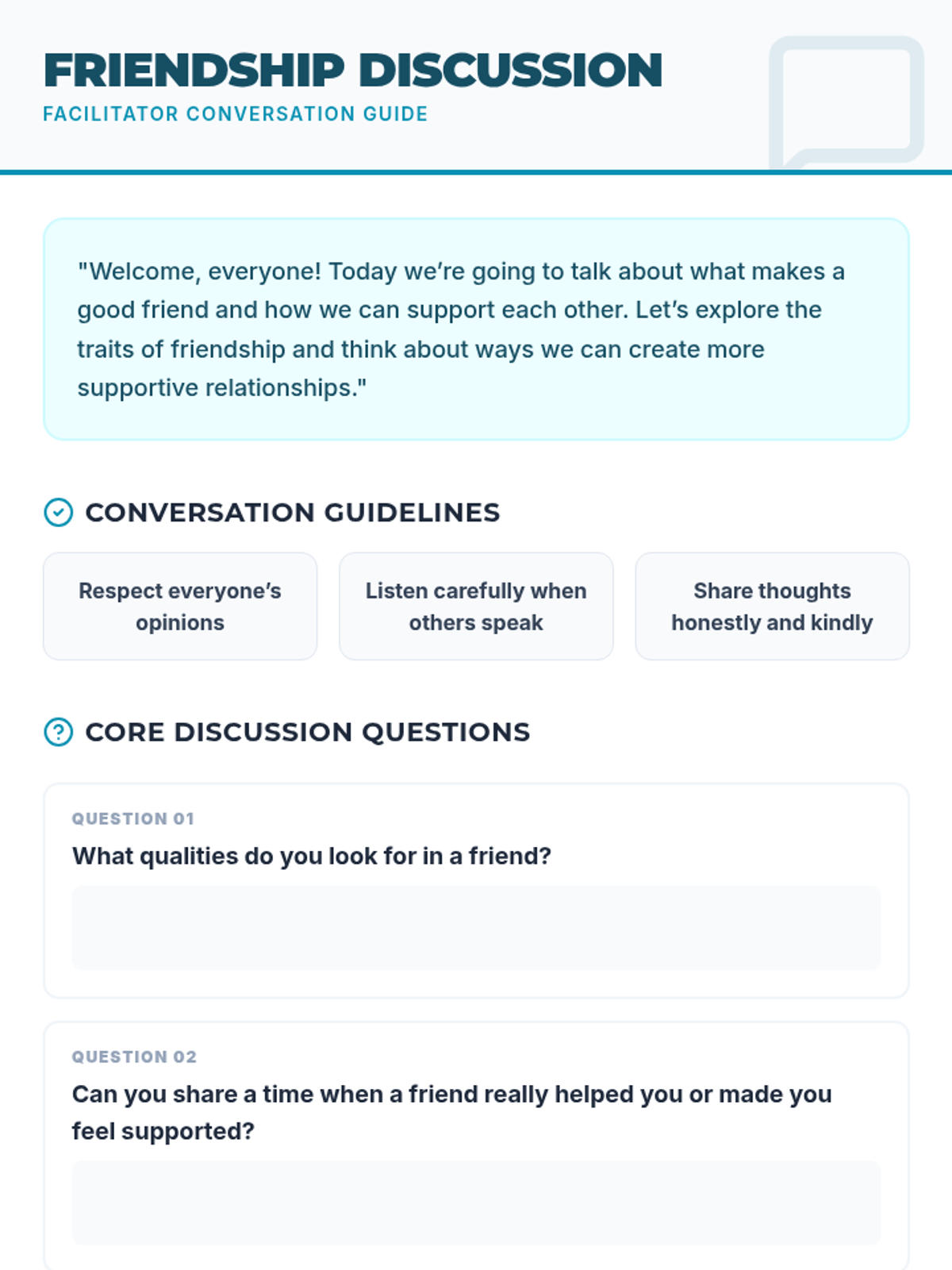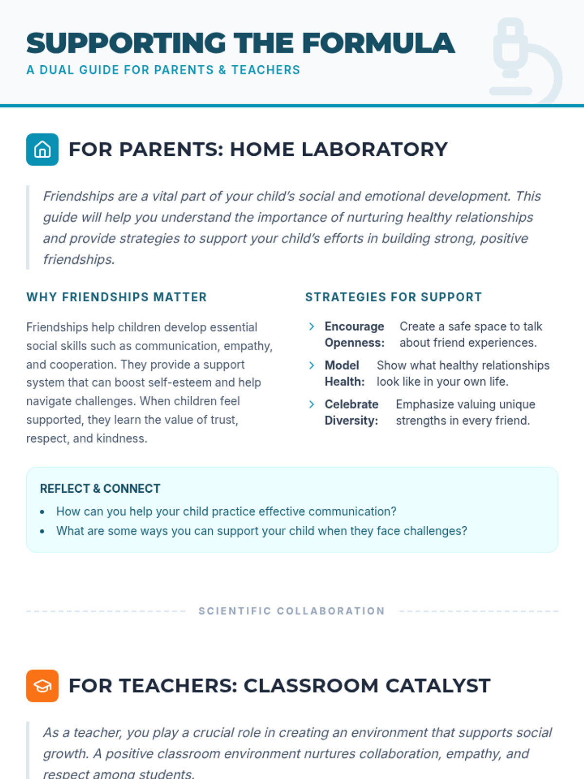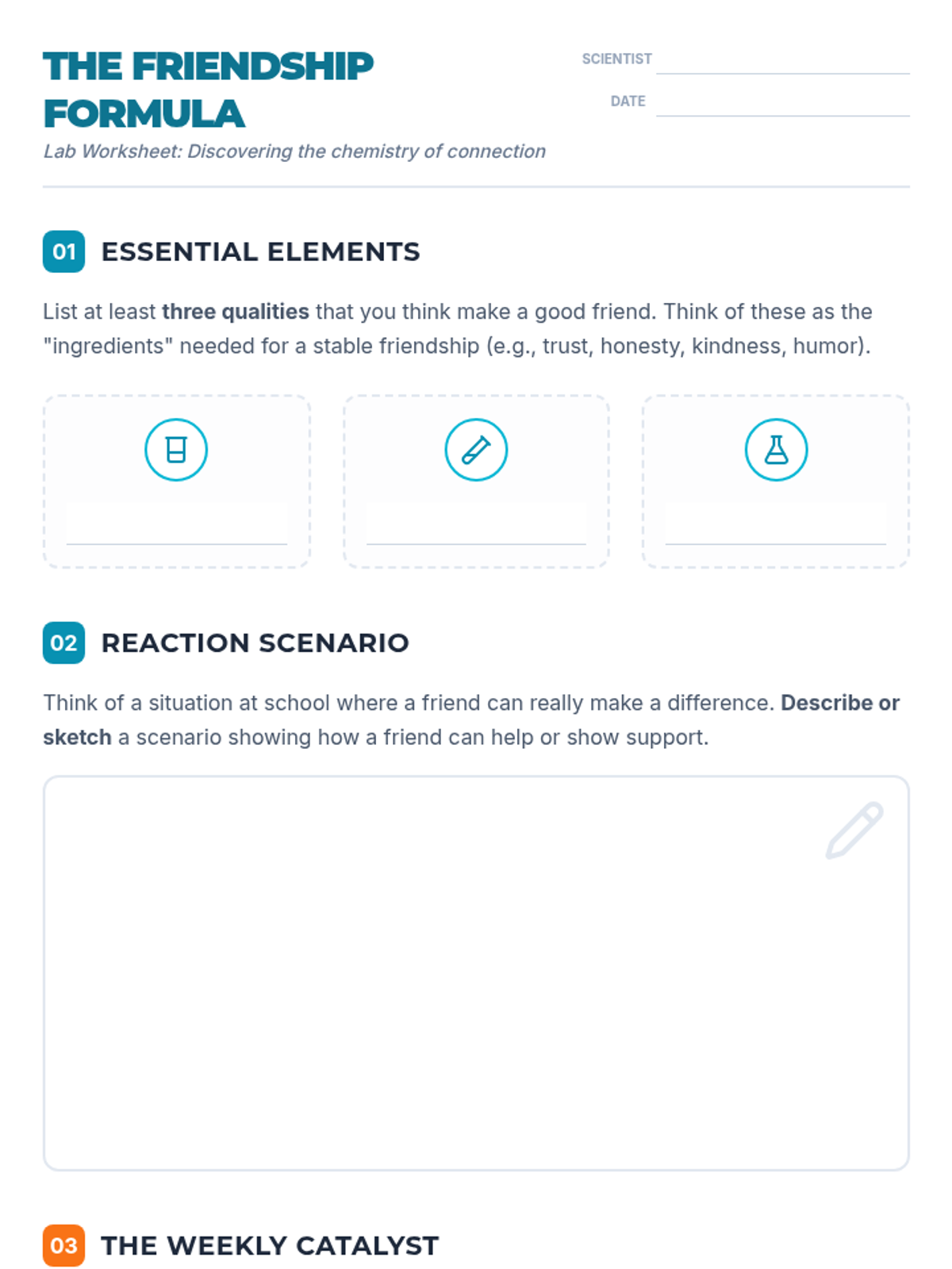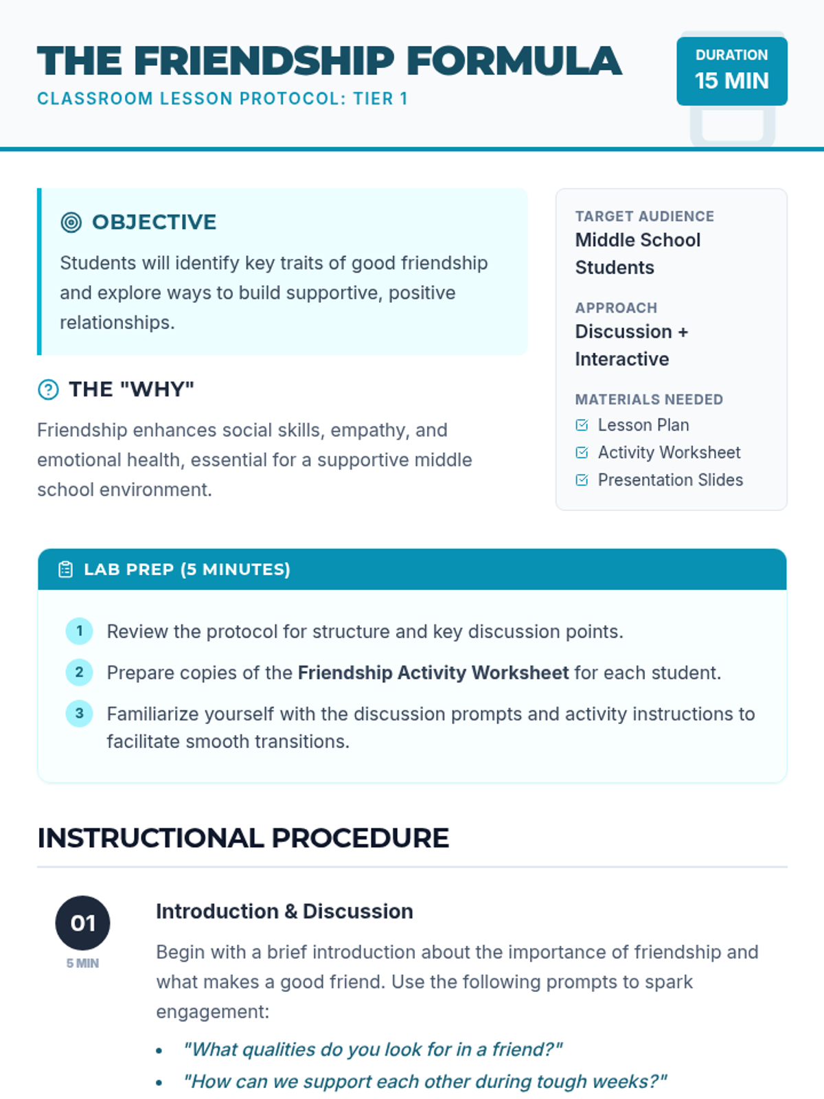 A 15-minute social-emotional learning lesson for middle school students exploring the 'formula' for healthy, supportive friendships through discussion and interactive activities.