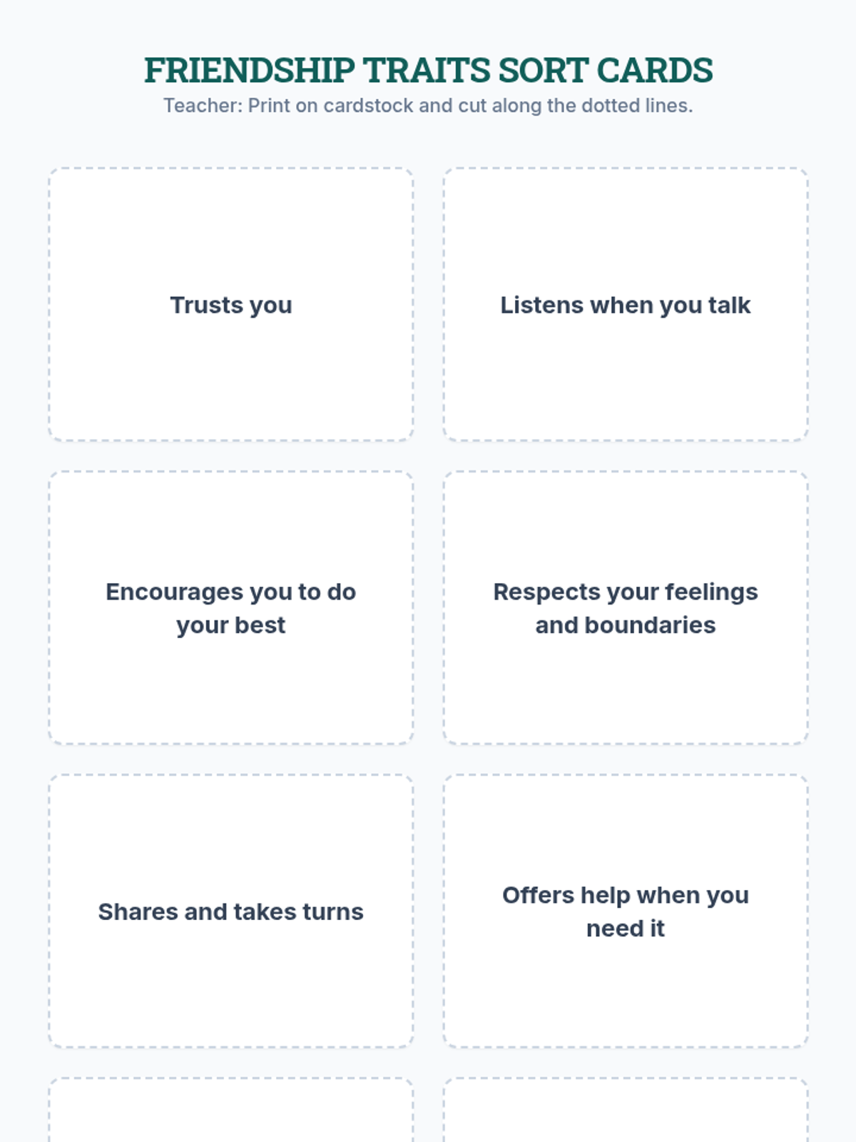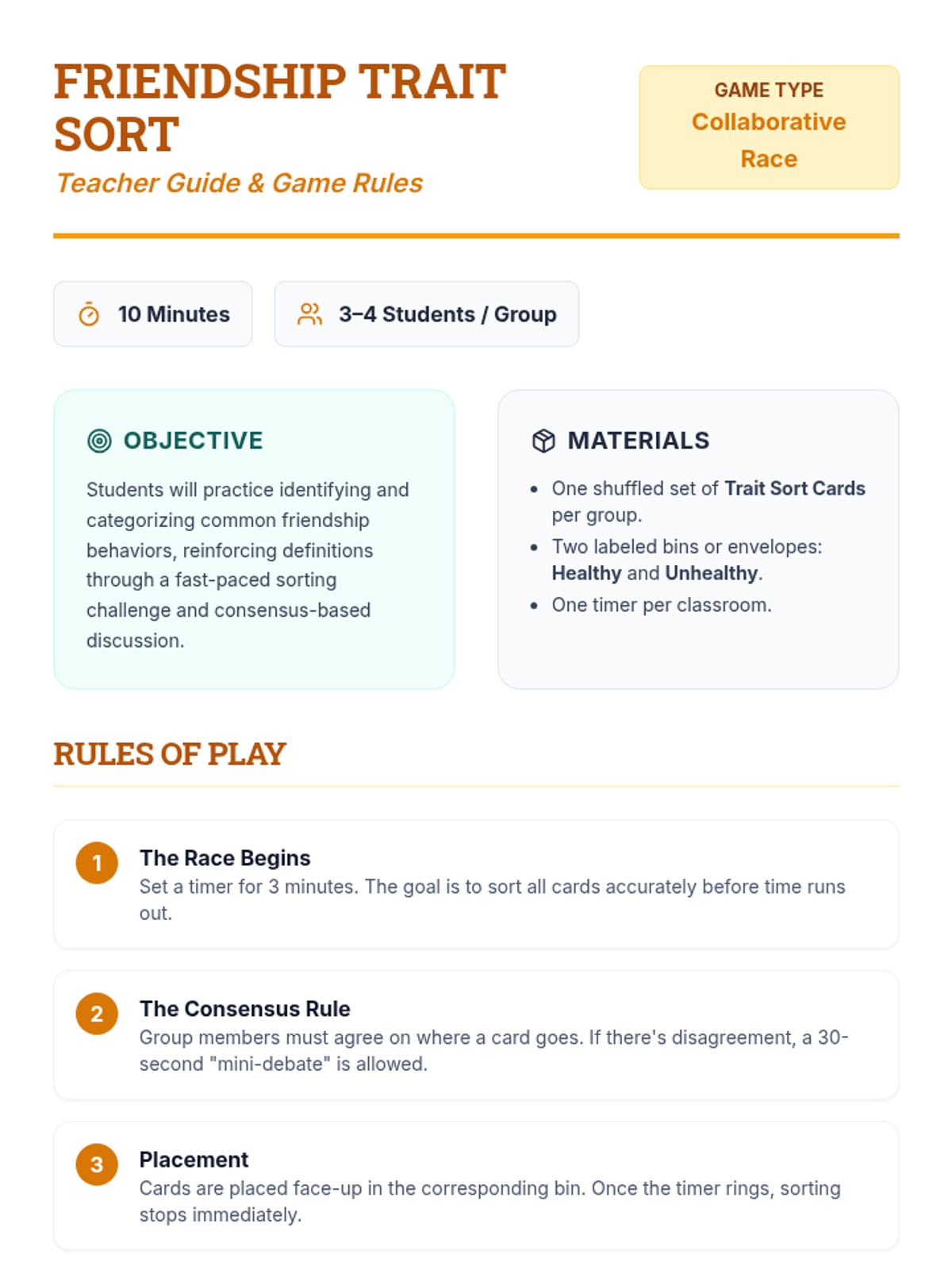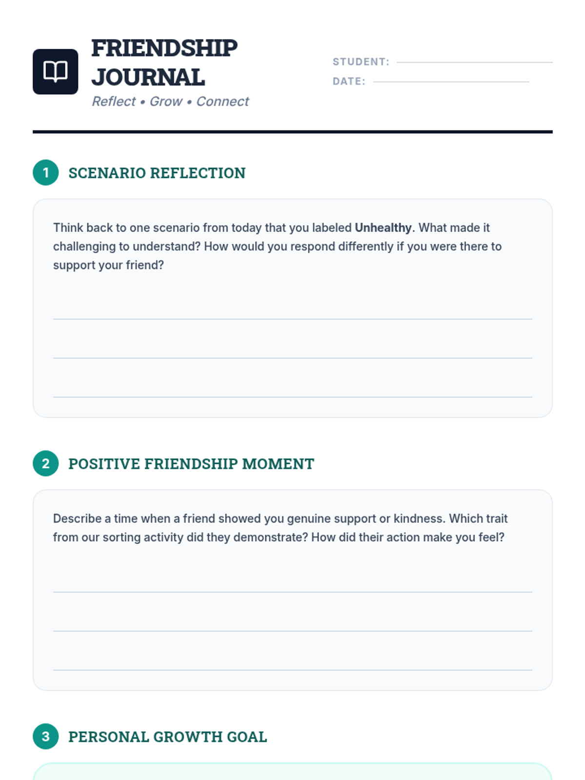 A 30-minute SEL lesson for 7th graders focusing on identifying healthy vs. unhealthy friendship traits and practicing positive relationship skills.