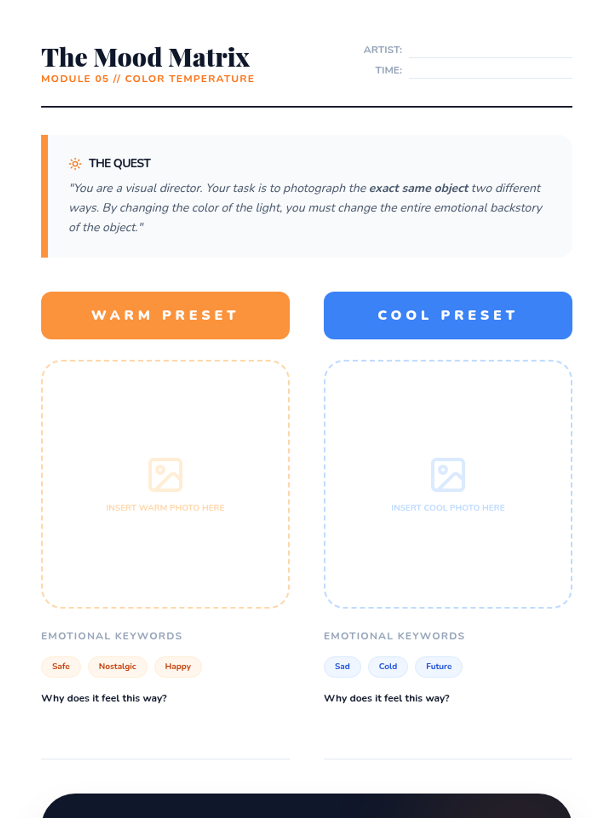 An analysis of color temperature and how the 'golden hour' affects the emotional impact of a photograph.