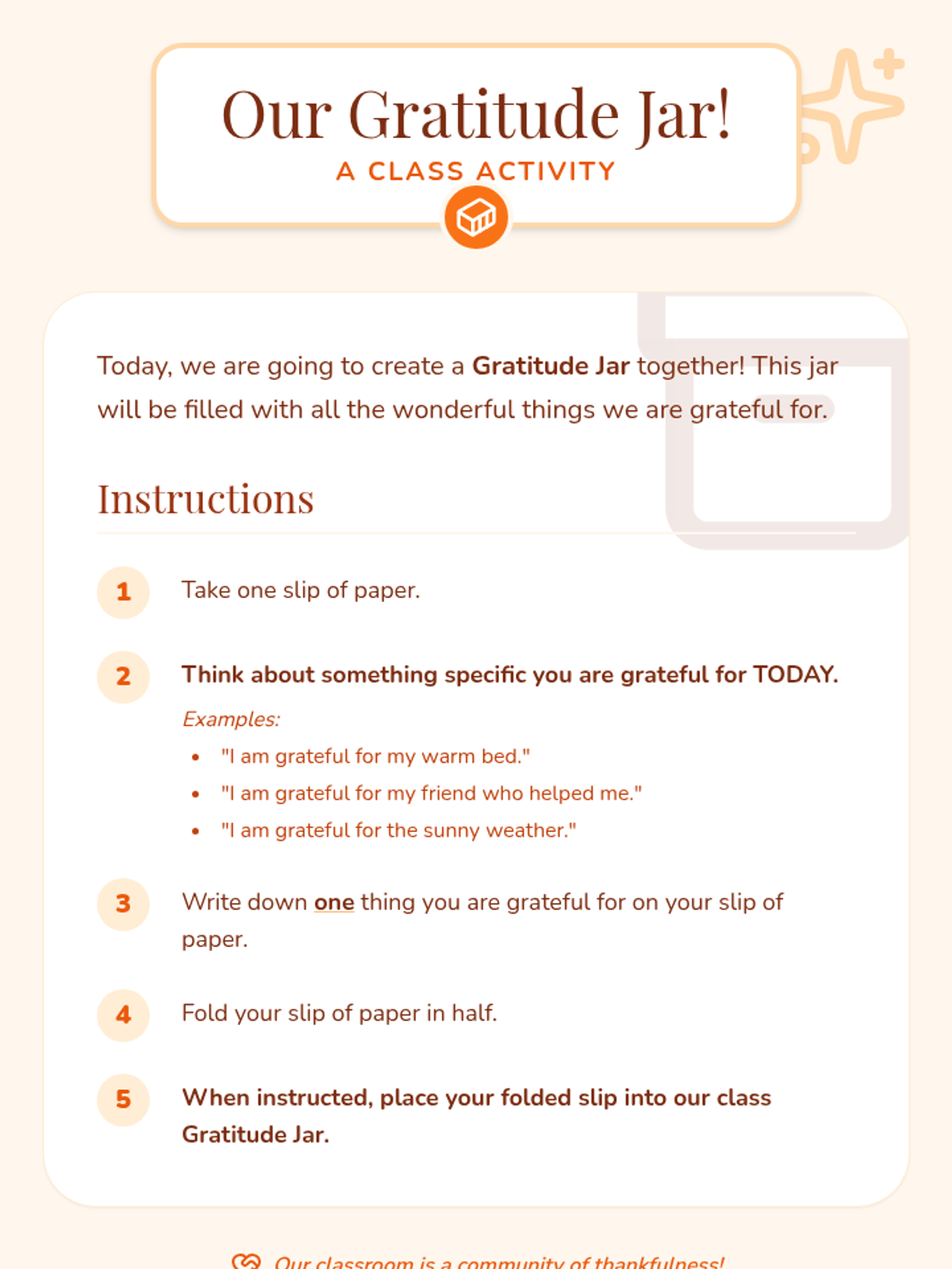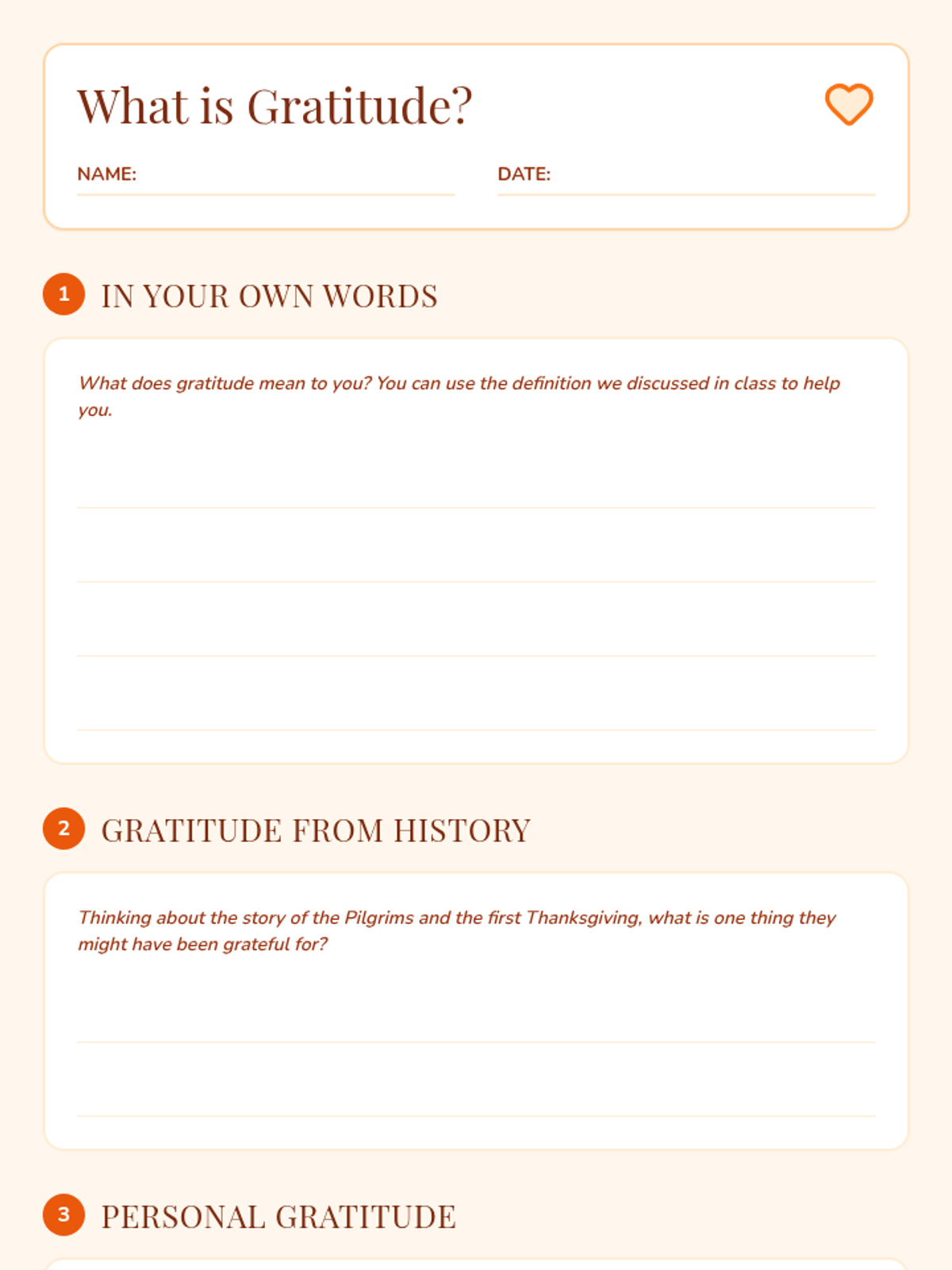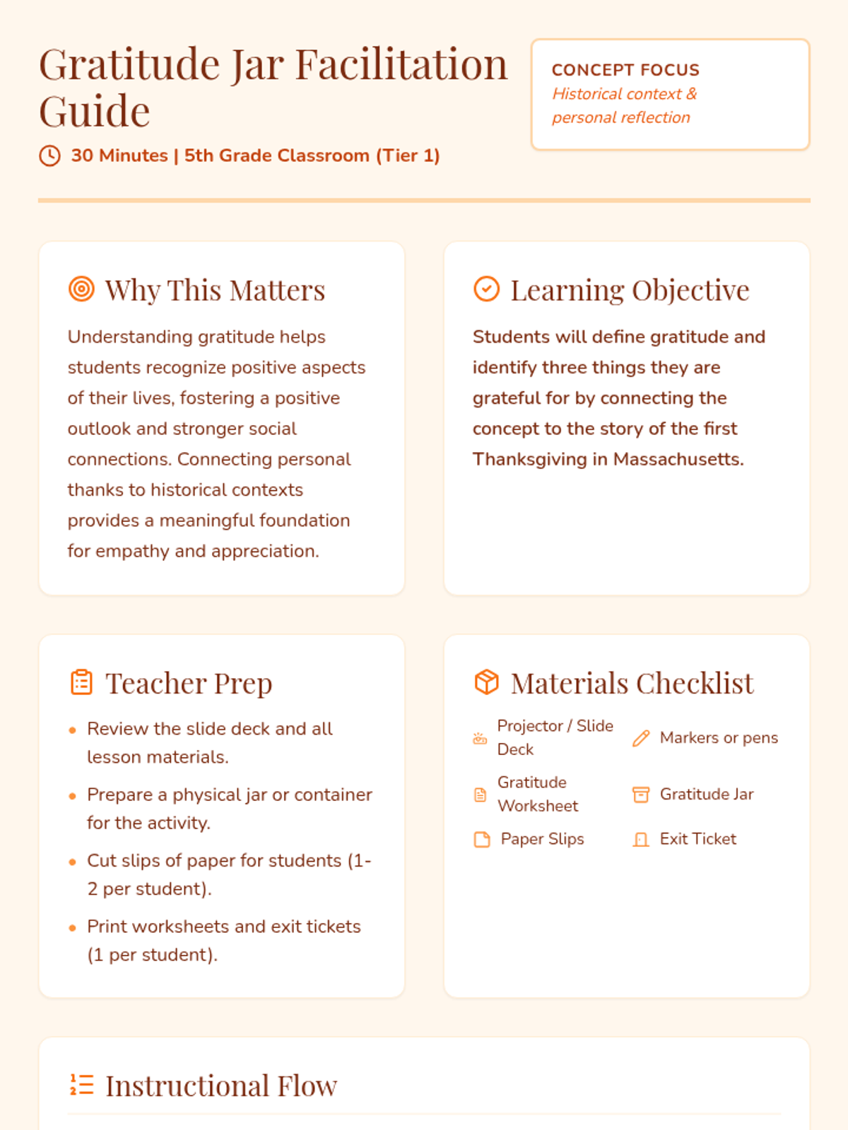 A 30-minute lesson for 5th-grade students exploring gratitude through the historical lens of the first Thanksgiving and personal reflection.