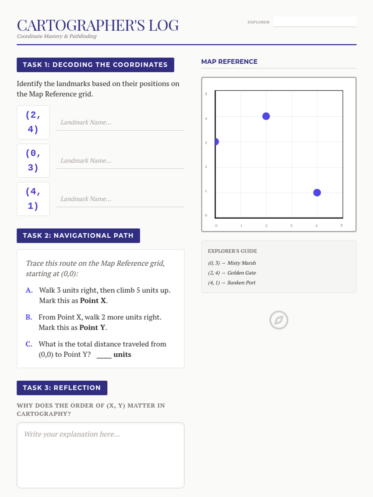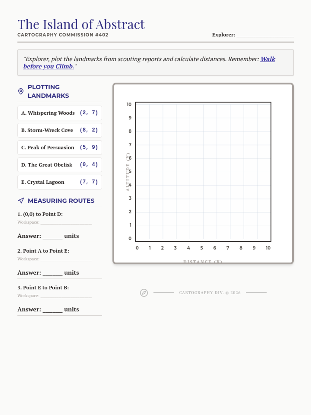Students explore the coordinate plane through the lens of cartography, mapping imaginary landscapes using ordered pairs and calculating distances between landmarks.