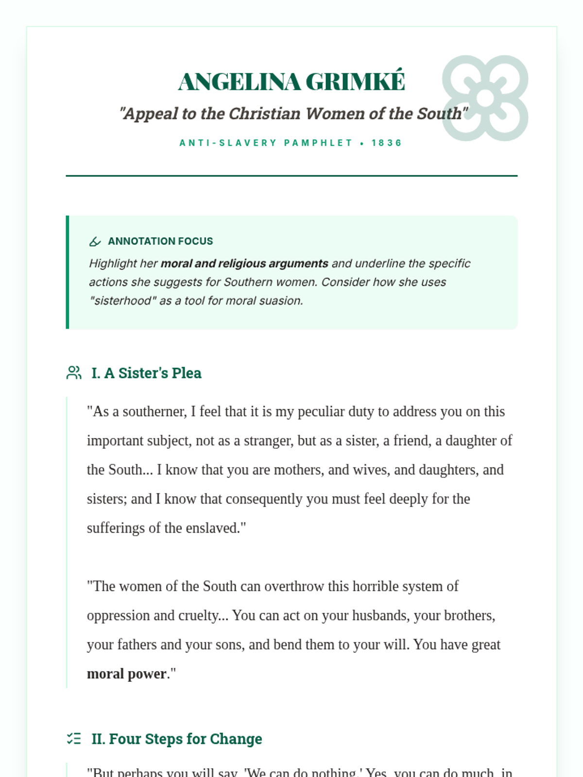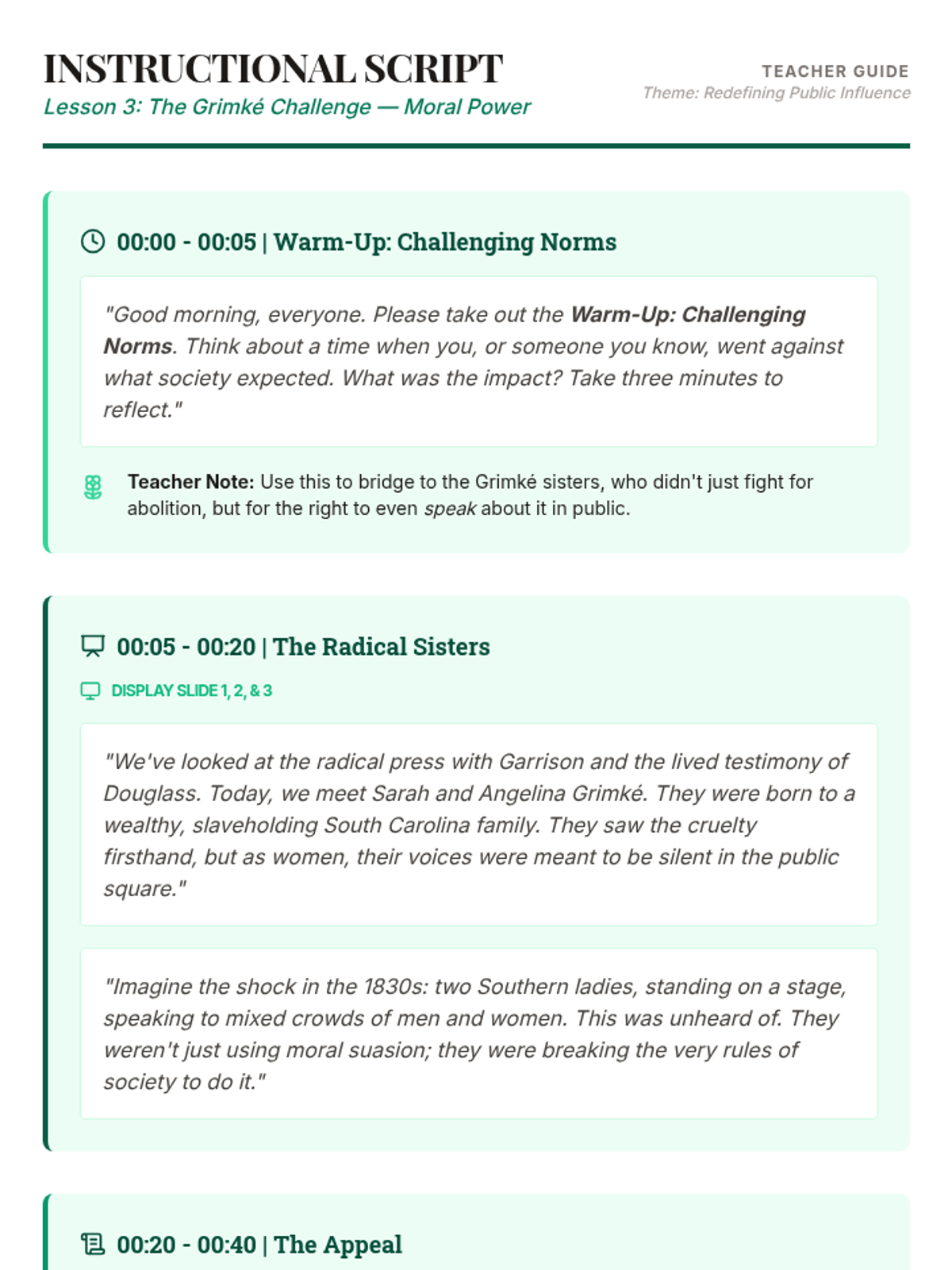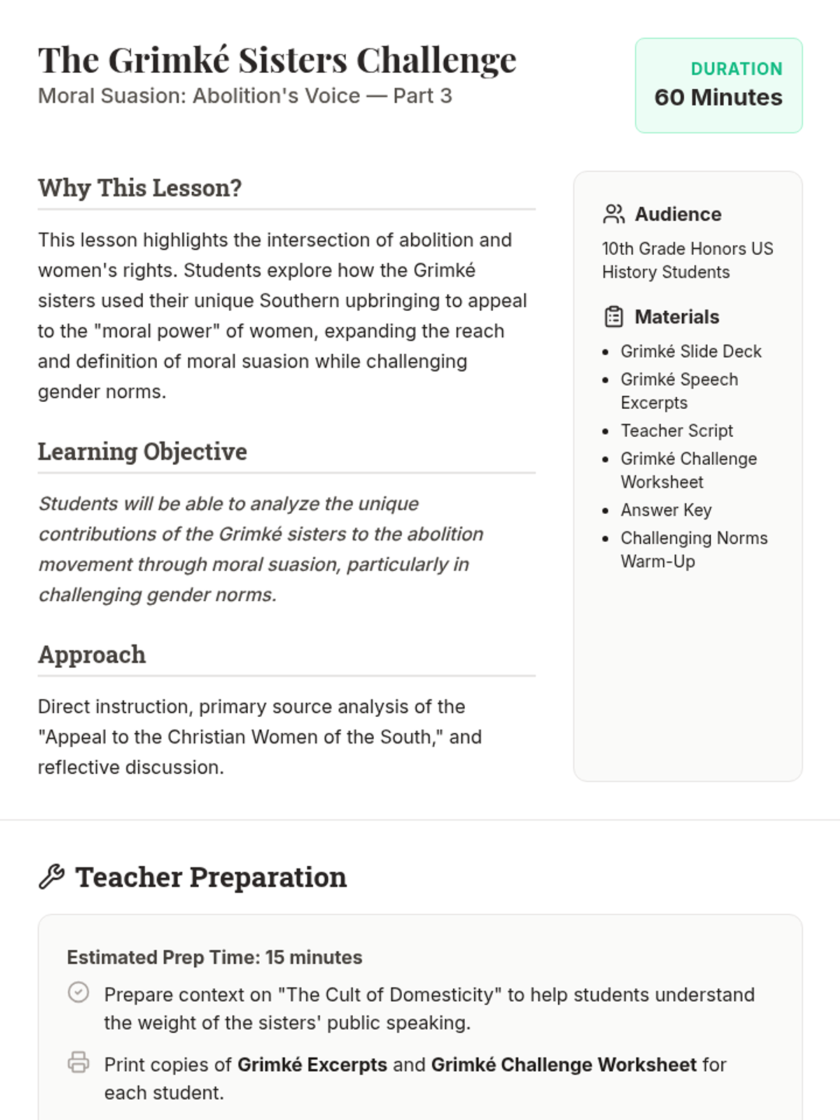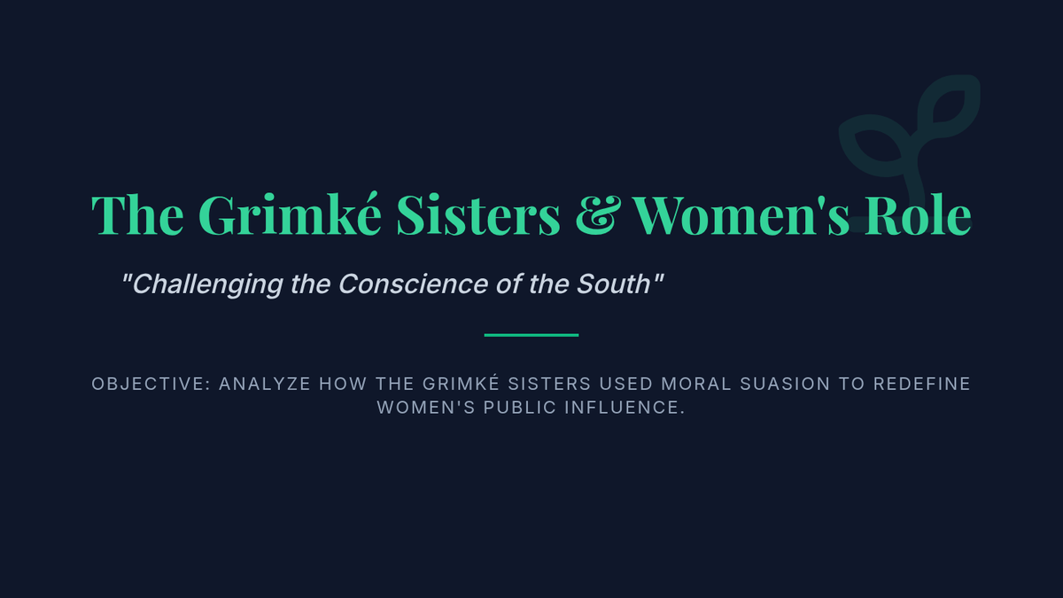 Analyzes the Grimké sisters' unique role in appealing to Southern women and challenging gender norms within reform movements.