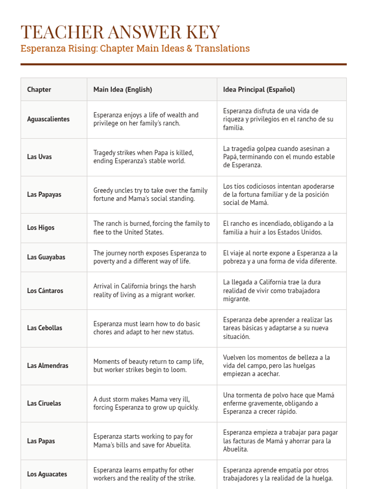 A comprehensive exploration of the plot and themes of Esperanza Rising, focusing on chapter-by-chapter summaries with bilingual support to deepen comprehension of Esperanza's journey from wealth to hard-won resilience.