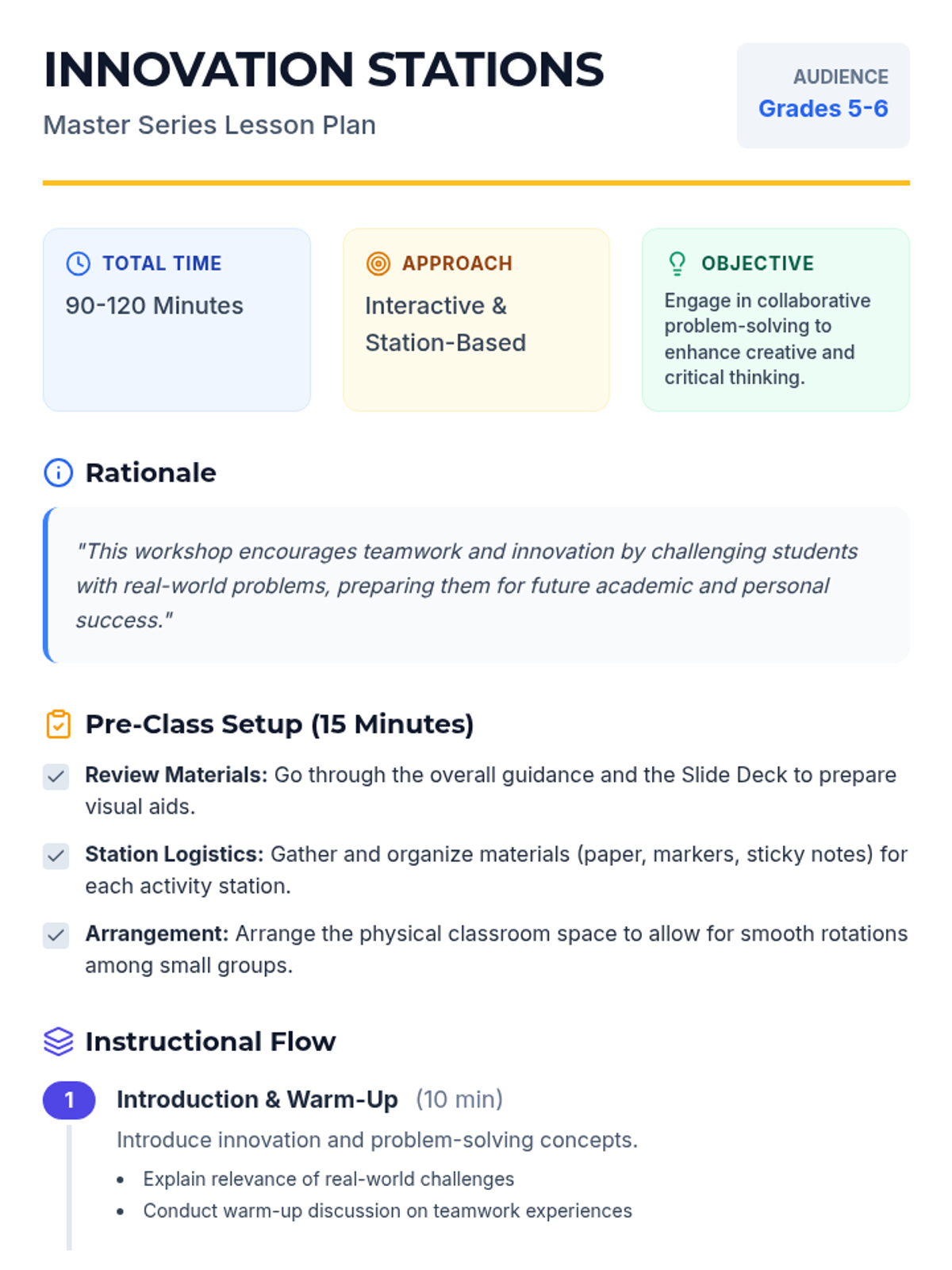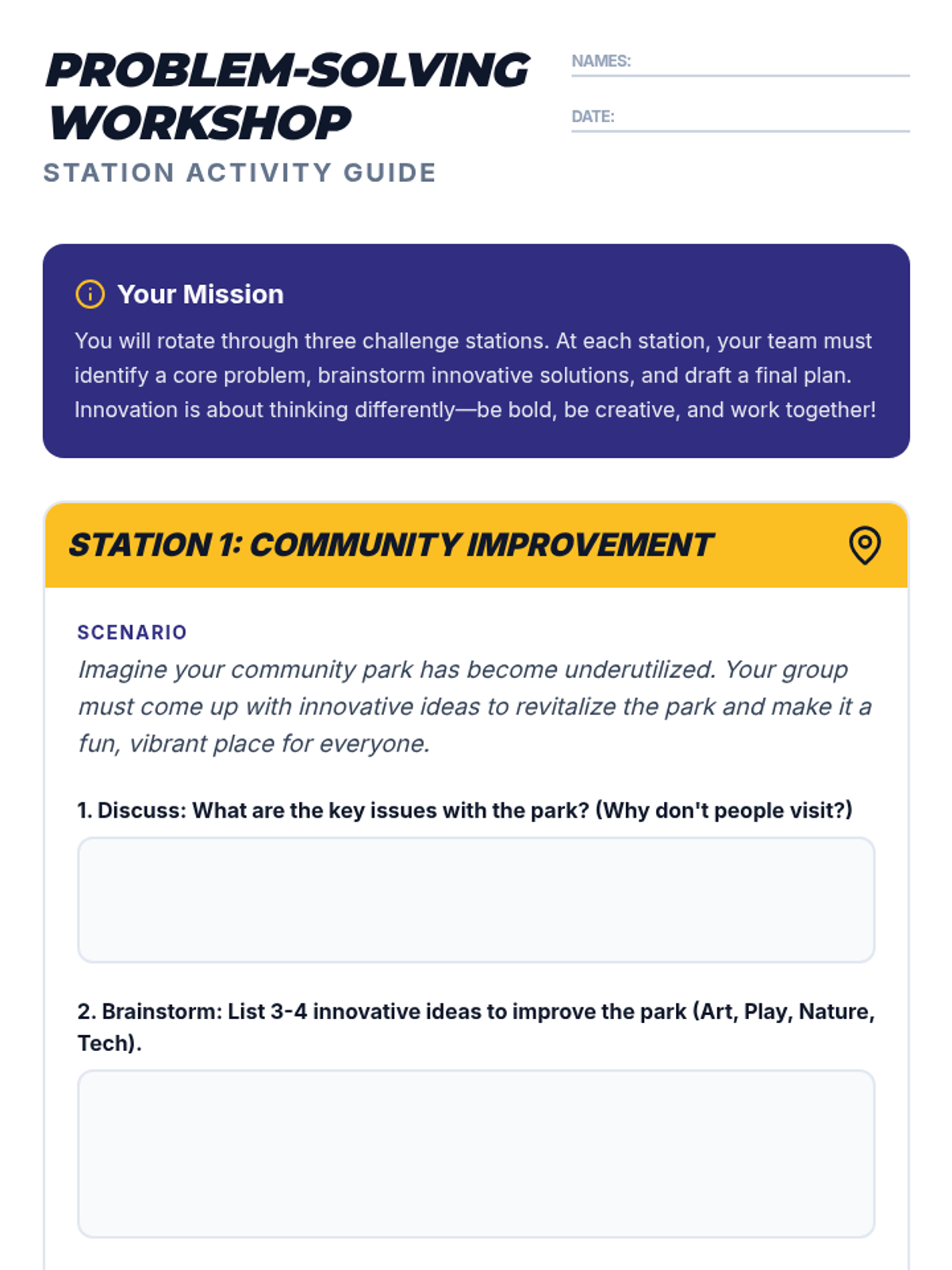 Introduces students to the concepts of innovation and collaborative problem-solving through a community-based park revitalization challenge.
