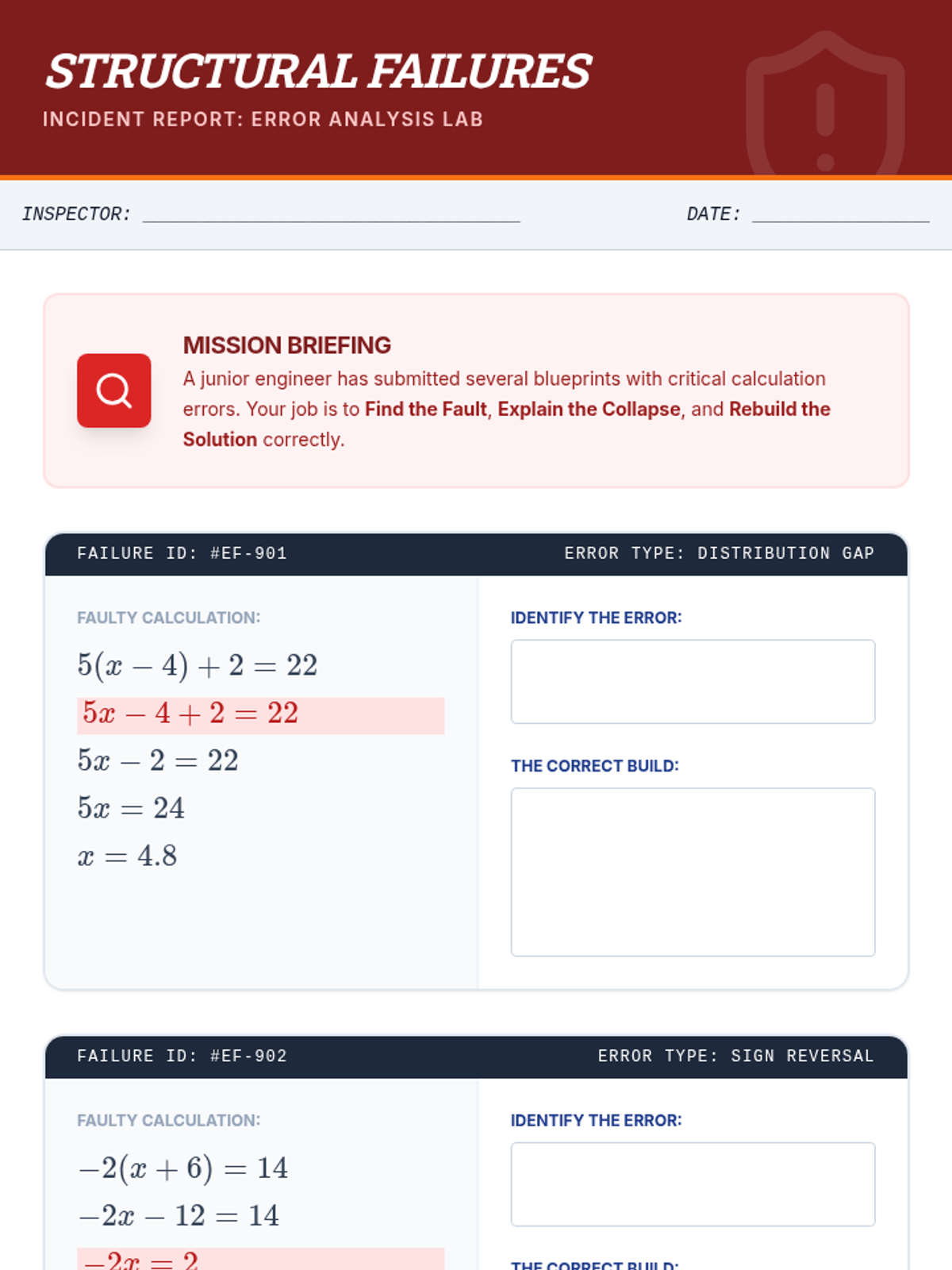 Focuses on multi-step equations involving the distributive property and combining like terms, including error analysis activities to solidify conceptual understanding.