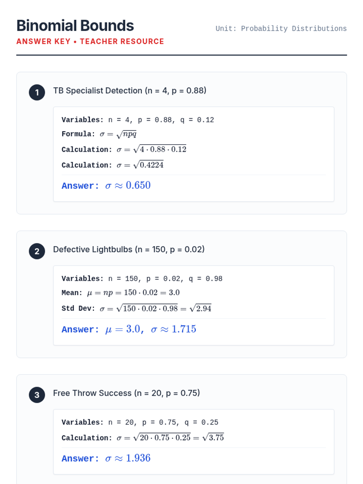 A lesson focused on calculating the mean, variance, and standard deviation of binomial probability distributions in real-world contexts.