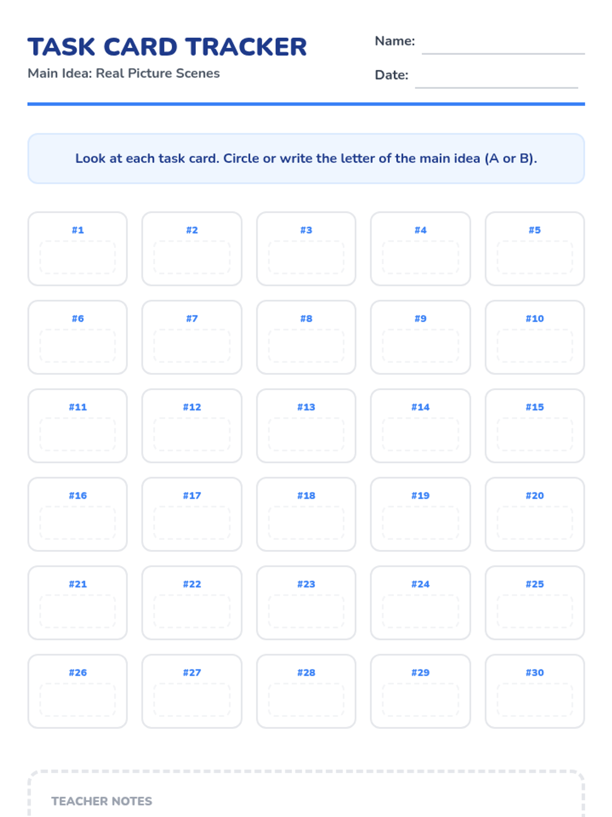 A comprehensive set of task cards and supporting materials to help primary students master the concept of 'Main Idea' through visual analysis of real-life photographs. Students will practice identifying the central theme or topic of various scenes.