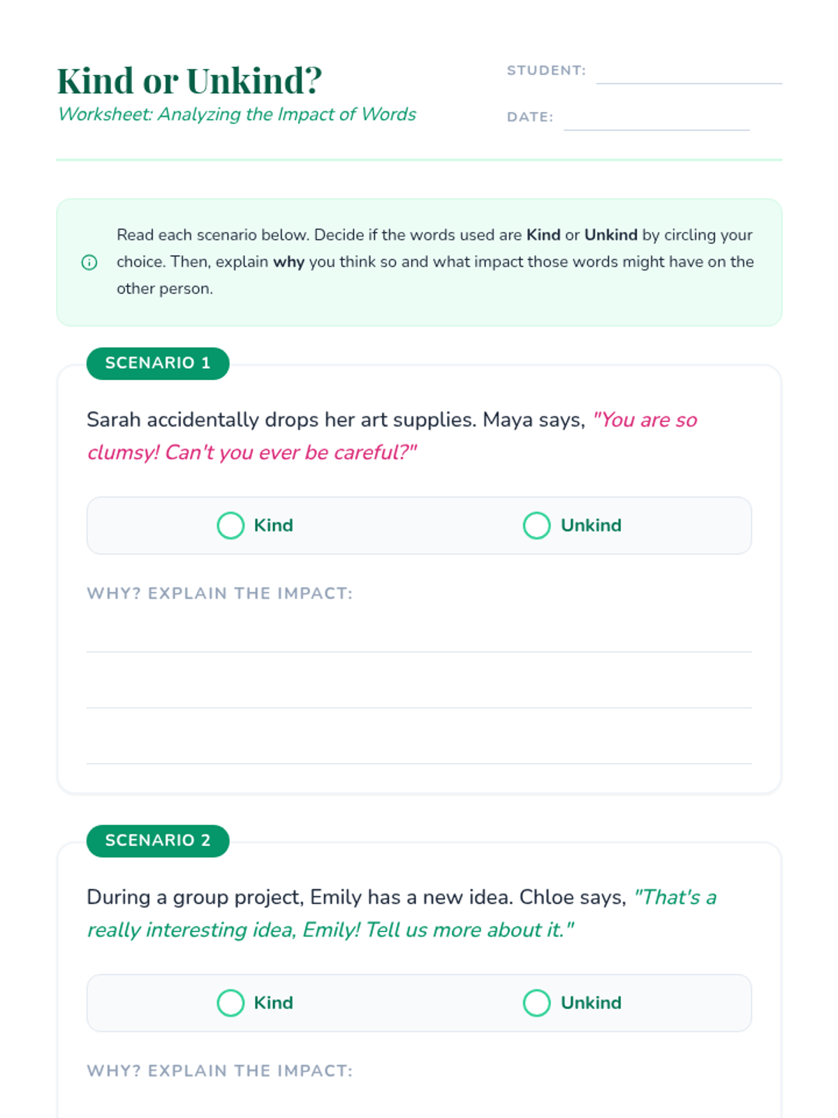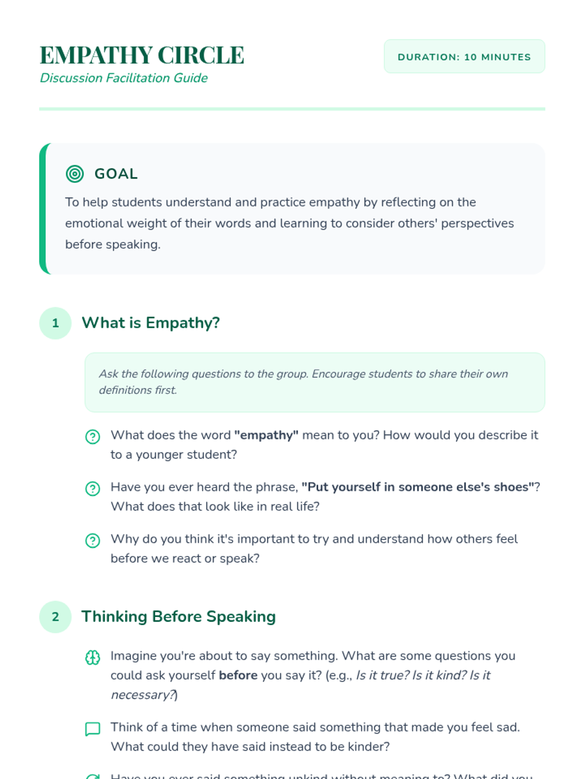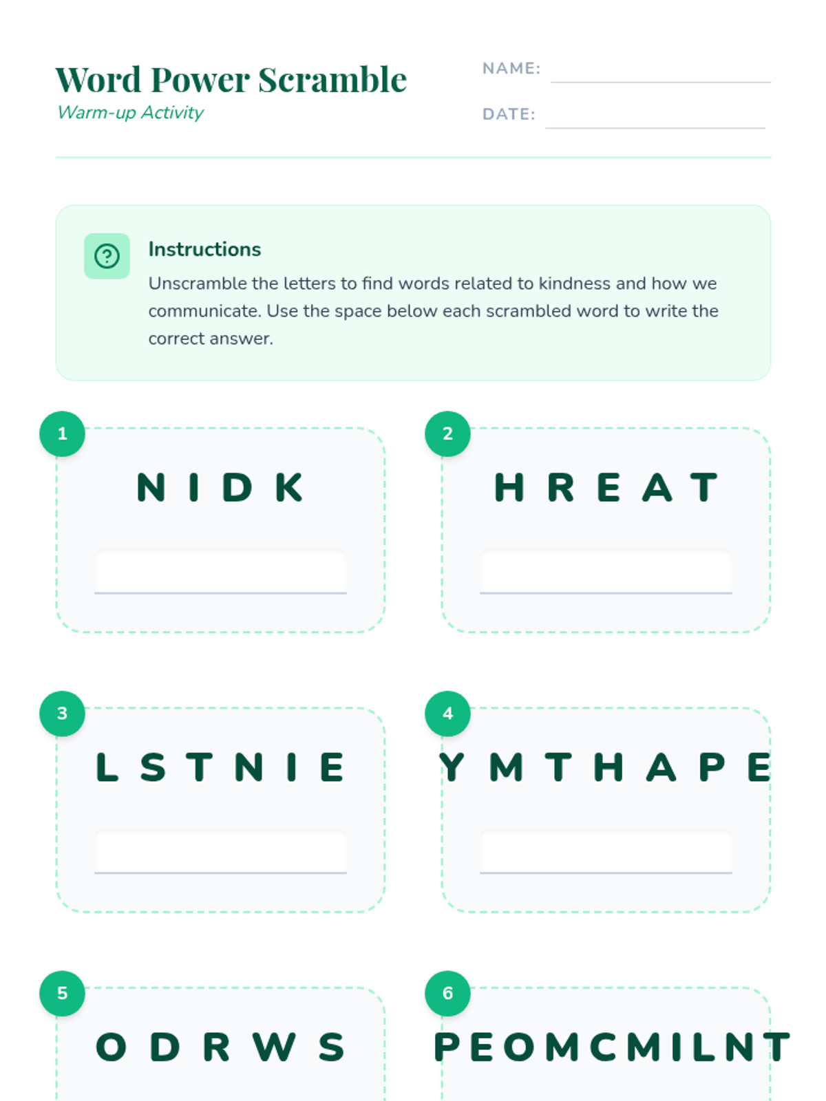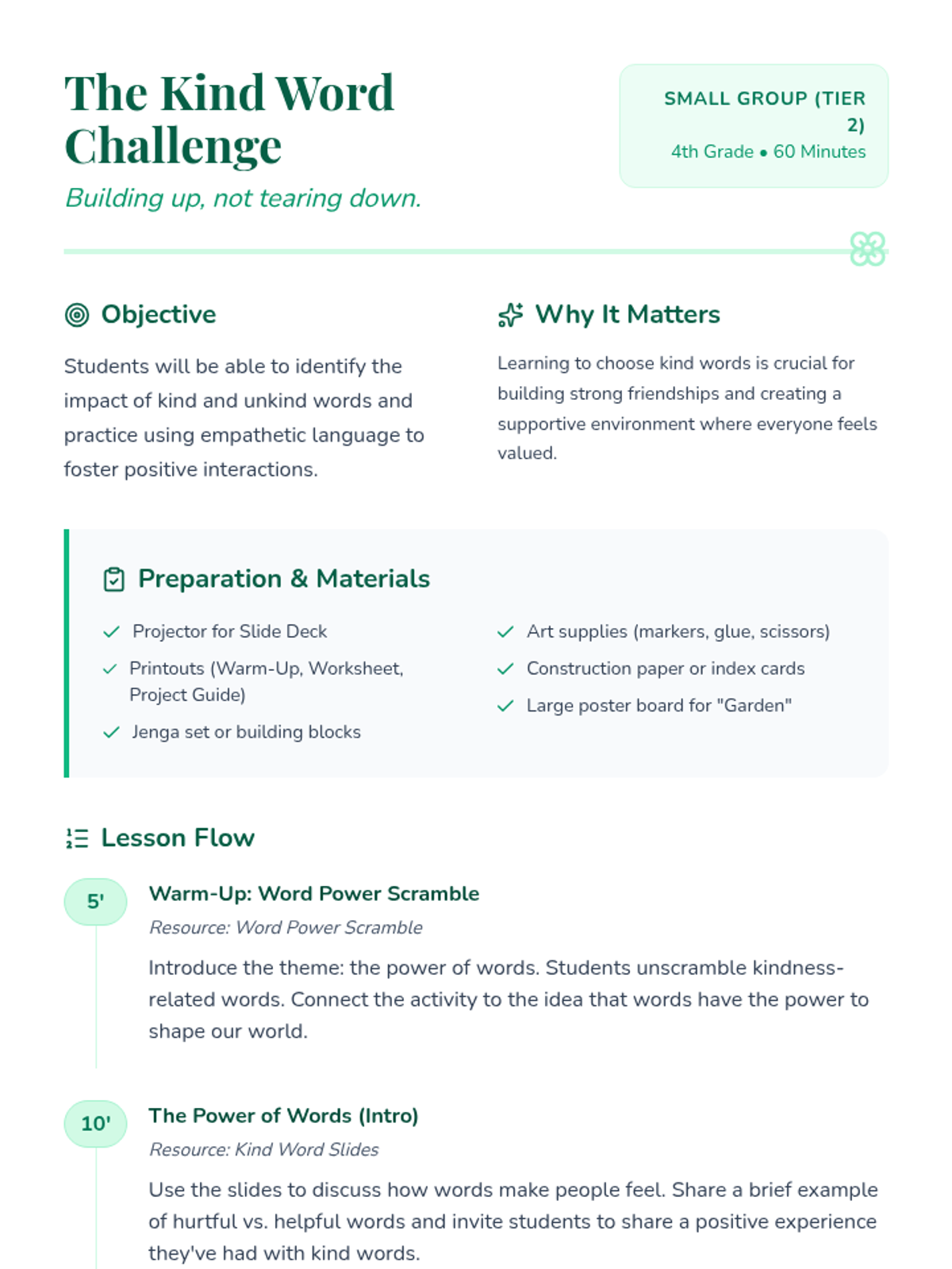 A 60-minute session for 4th-grade girls focused on the impact of words, practicing empathy, and building positive relationships through kind communication.