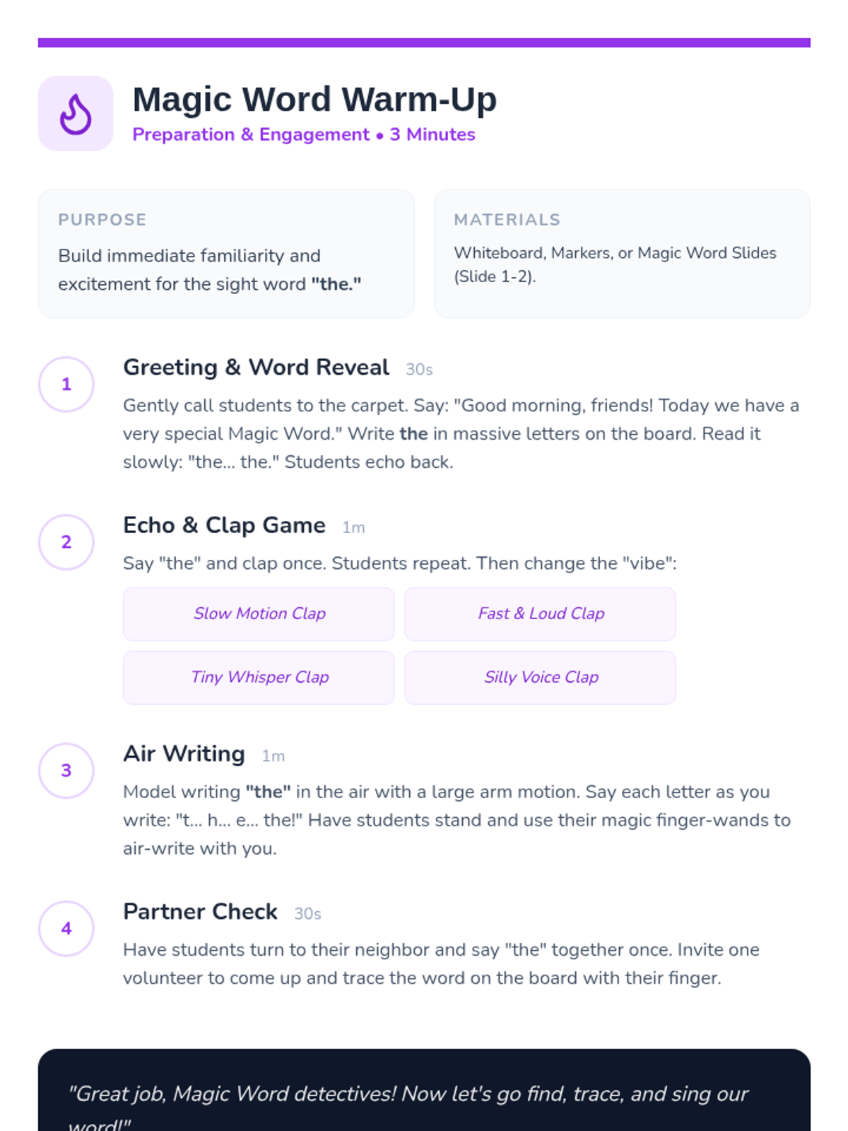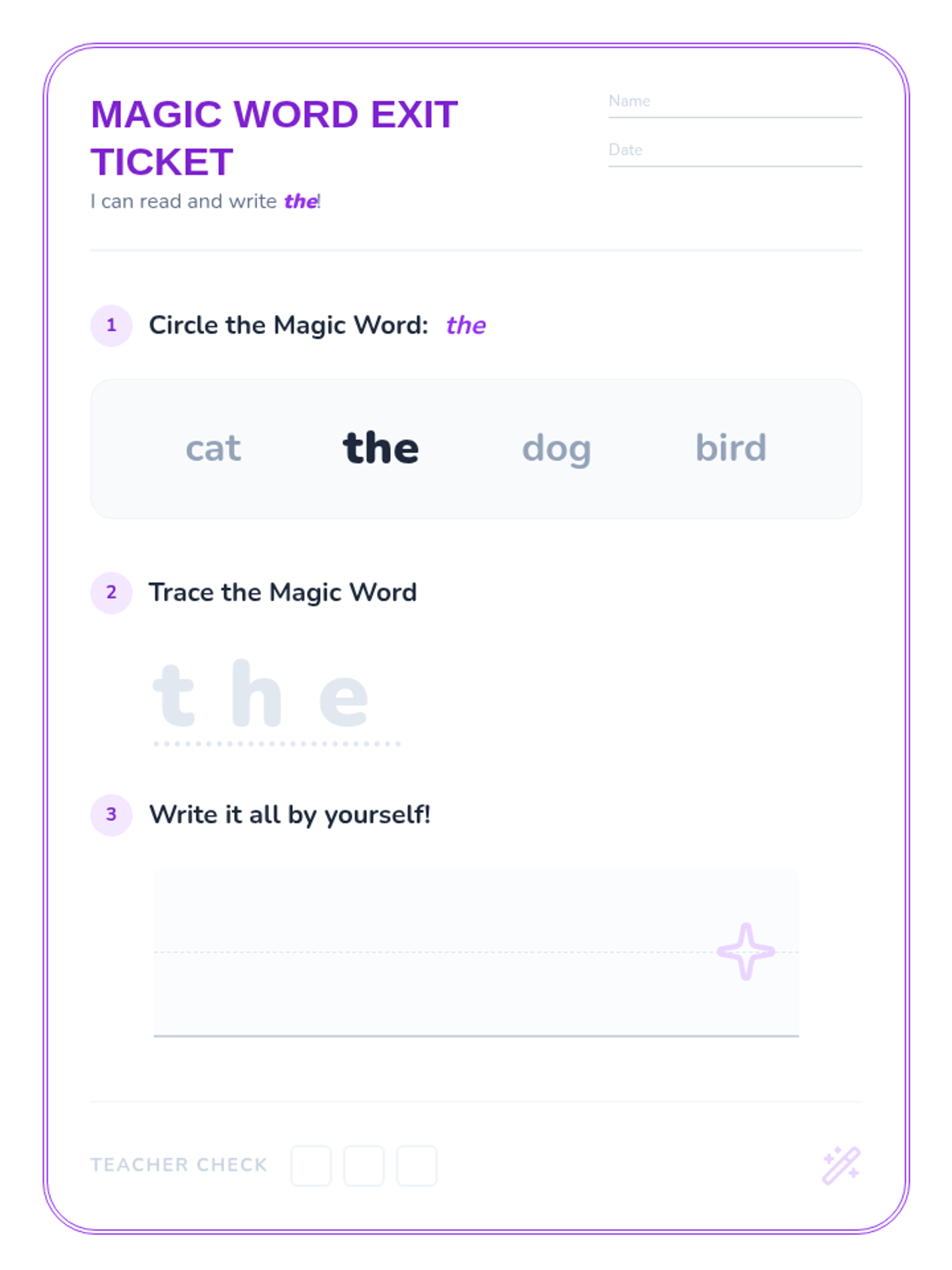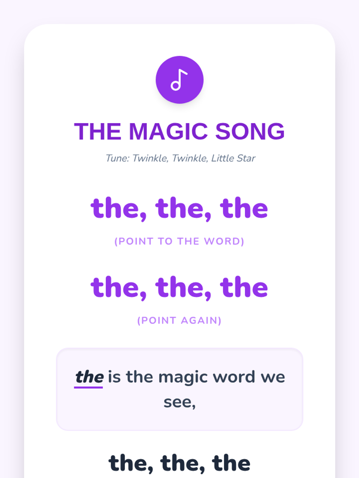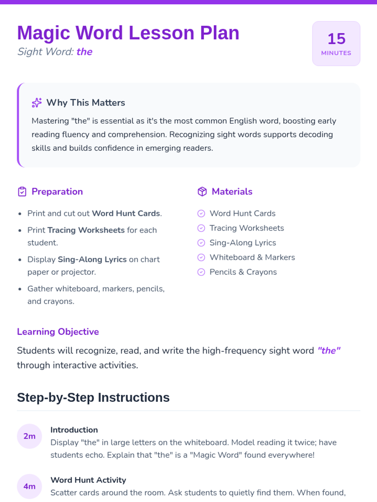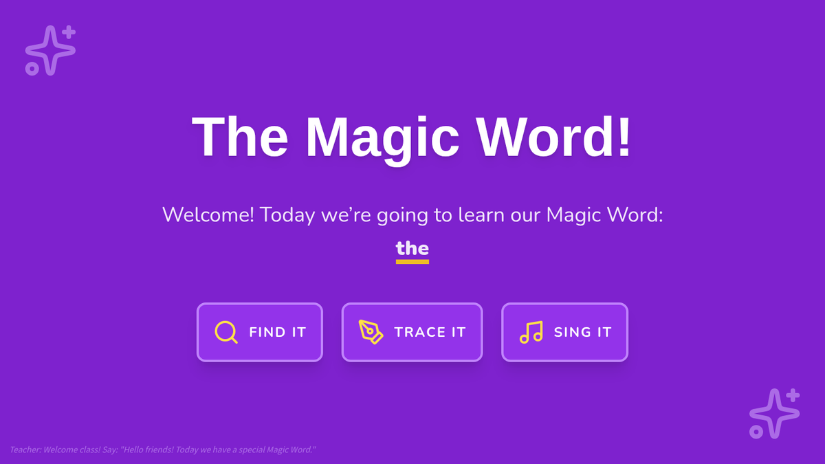 A whimsical kindergarten lesson introducing the sight word 'the' through magic-themed word hunts, tracing, and a sing-along. Students build foundational literacy skills by recognizing, reading, and writing the most common word in English.