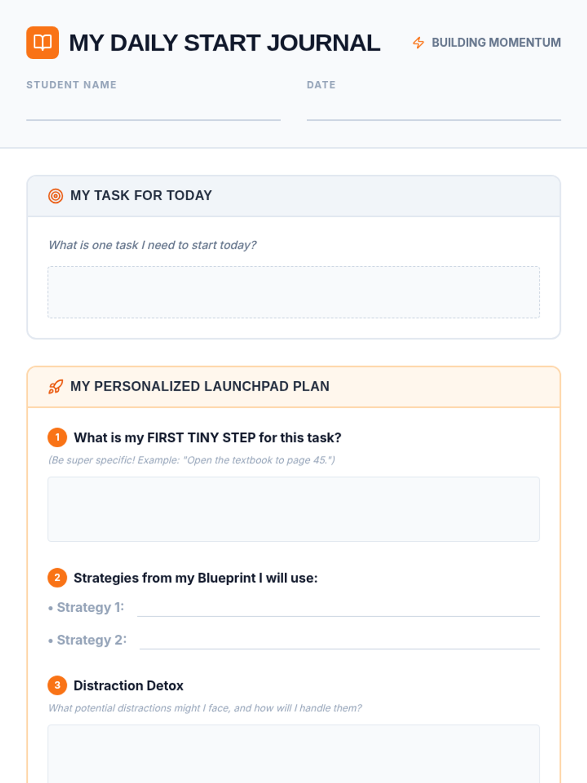 A behavioral and functional lesson designed for a 2nd-grade student with Autism and ADHD to master the 'Launch Sequence' of transitioning from preferred activities to academic tasks. It focuses on visual schedules, clear 'First-Then' contingencies, and a specific 3-step 'Ignition' process to overcome task initiation hurdles.