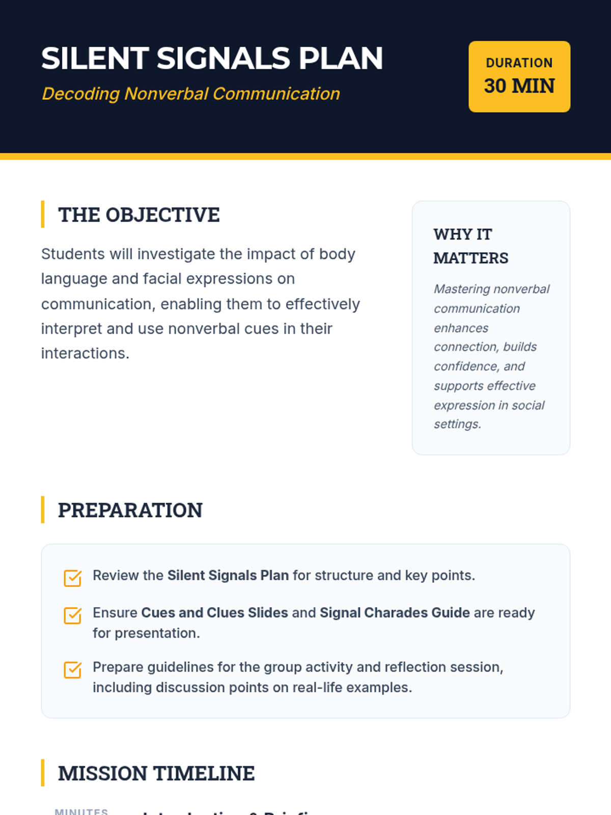 An 8th-grade Tier 2 group lesson focused on identifying and interpreting body language, facial expressions, and other nonverbal cues to improve social communication.