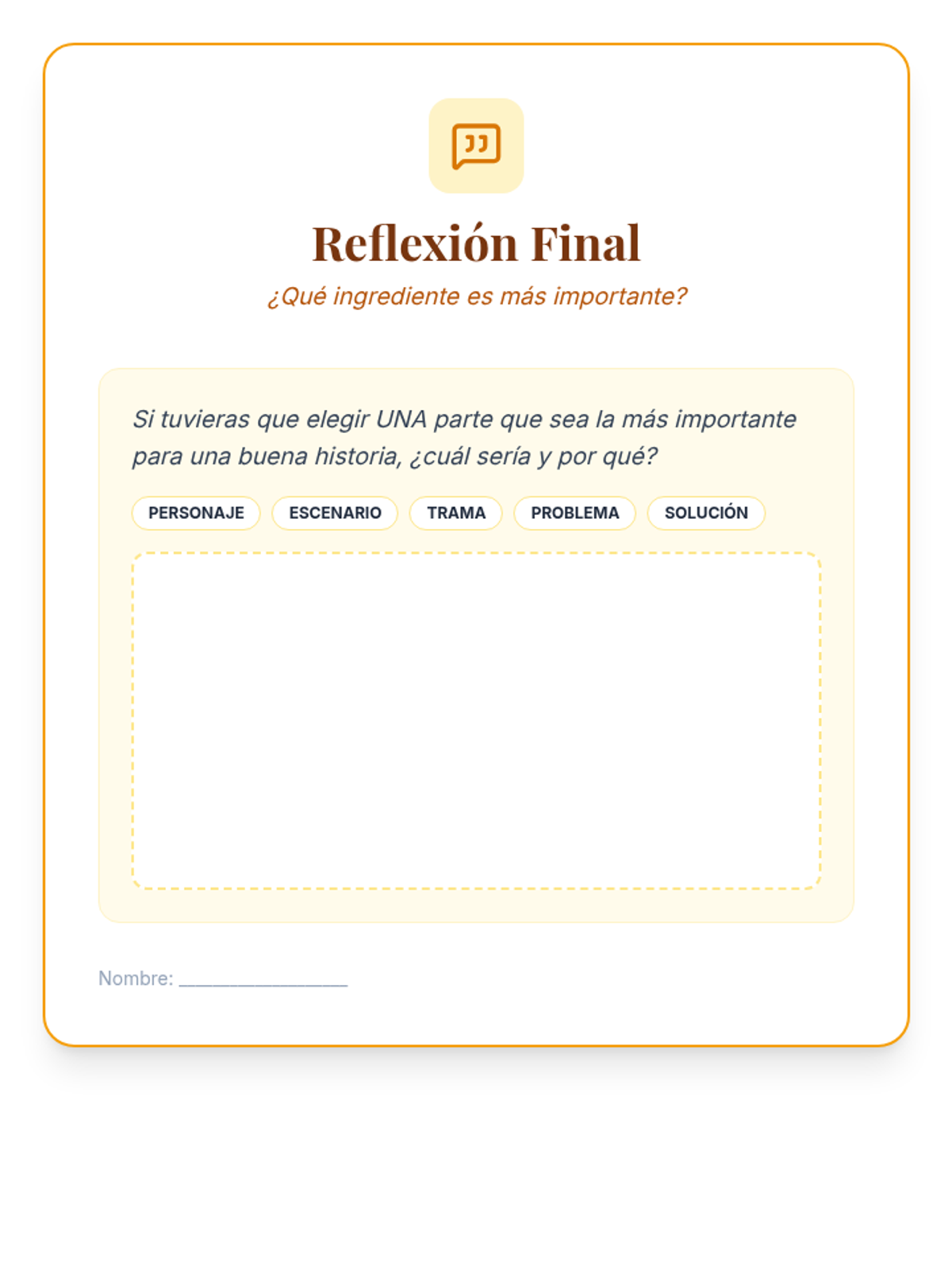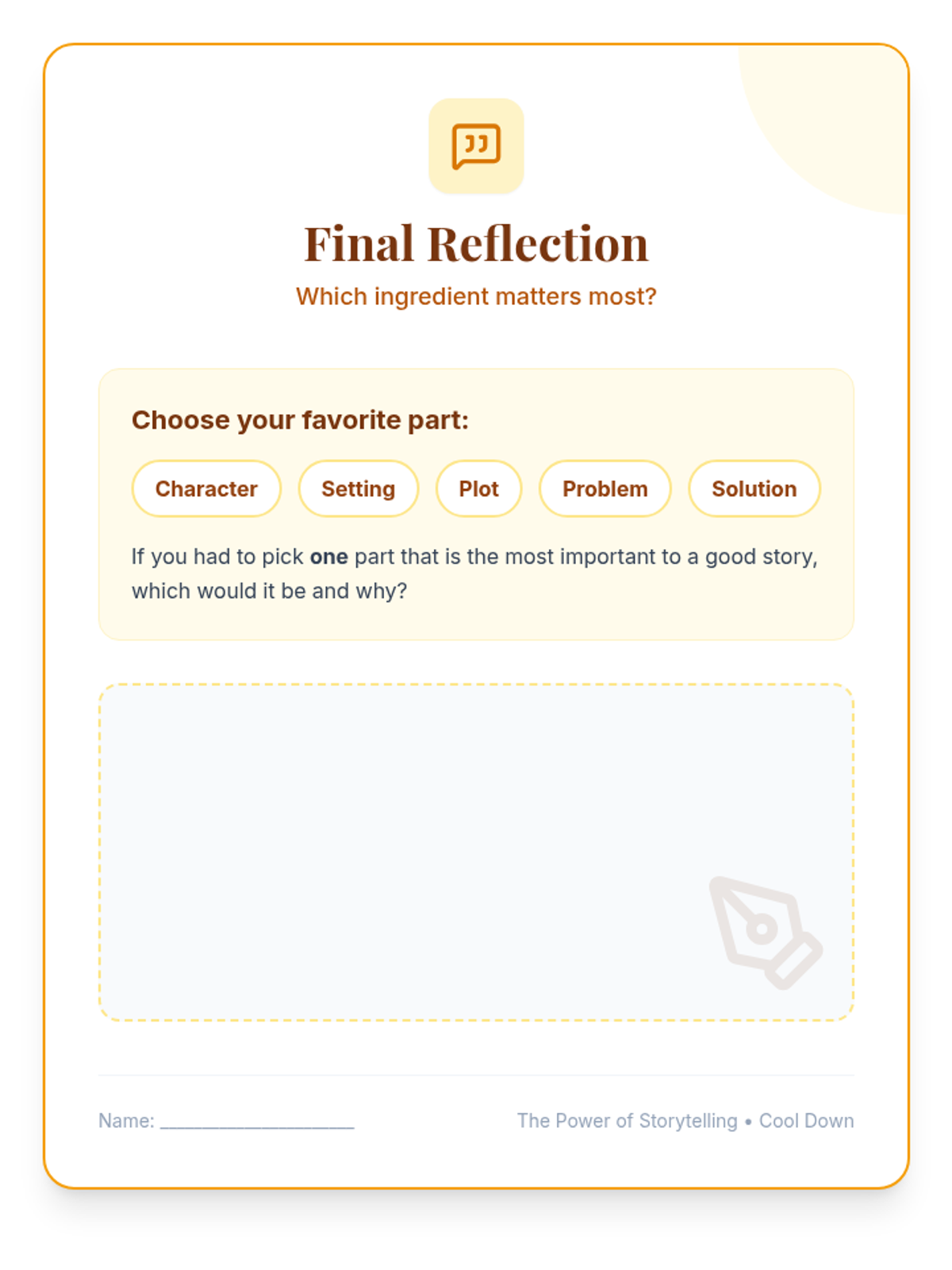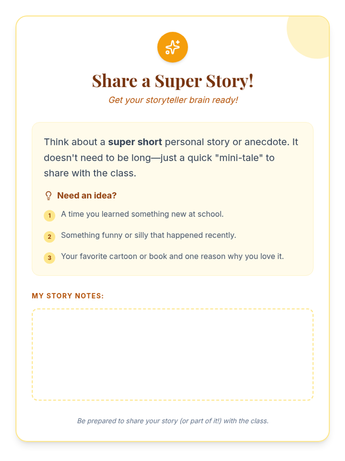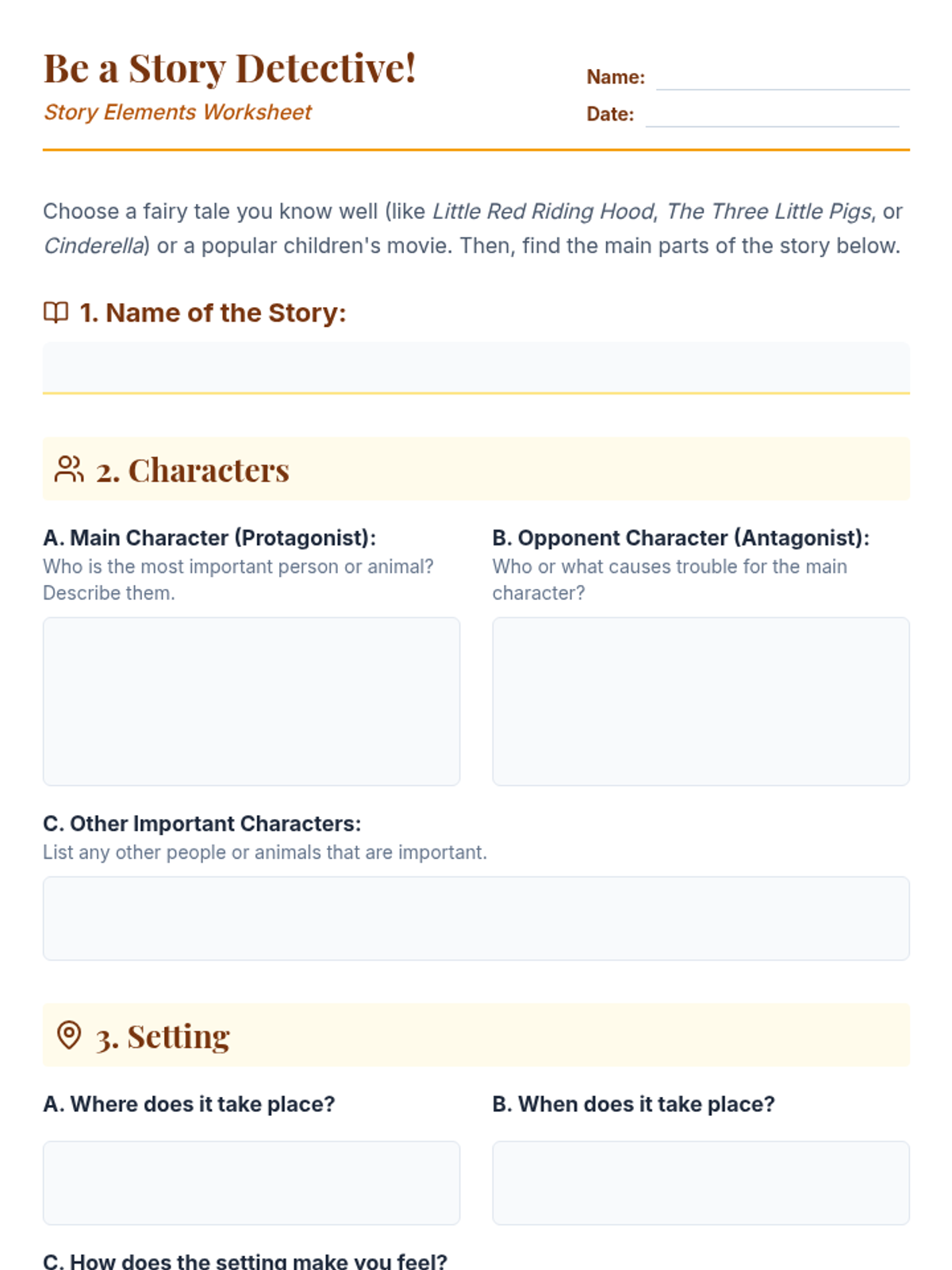 Students explore the universal impact of storytelling, identifying key narrative elements (character, setting, plot, problem, solution) and practicing the creation of their own stories. available in English and Spanish.