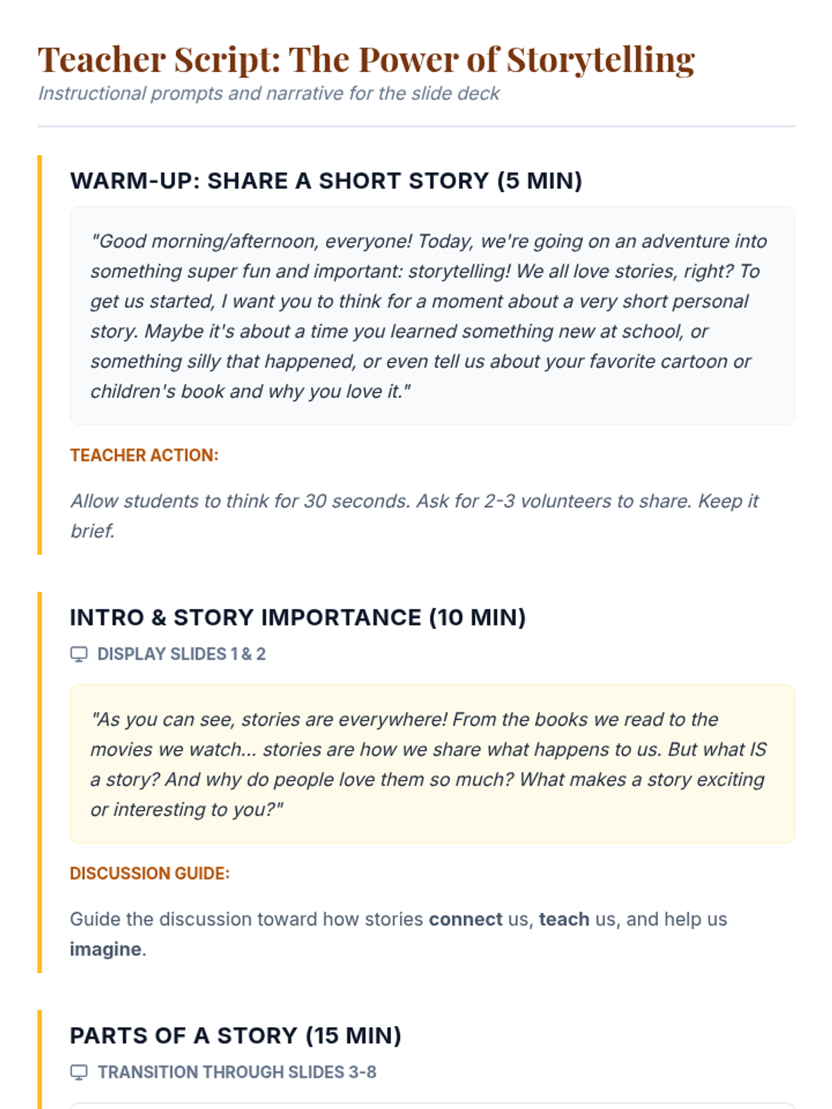 A lesson focused on business storytelling and pitch deck structure. Students learn to frame their marketing campaign as a problem-solving narrative using the 10-Slide Rule and 'invisible' design principles.